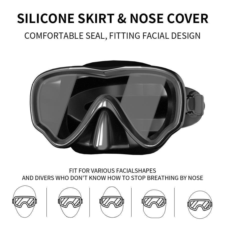 Equipo de buceo Máscara de buceo de vidrio templado HD panorámica de campo de visión amplio transfronteriza protección para la nariz máscara de snorkel integrada