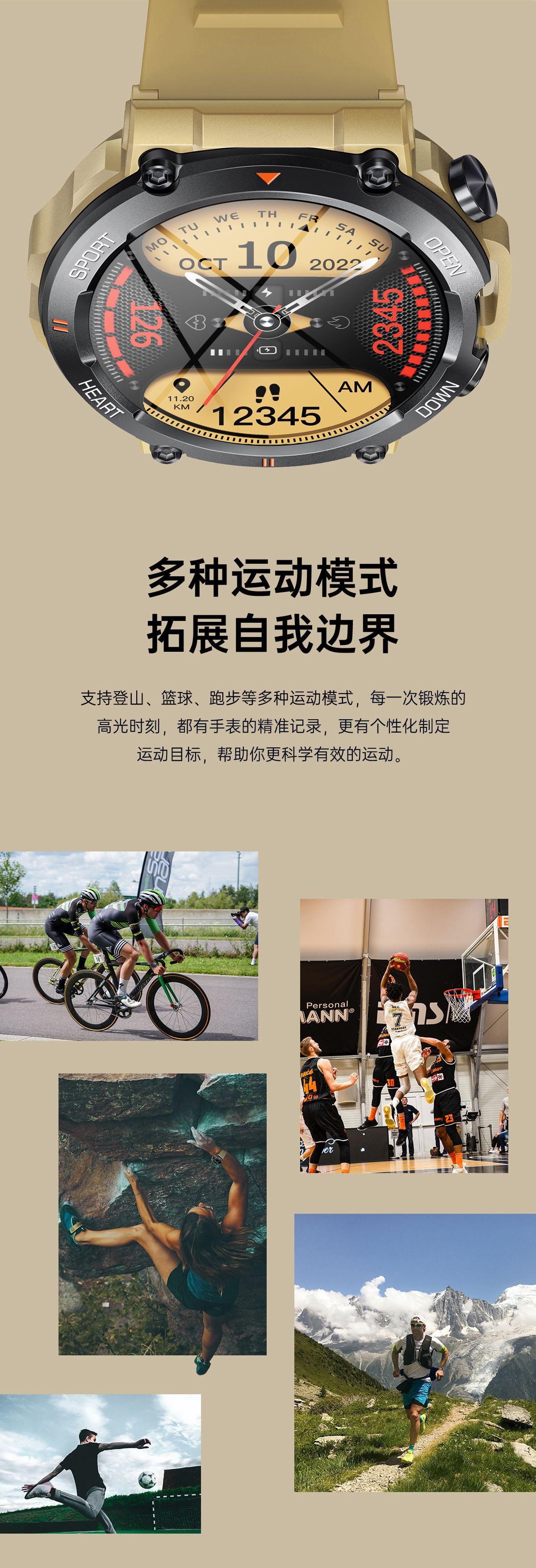 Nuevo reloj inteligente transfronterizo K56PRO con llamadas Bluetooth, música, clima, 1,39 pulgadas, presión arterial, oxígeno en sangre, tres pruebas de escalada en montaña