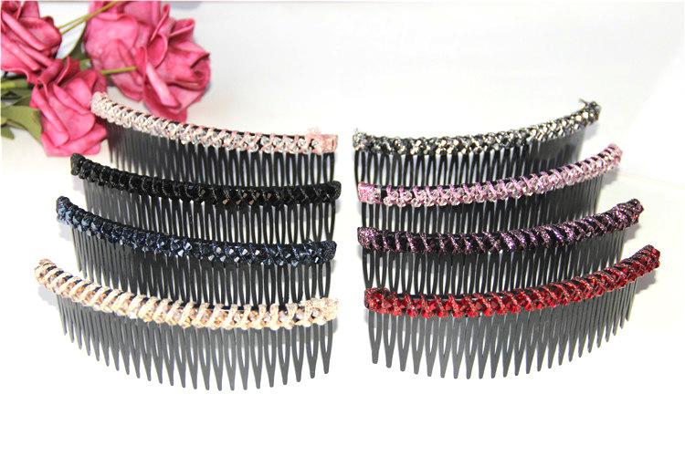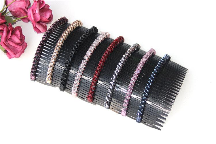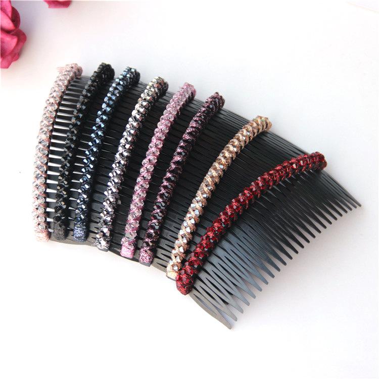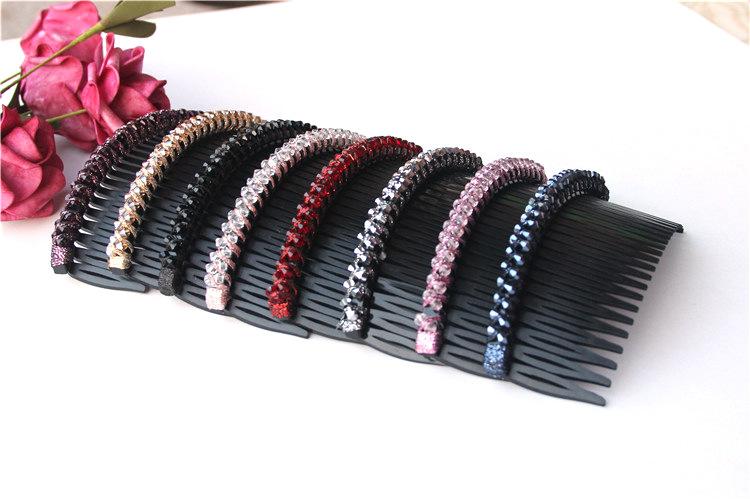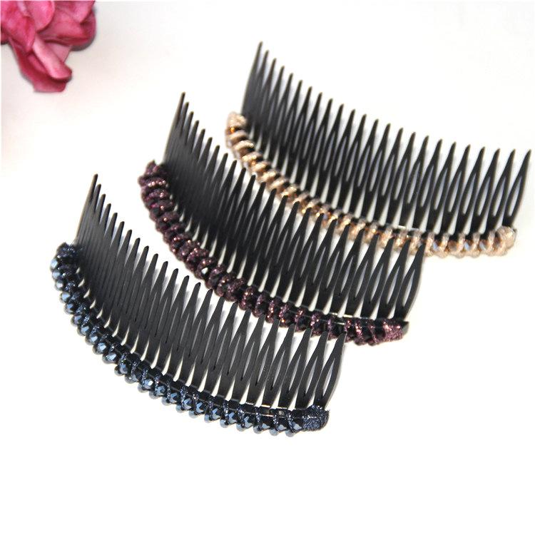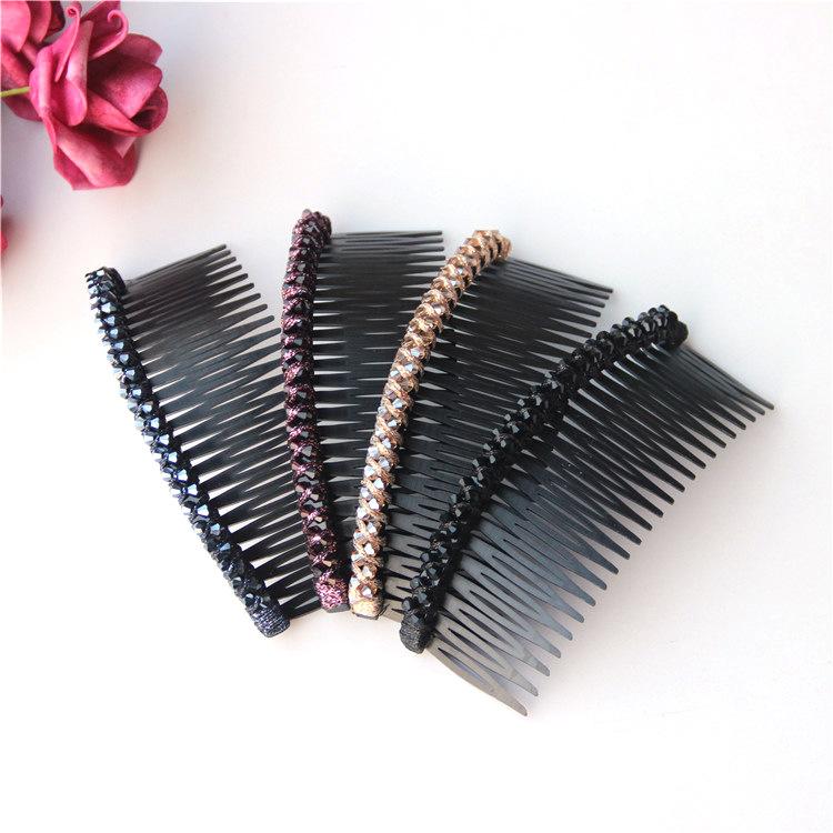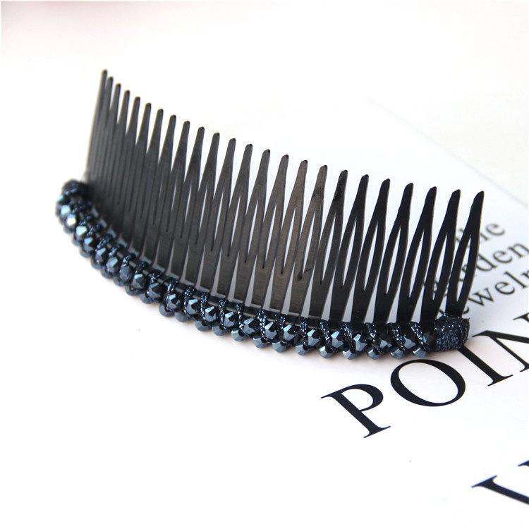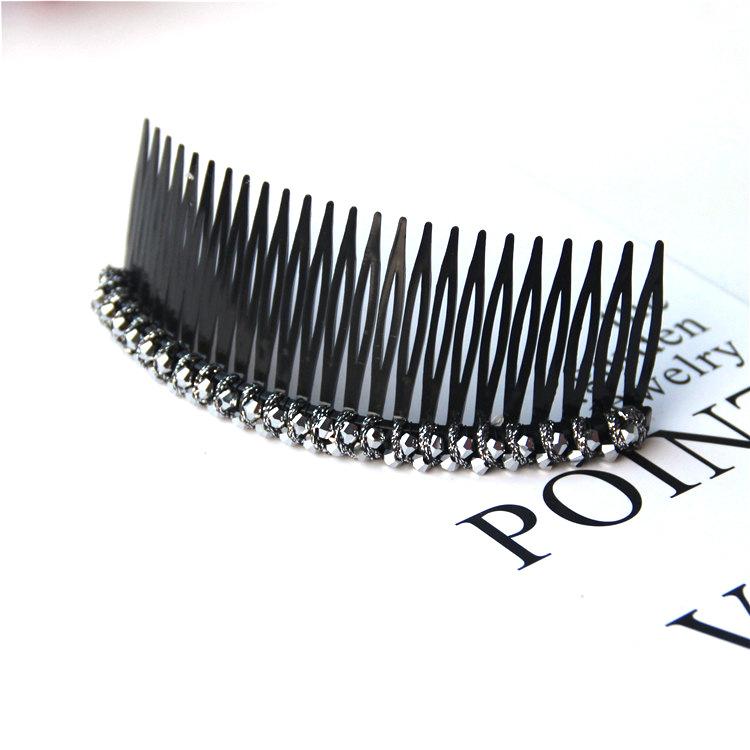 Compra Peine de cristal de doble hilera de 24 dientes estilo coreano, grande, de plástico negro, con forma de media luna y dientes, para flequillo, horquilla, accesorio para el cabello recogido al por mayor en Joom.pro