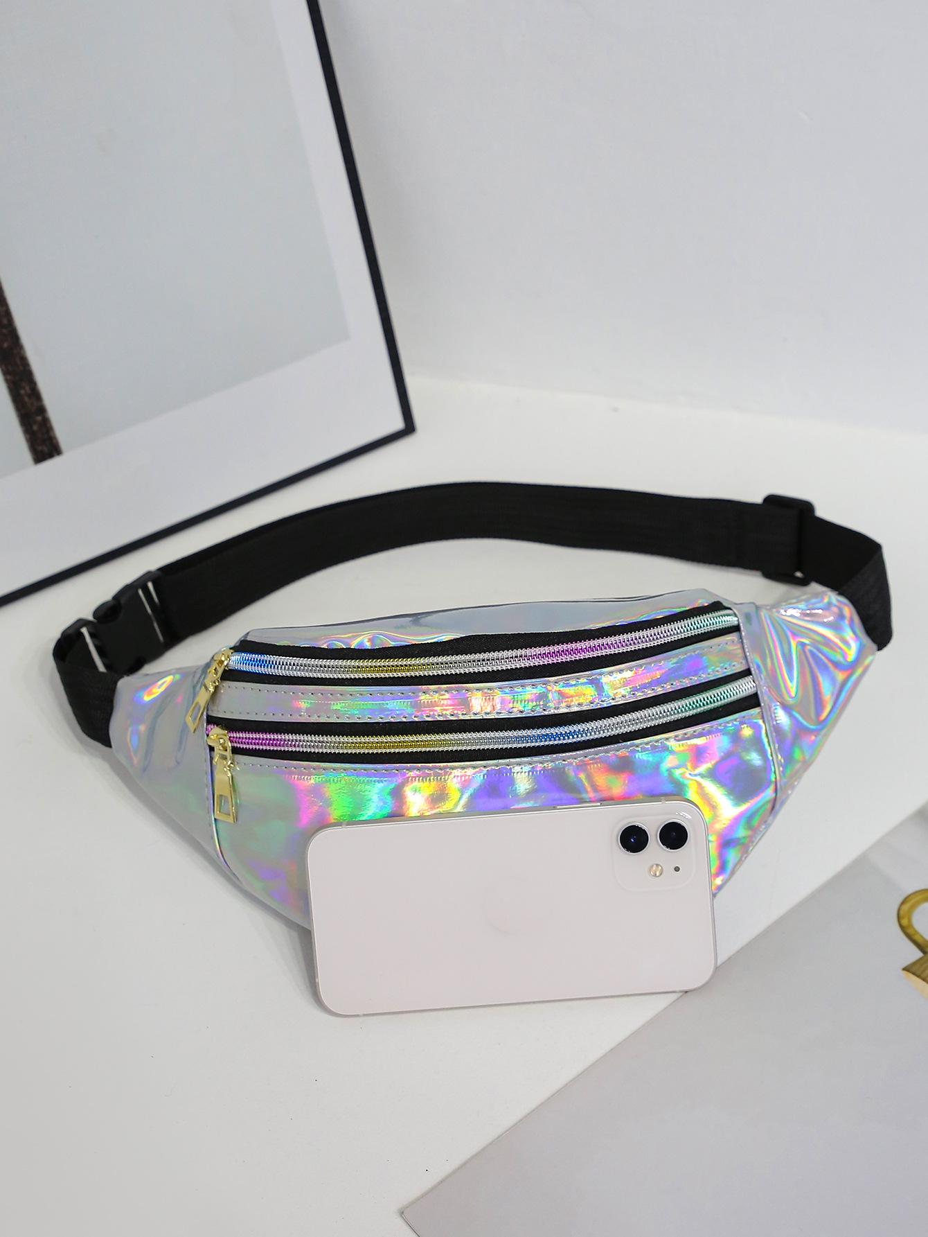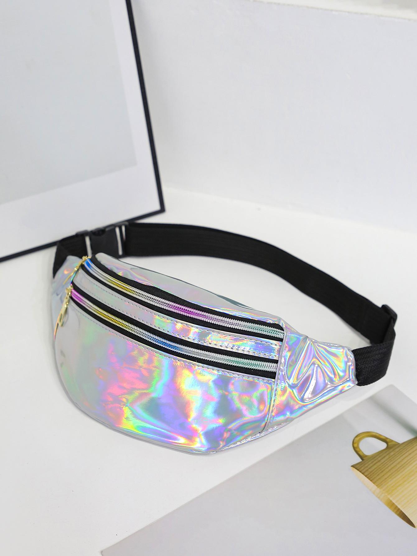Nueva riñonera láser para correr, bandolera para mujer, bolso de pecho reflectante, bolso de playa para exteriores, bolso de cajero personalizado de moda para hombre y mujer.