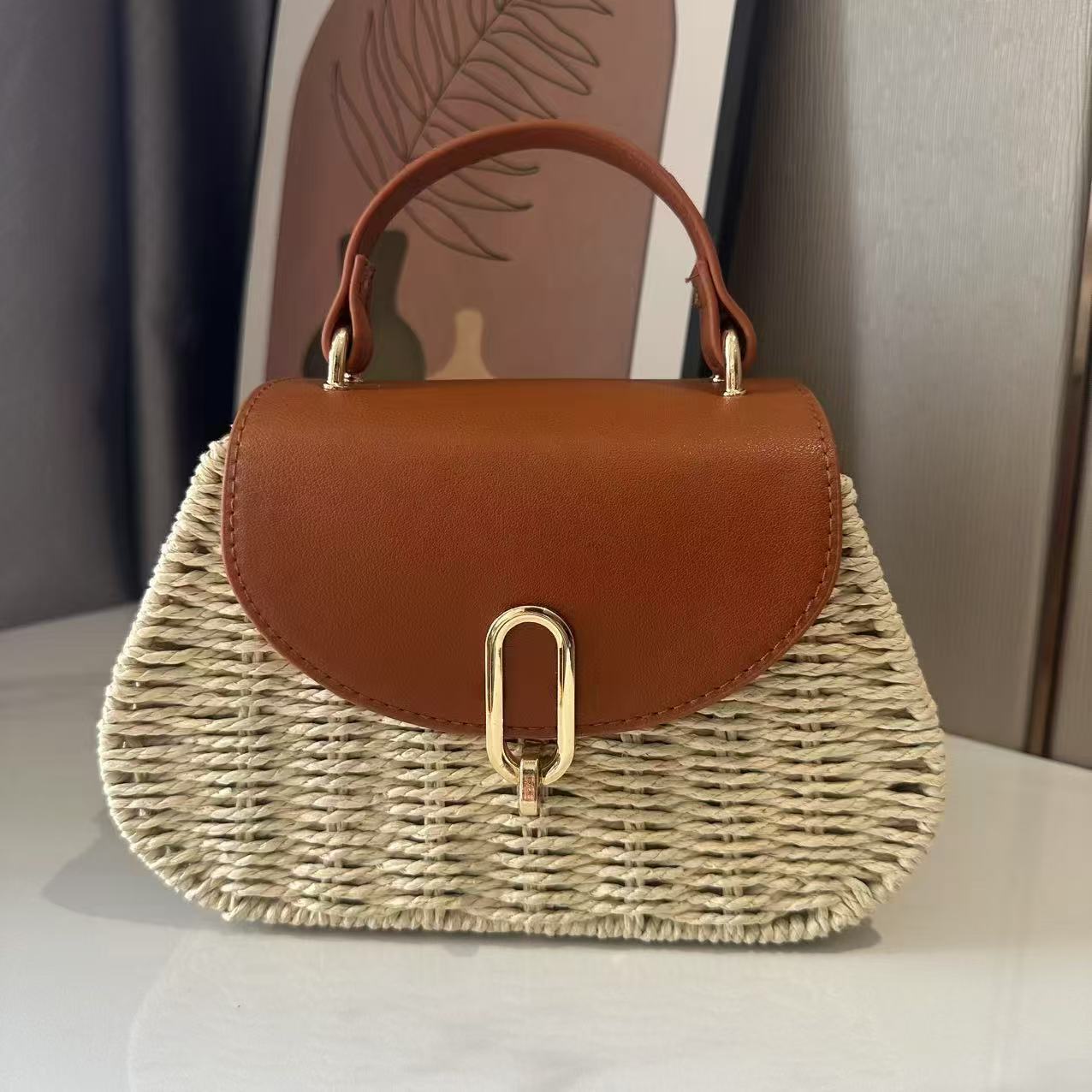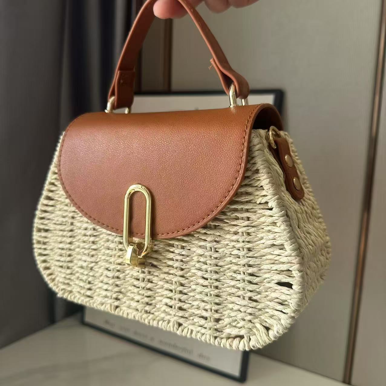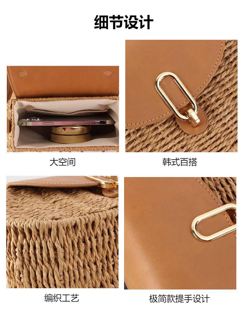 Bolso bandolera de playa de moda Ins Bolso casual para mujer Estilo literario Bolso de paja Bolso cuadrado pequeño de mano Bolso para mujer Bolso tejido