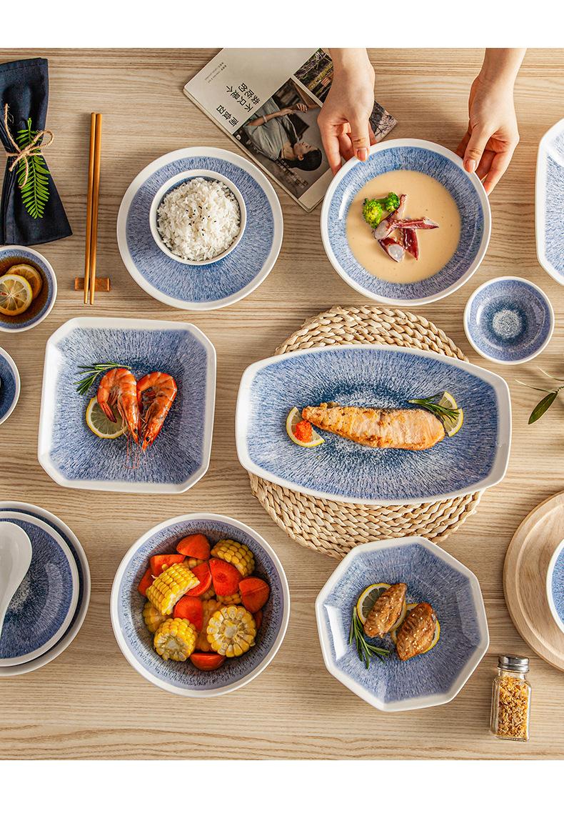 Juego de vajilla de cerámica para el hogar, plato creativo, plato hondo, combinación de platos, plato personalizado, nuevo chino, color bajo cubierta