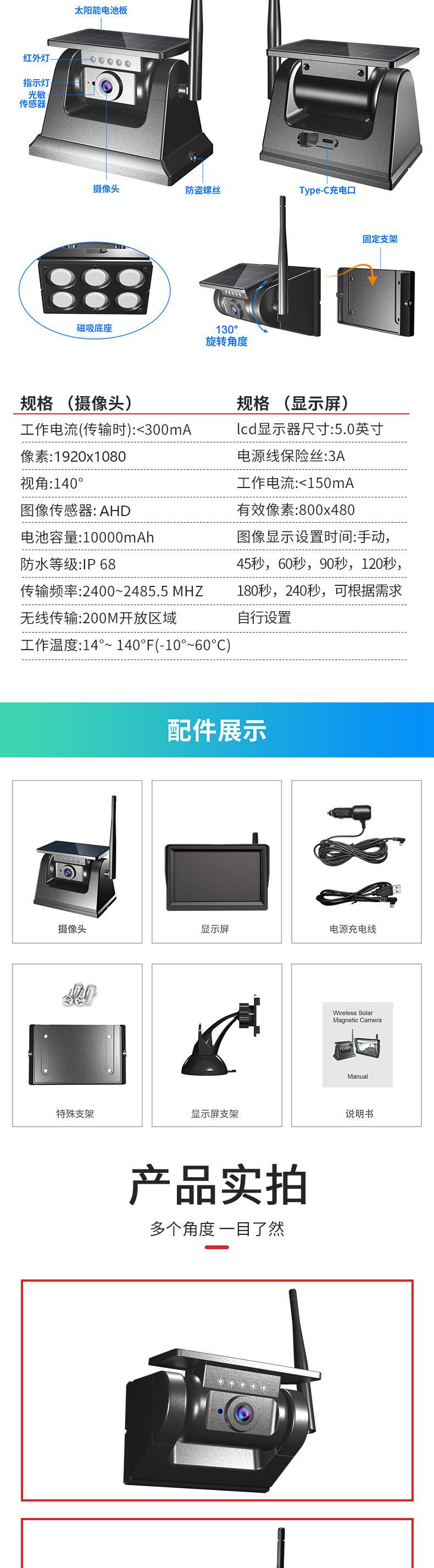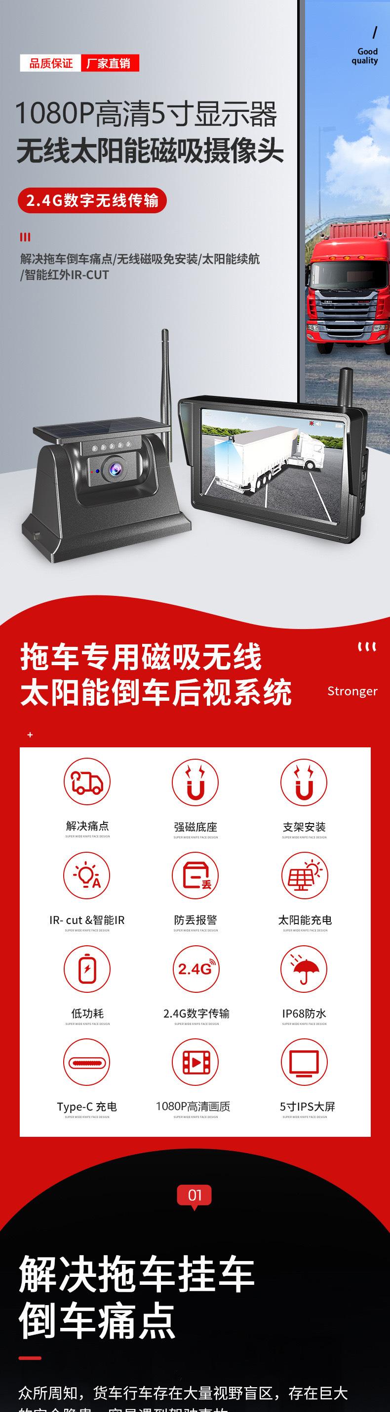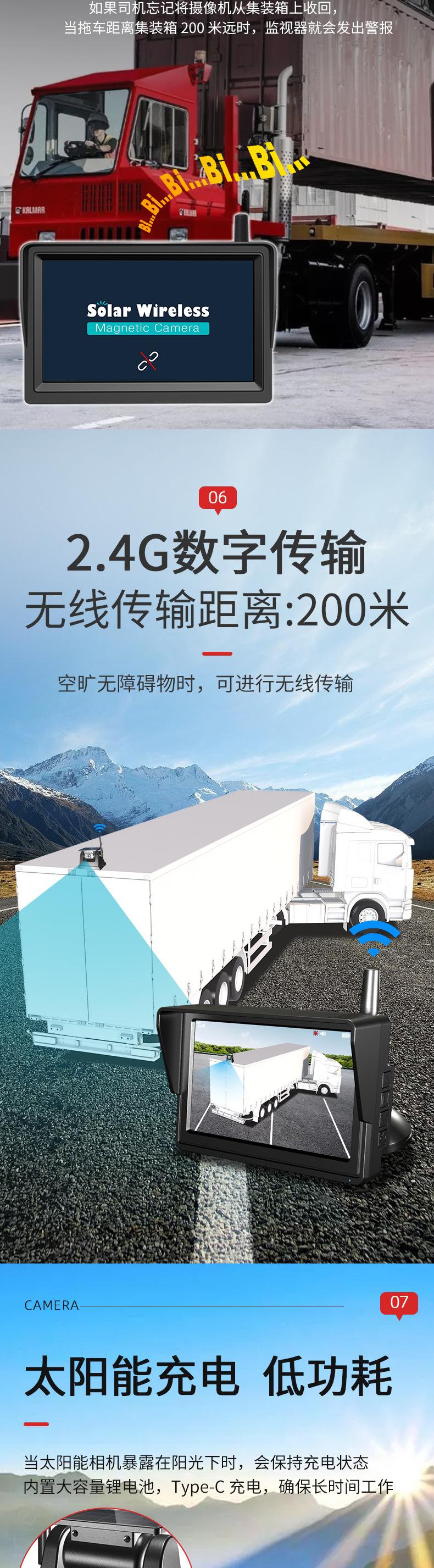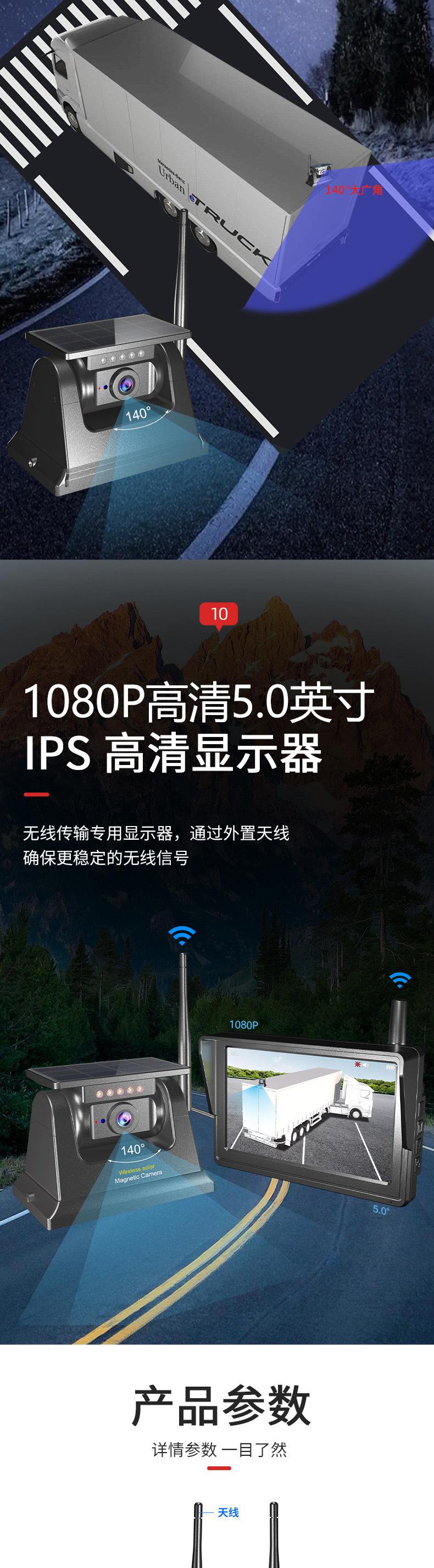 Soporte Magnético Cámara Solar Carga de Batería Digital Camión Inalámbrico Pantalla de 5 pulgadas Cámara de Reversa Vista Trasera