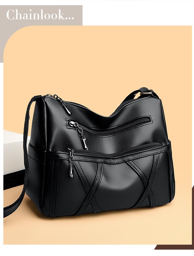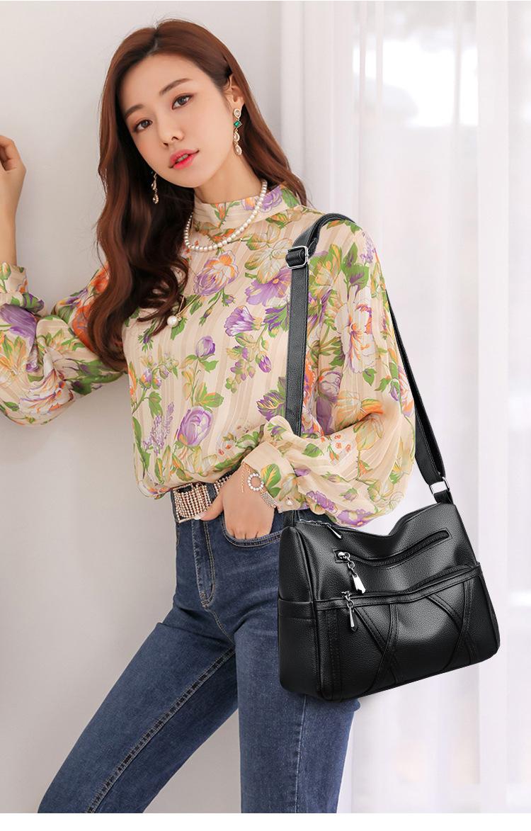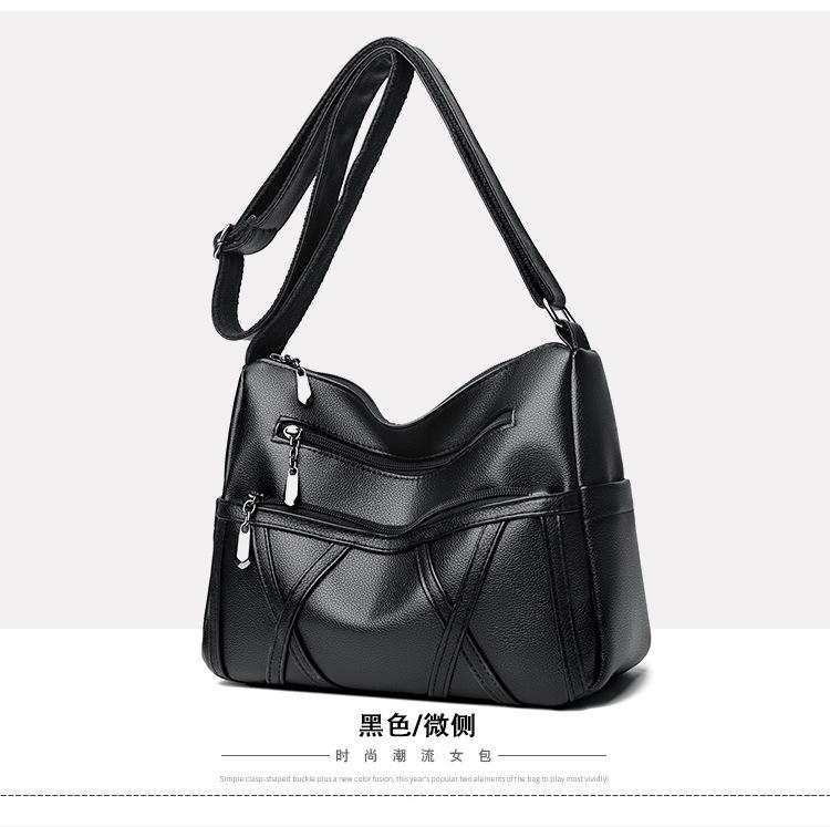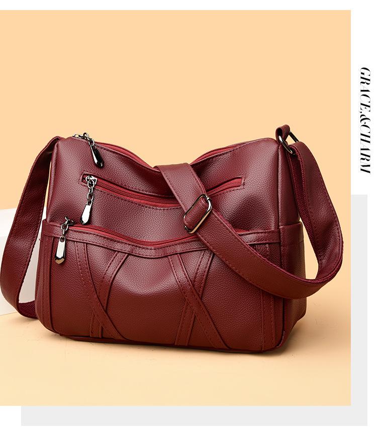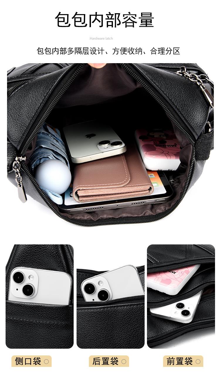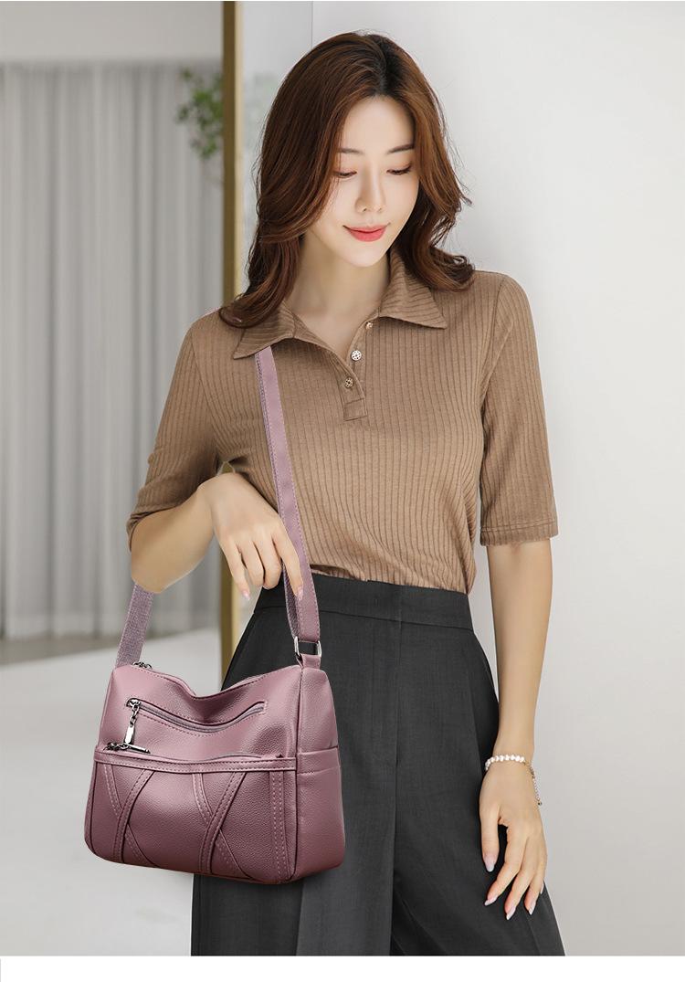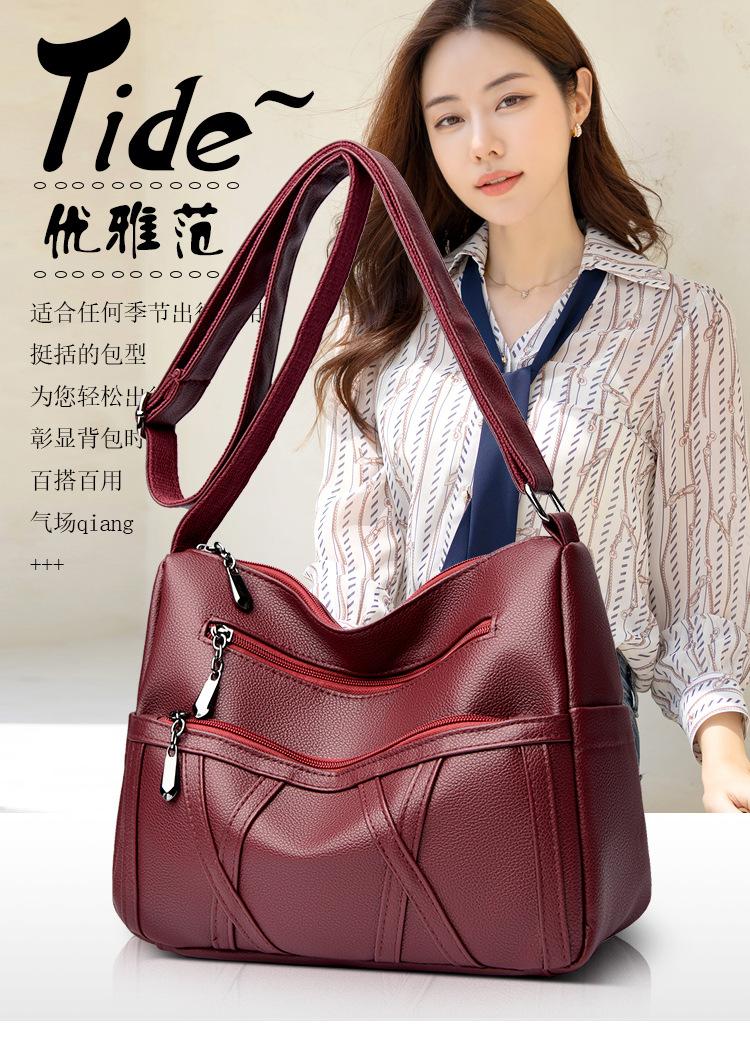 Bolso de mujer de gran capacidad, nuevo bolso de piel suave texturizada para madres de mediana edad y mayores, bolso bandolera multicapa de piel auténtica, 2024