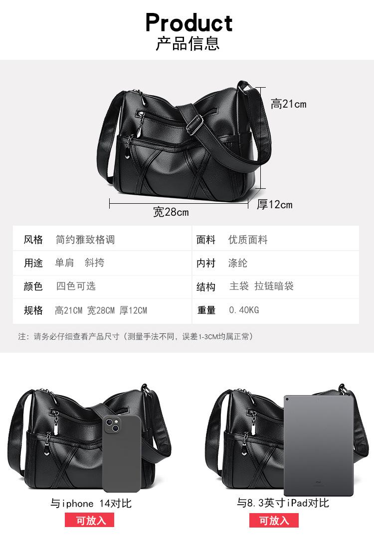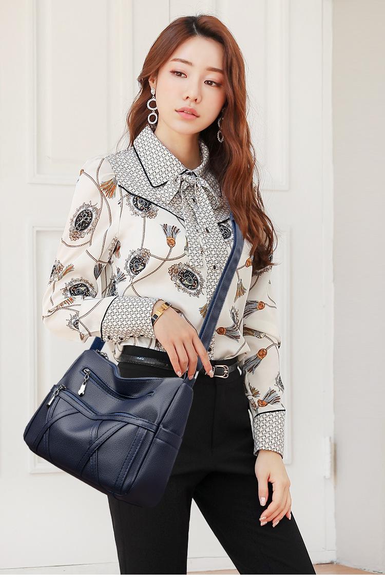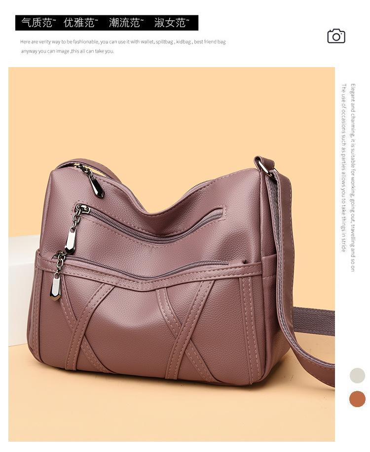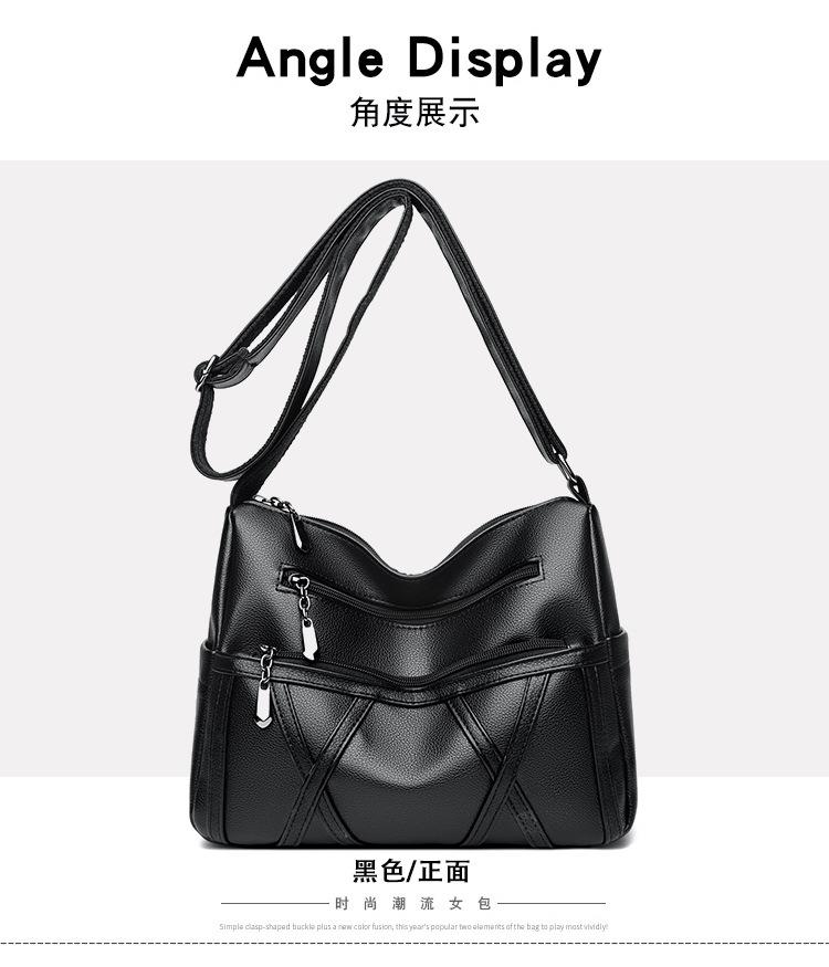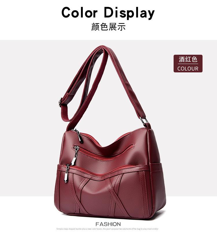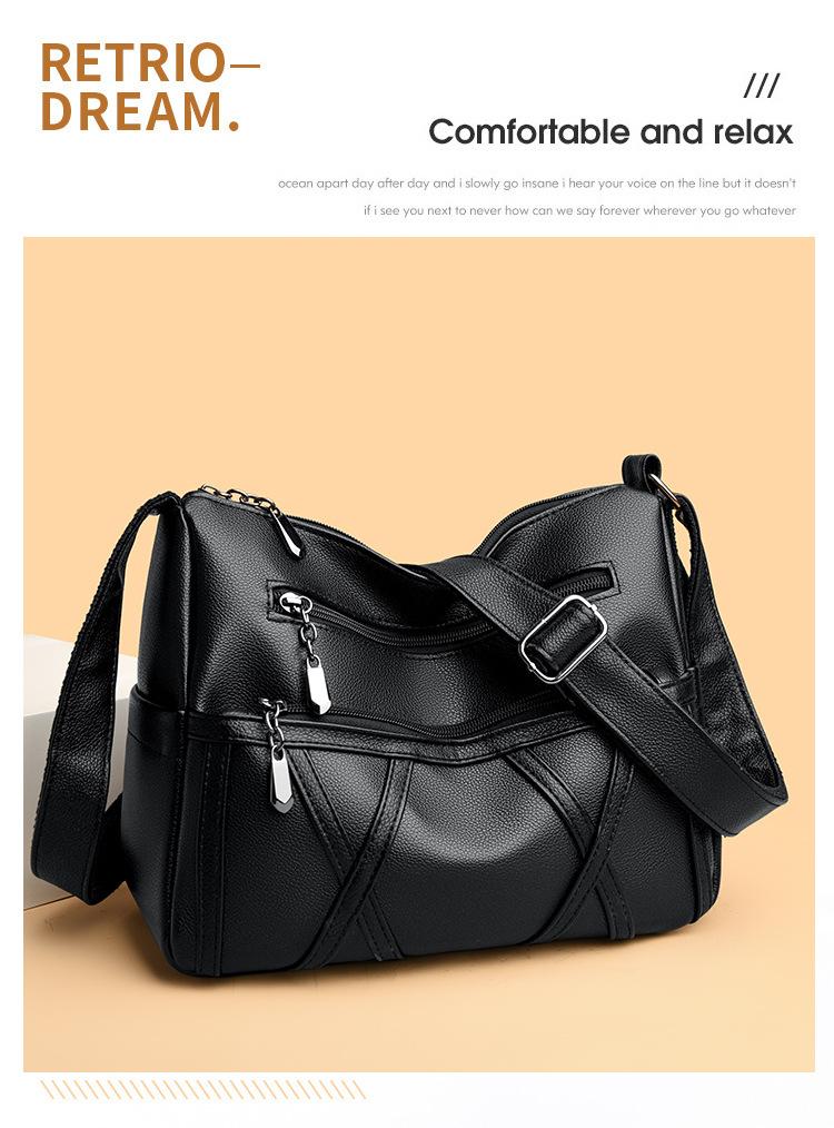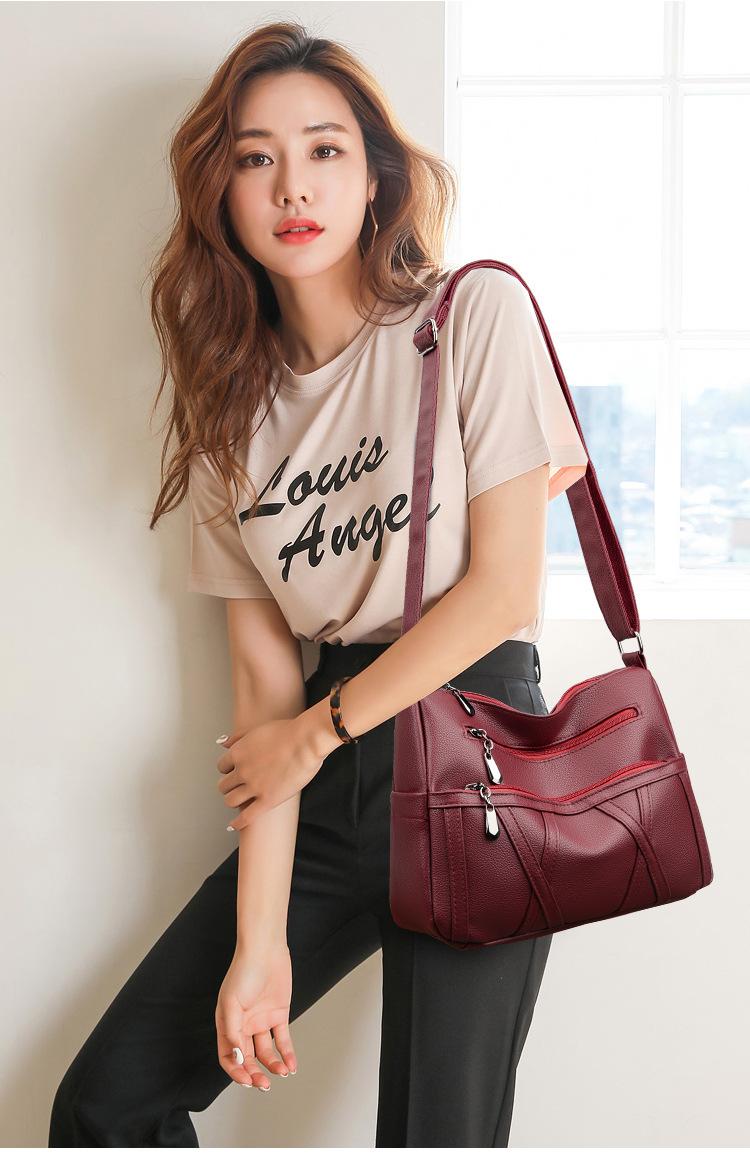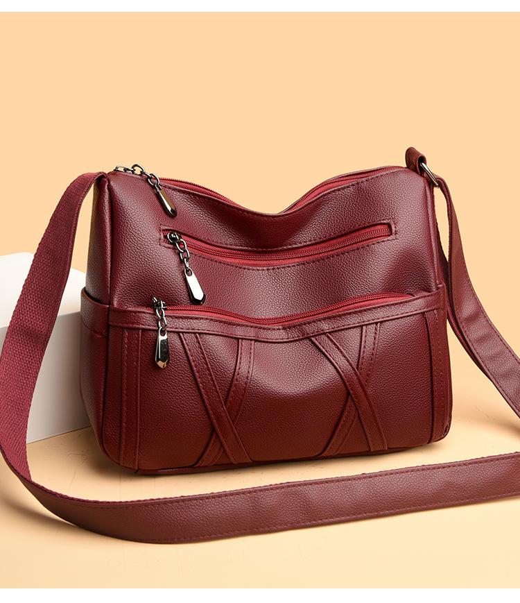 Bolso de mujer de gran capacidad, nuevo bolso de piel suave texturizada para madres de mediana edad y mayores, bolso bandolera multicapa de piel auténtica, 2024