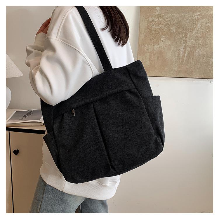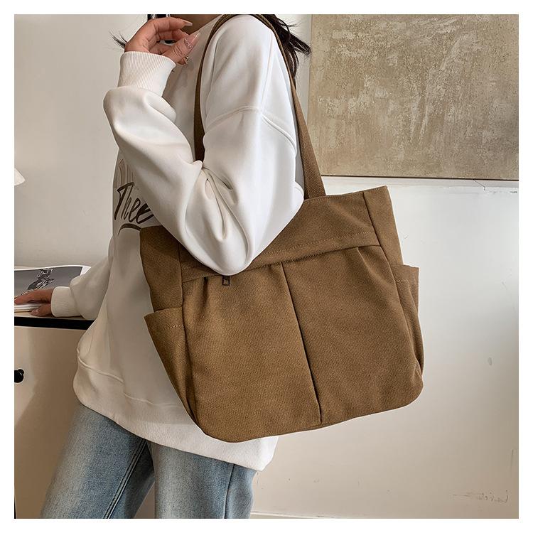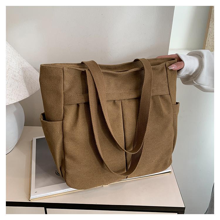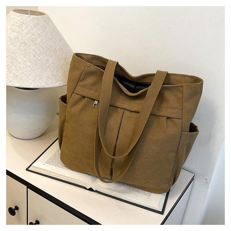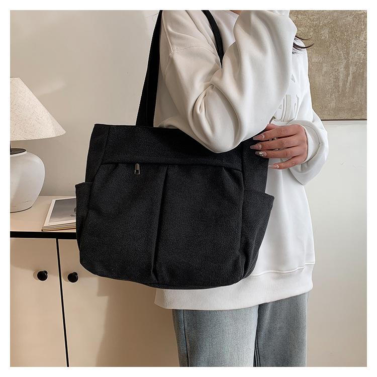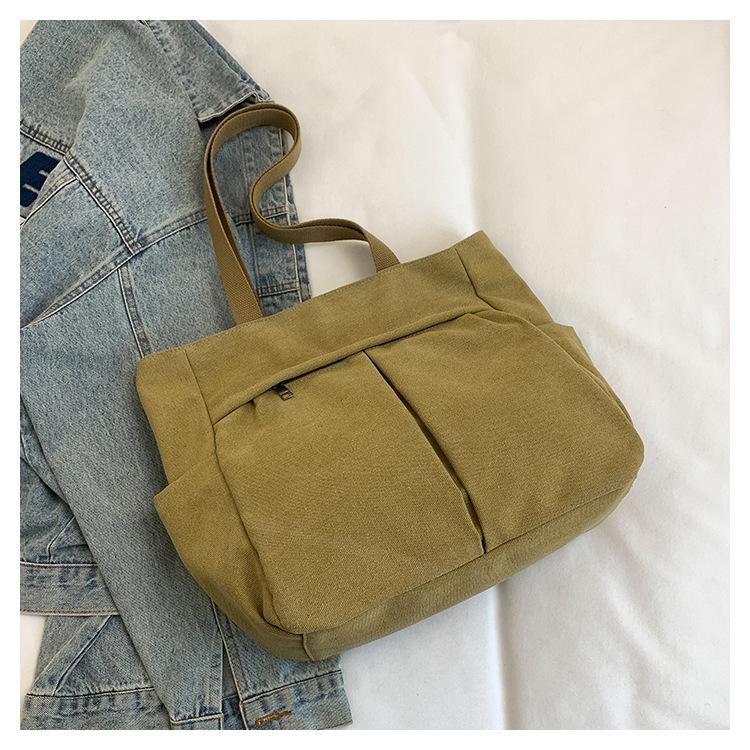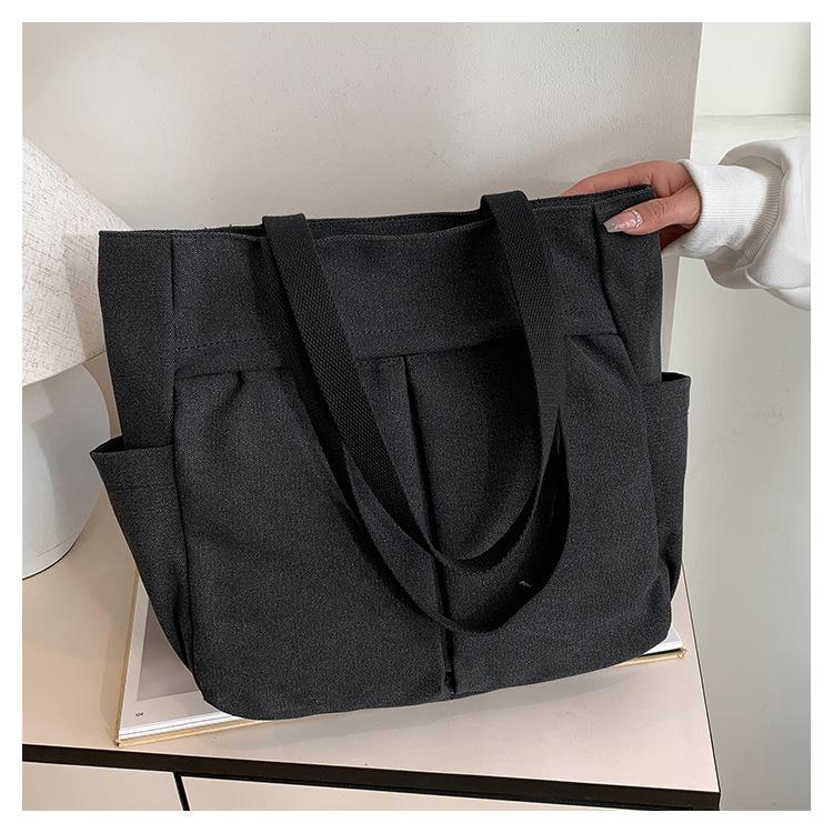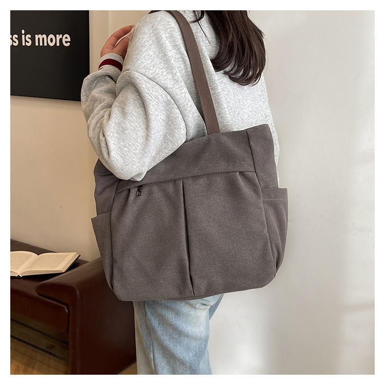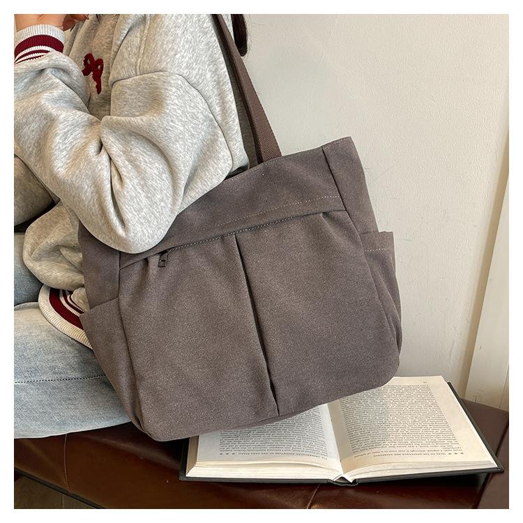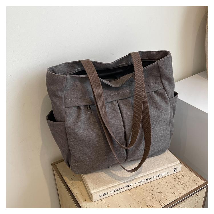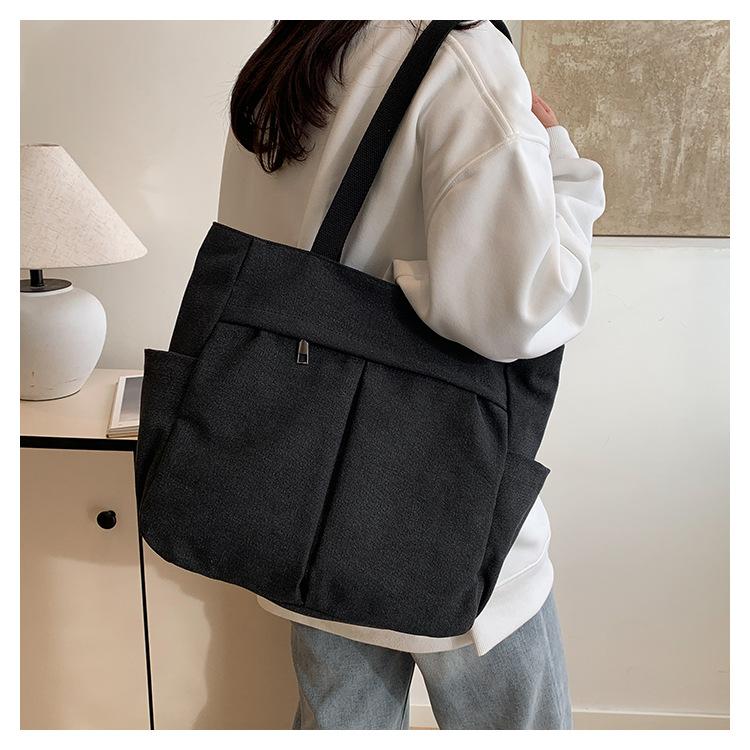 Bolso de lona nuevo, moderno, de gran capacidad, retro, texturizado, de color sólido, bolso de hombro sencillo y versátil.