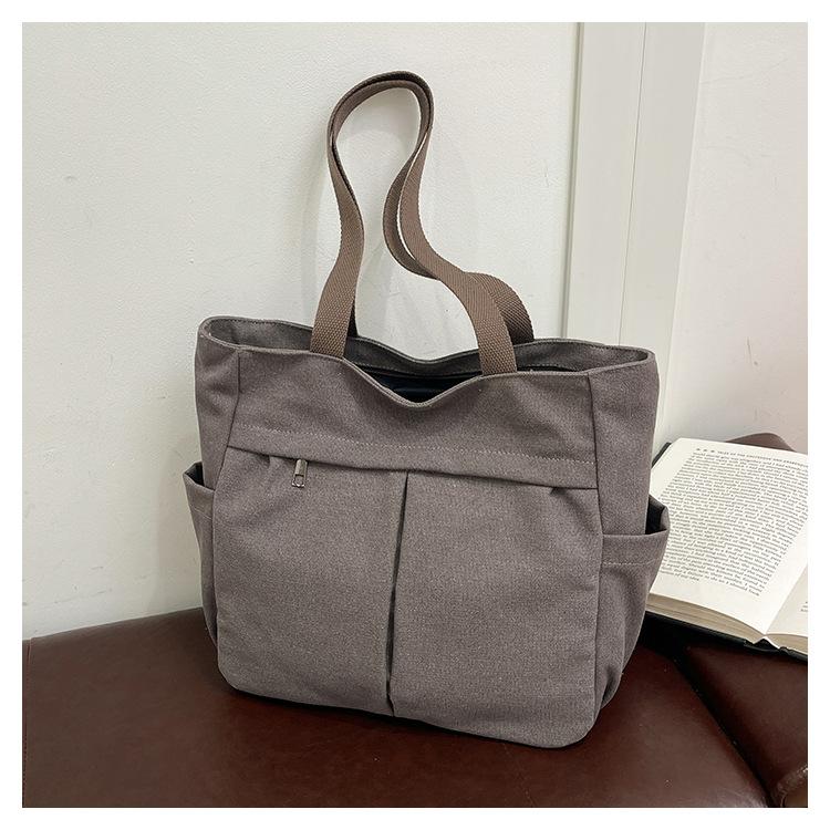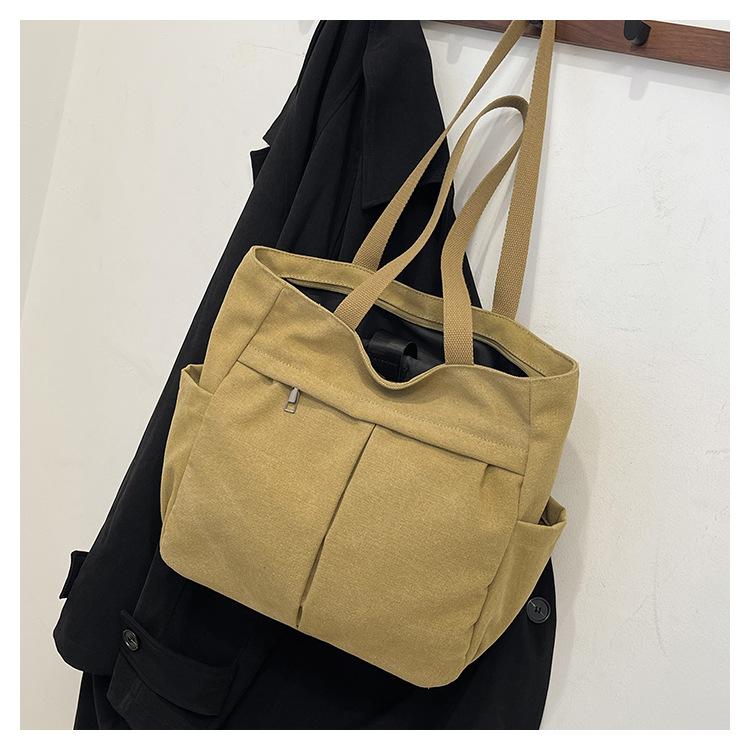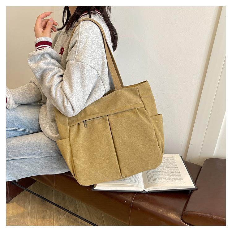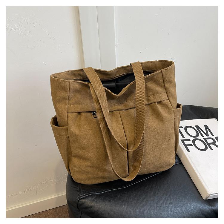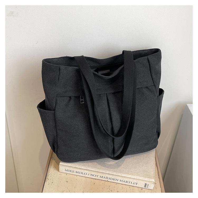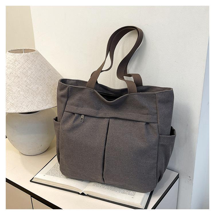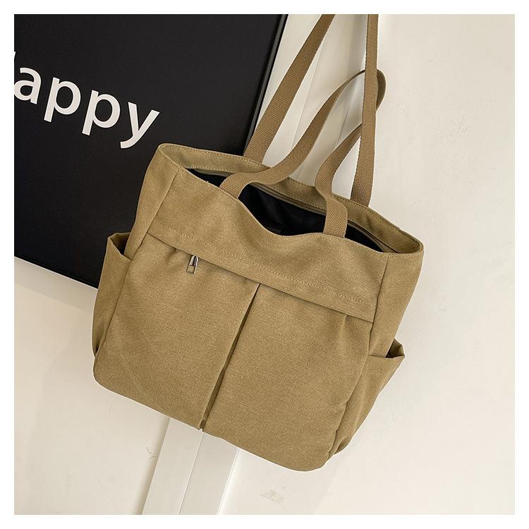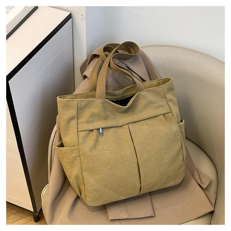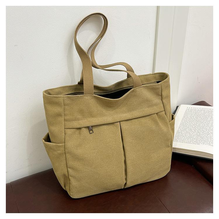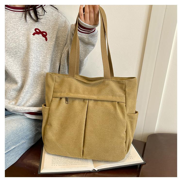 Bolso de lona nuevo, moderno, de gran capacidad, retro, texturizado, de color sólido, bolso de hombro sencillo y versátil.