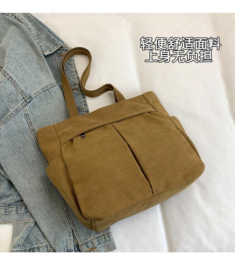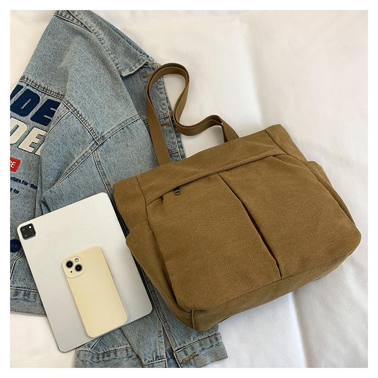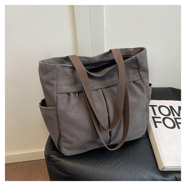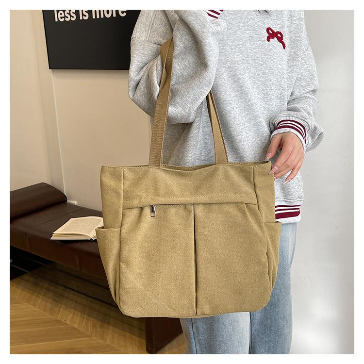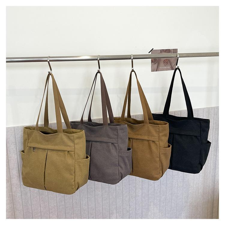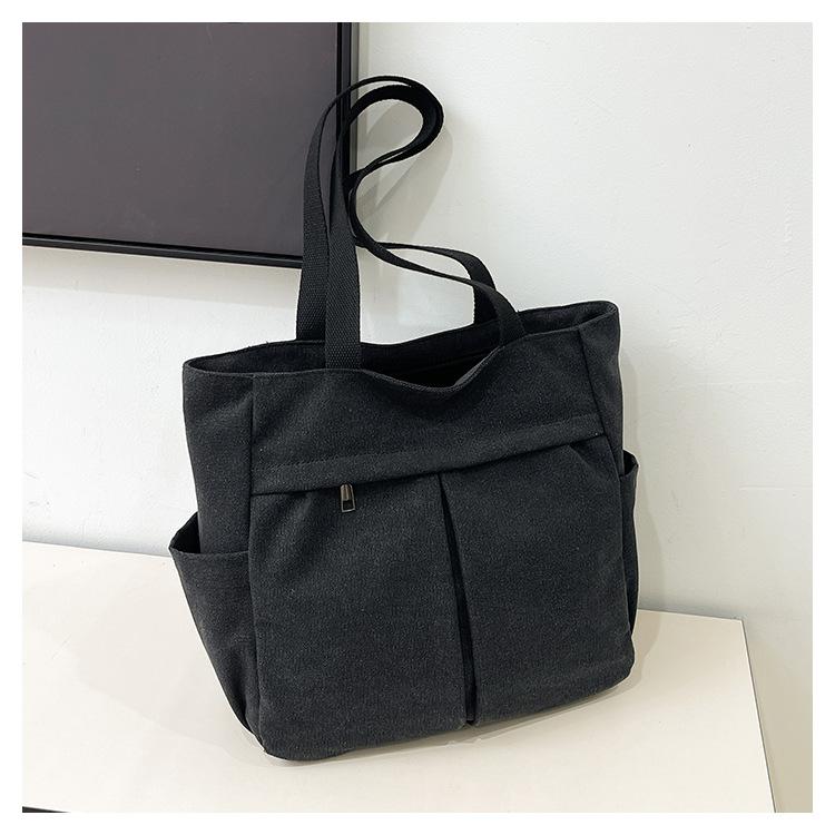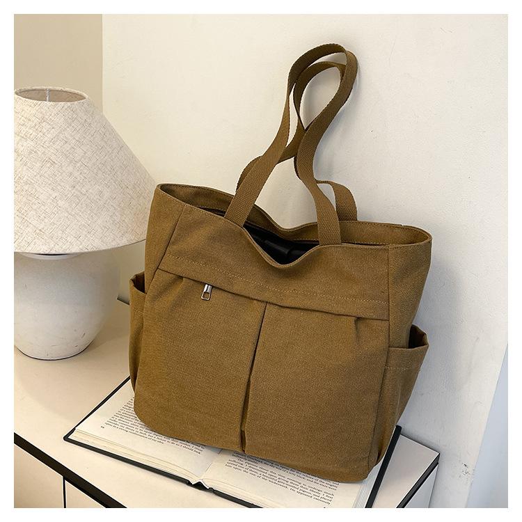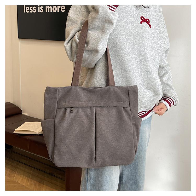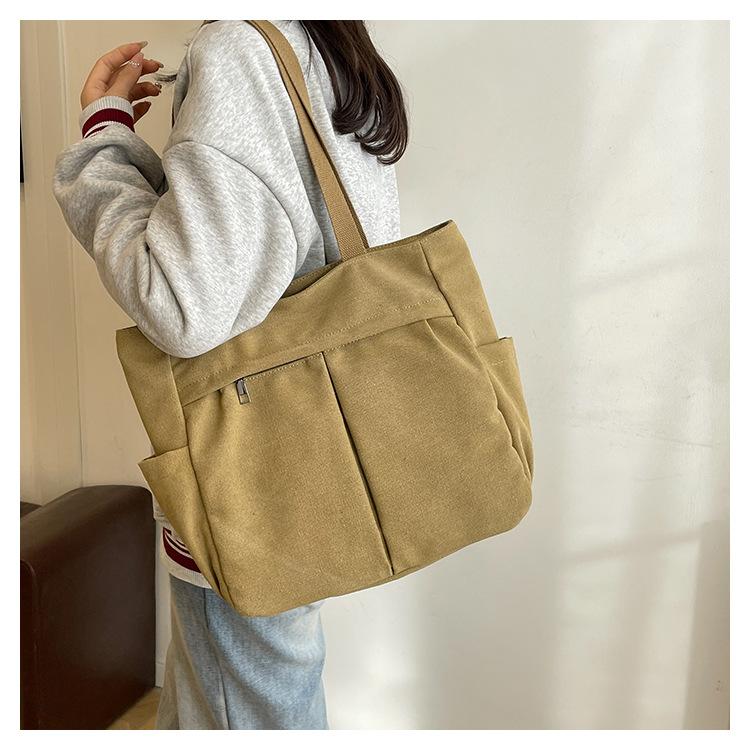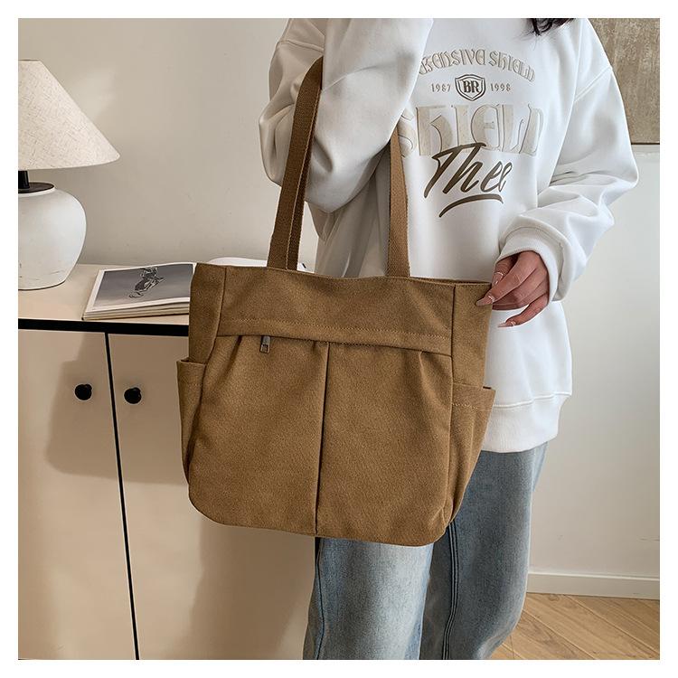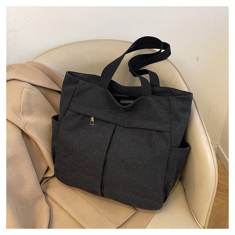 Bolso de lona nuevo, moderno, de gran capacidad, retro, texturizado, de color sólido, bolso de hombro sencillo y versátil.