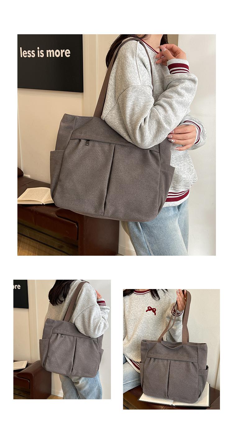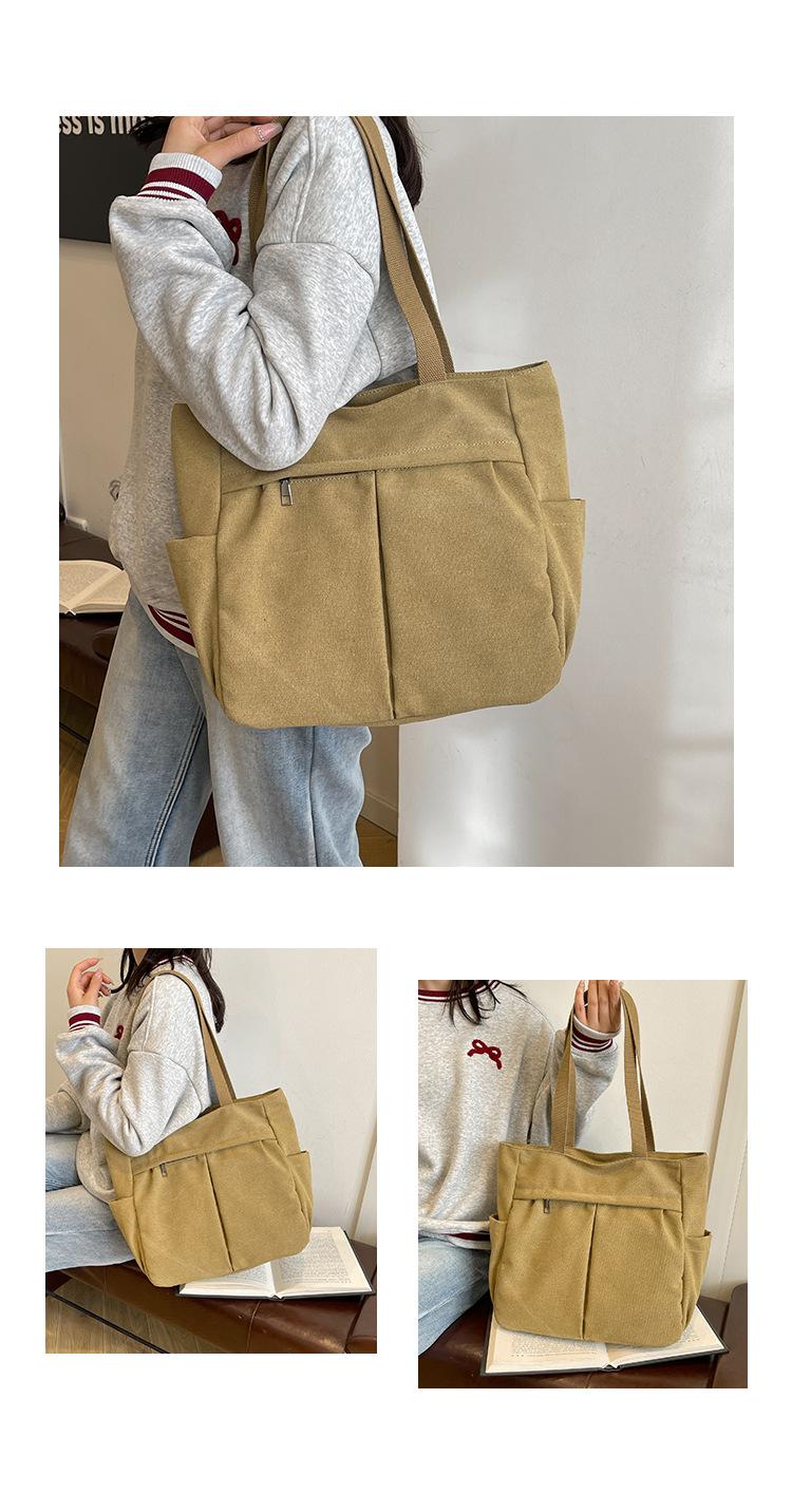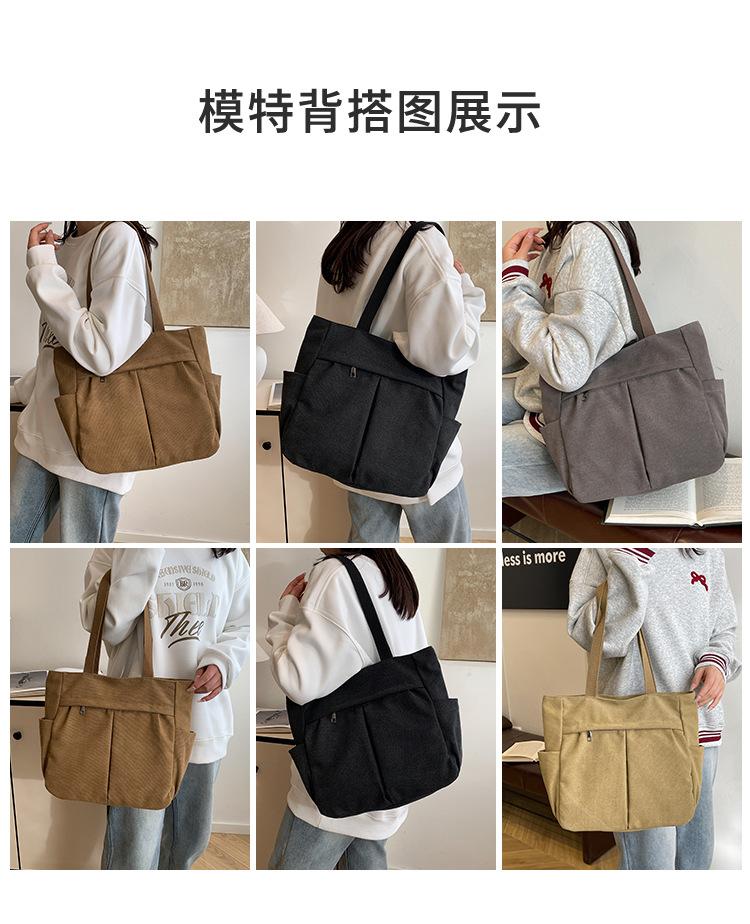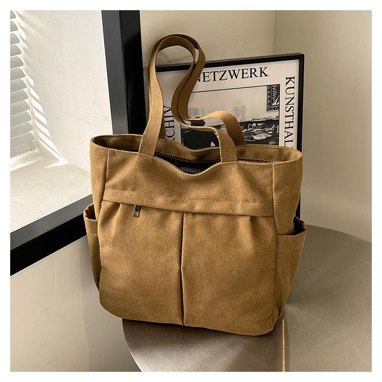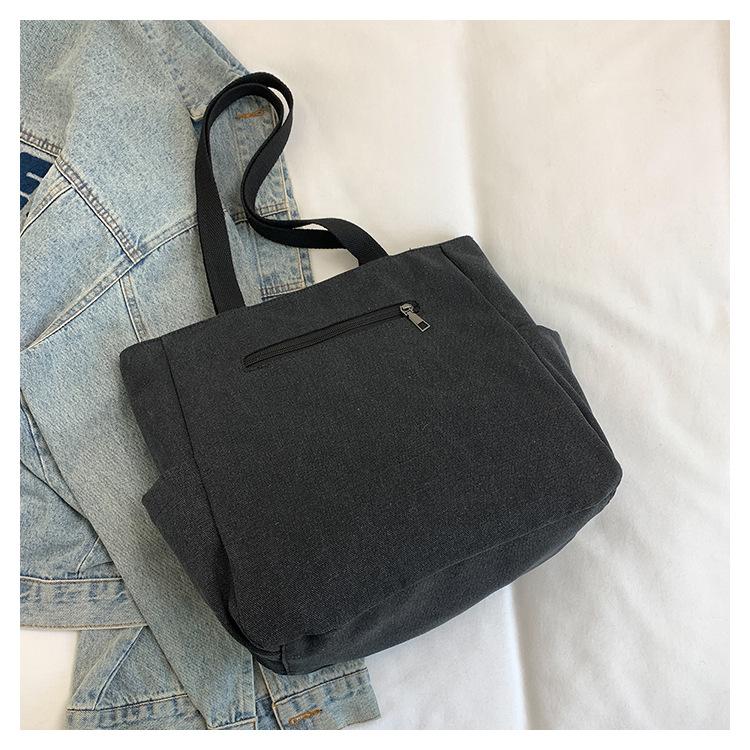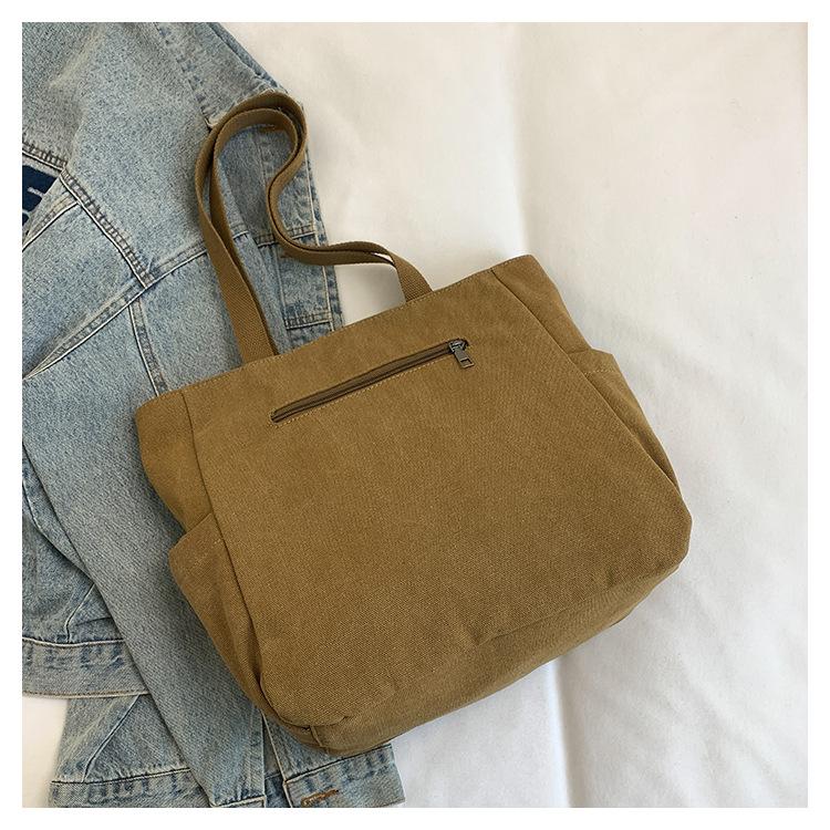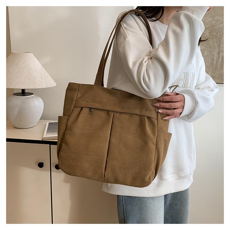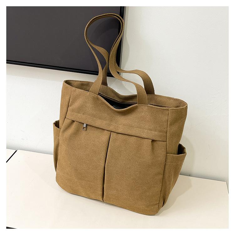 Bolso de lona nuevo, moderno, de gran capacidad, retro, texturizado, de color sólido, bolso de hombro sencillo y versátil.