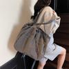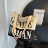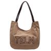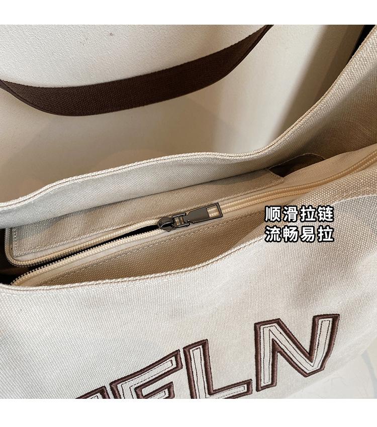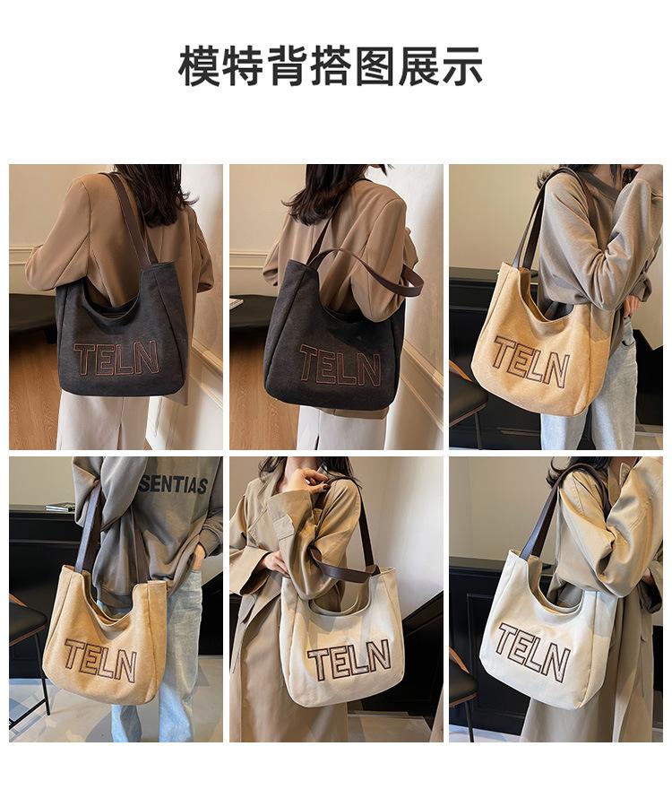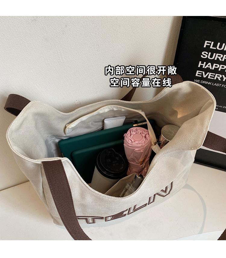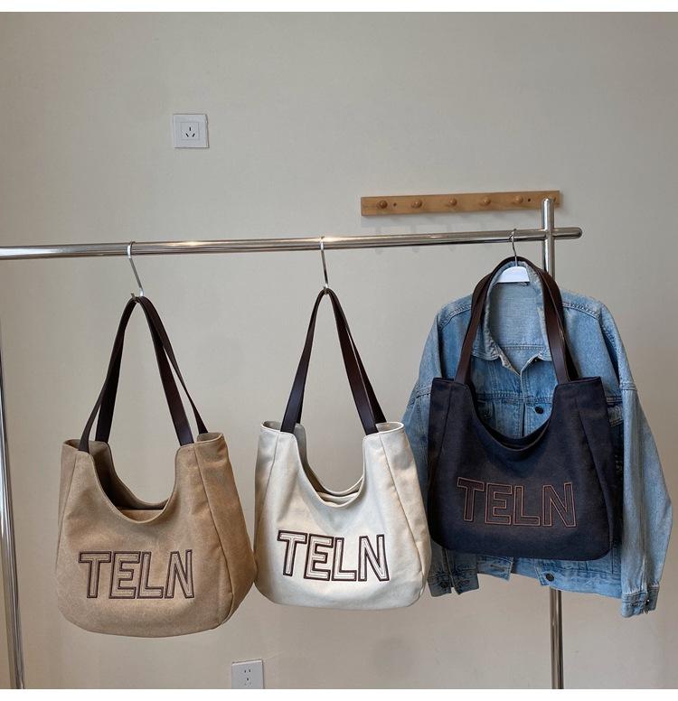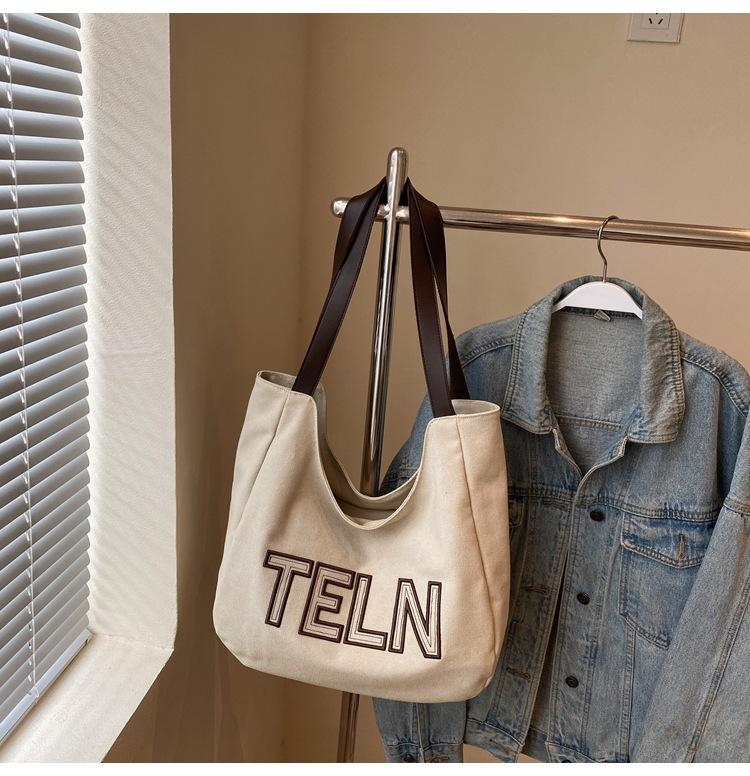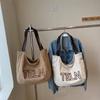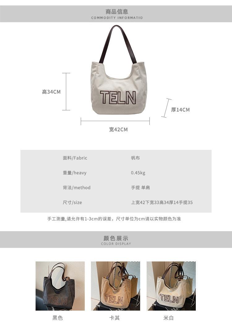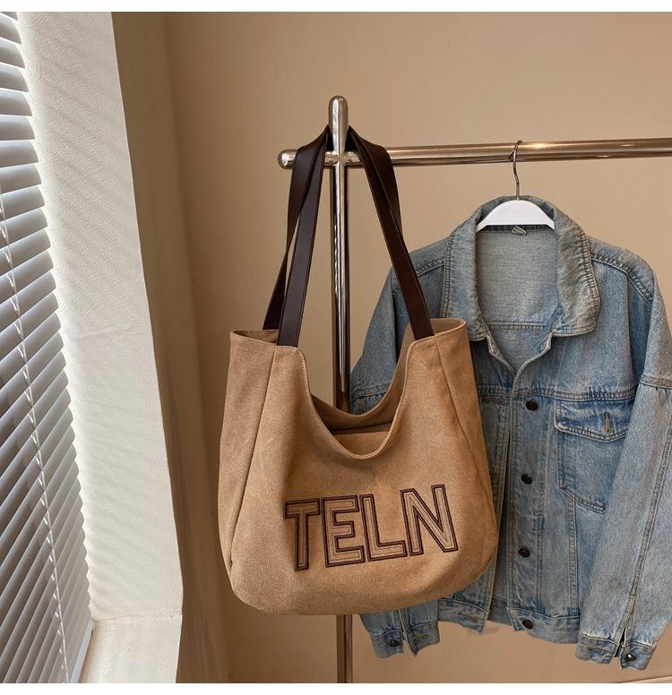 Bolso de mano de gran capacidad con letras bordadas en estéreo, bolso de lona, nuevo bolso de hombro portátil, informal, retro, de color sólido, 2025