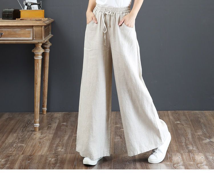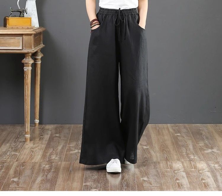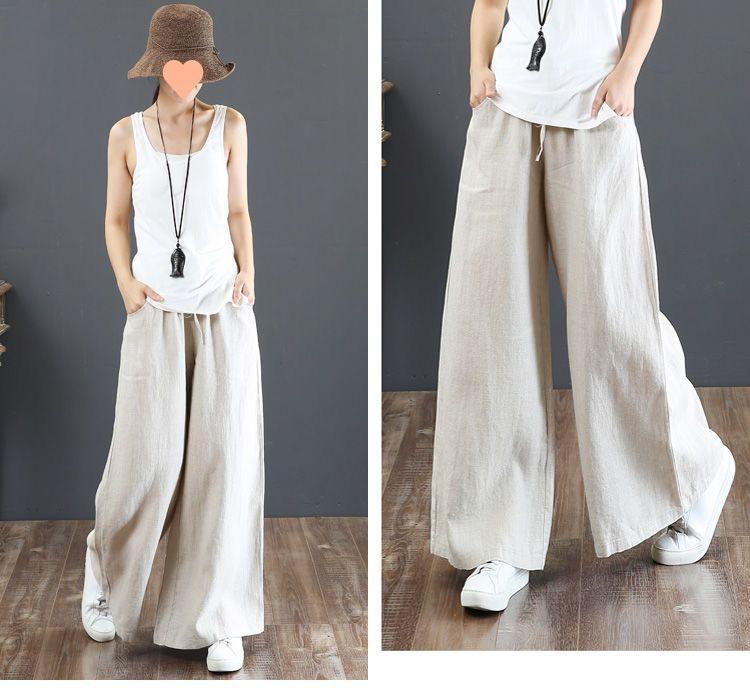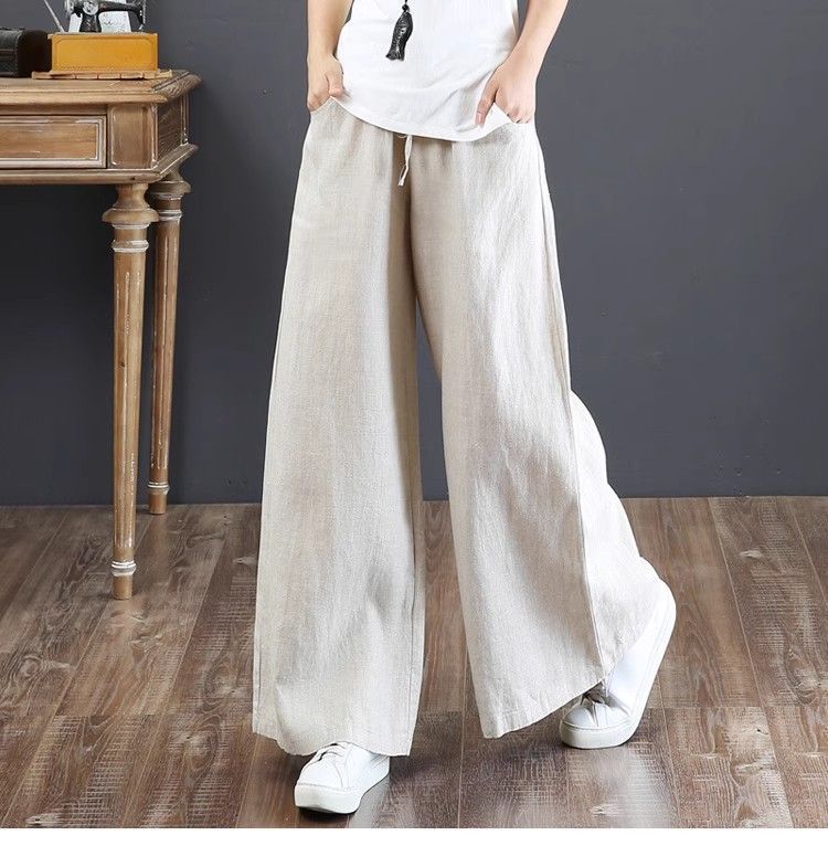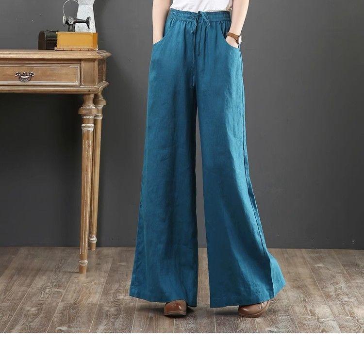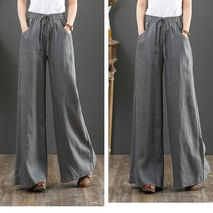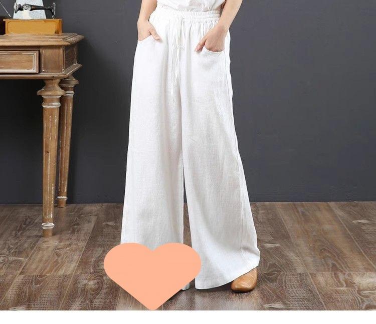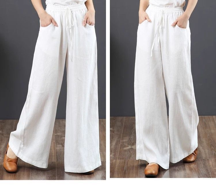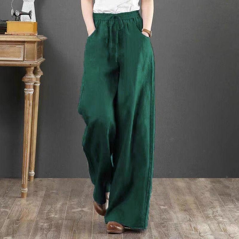 Pantalones de Mujer de Algodón y Lino de Verano y Primavera 2025 Pantalones Sueltos de Talla Grande Pantalones de Pierna Ancha Cintura Alta Pantalones para Barrer el Piso Pantalones