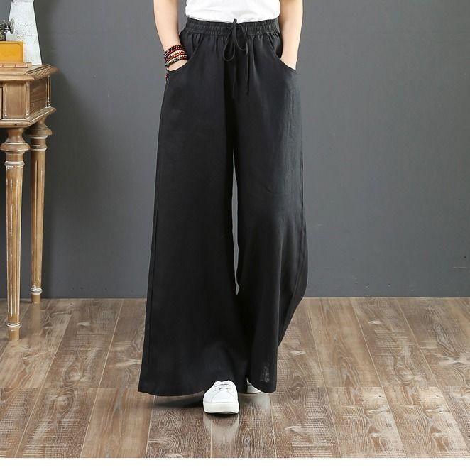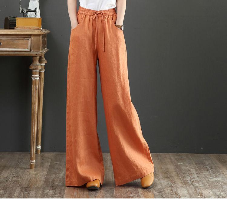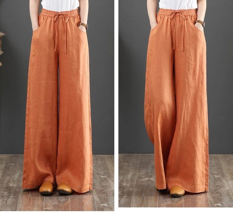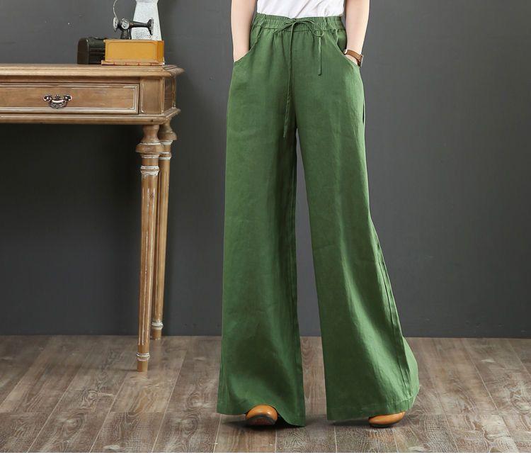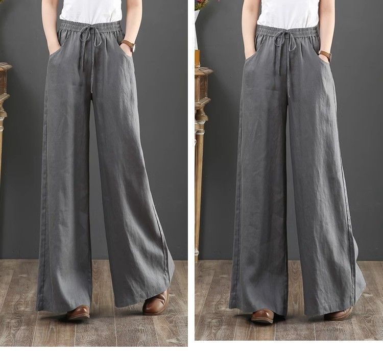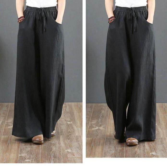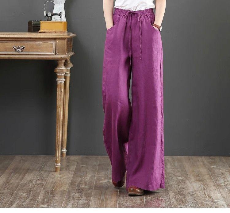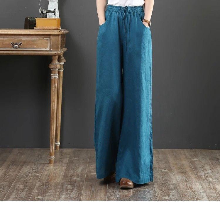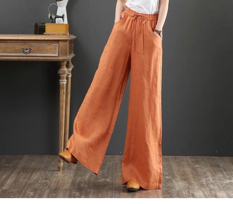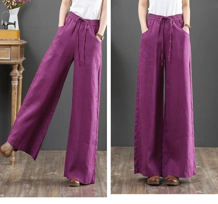 Pantalones de Mujer de Algodón y Lino de Verano y Primavera 2025 Pantalones Sueltos de Talla Grande Pantalones de Pierna Ancha Cintura Alta Pantalones para Barrer el Piso Pantalones
