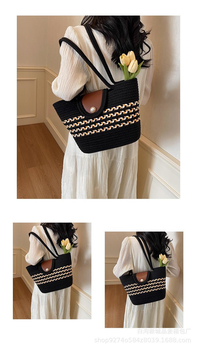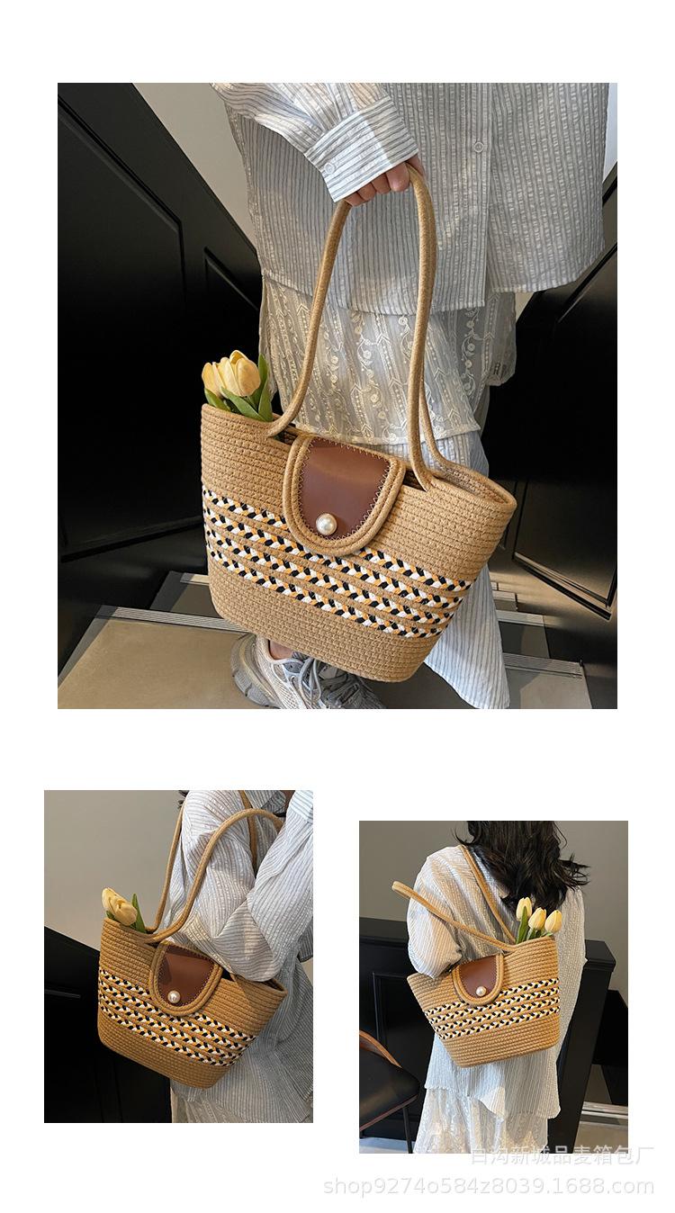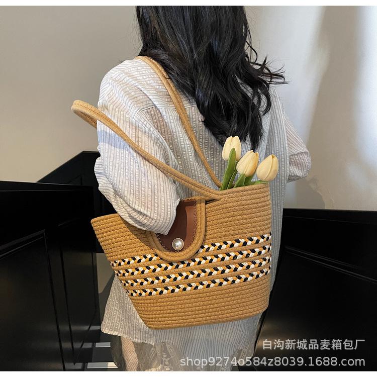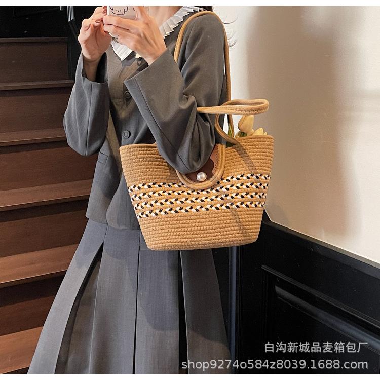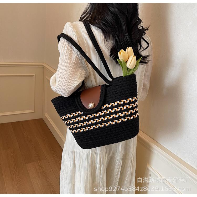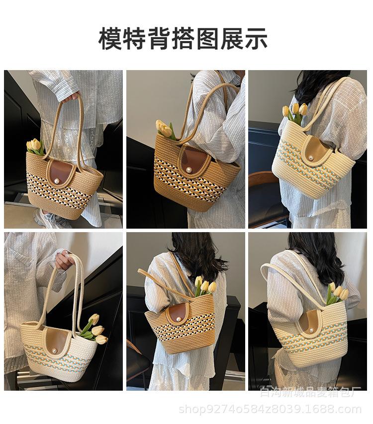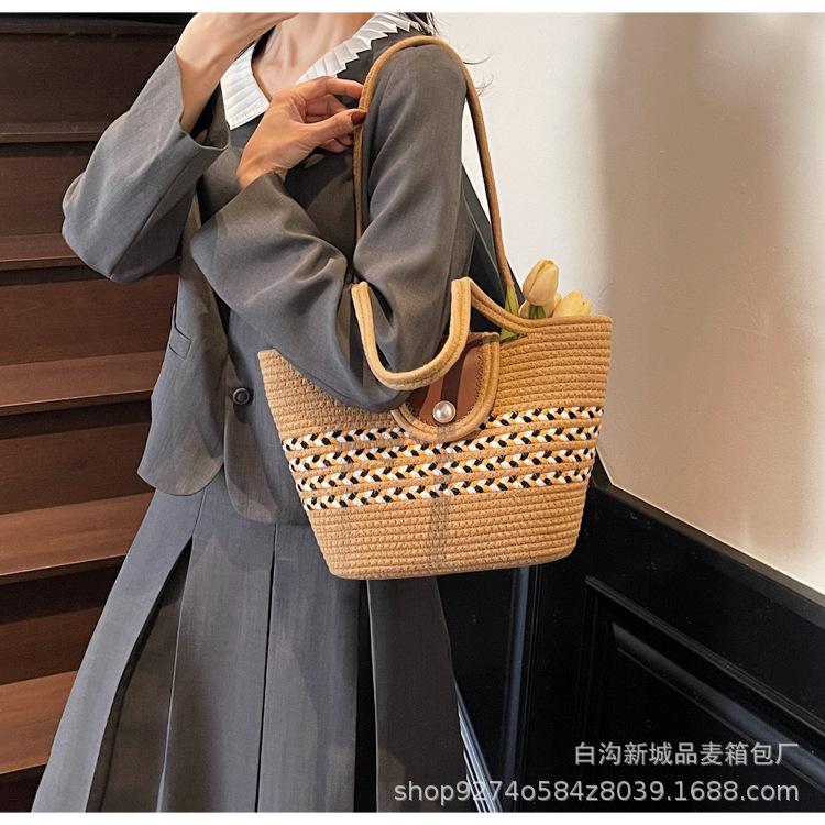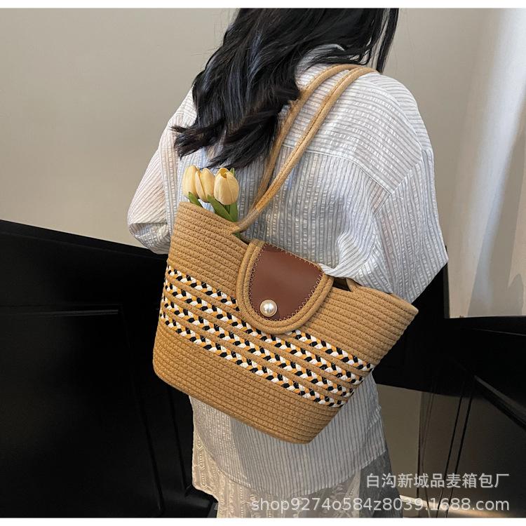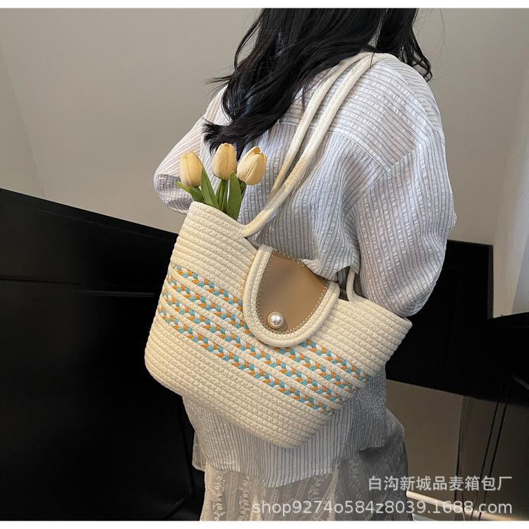 Bolso Tote Tejido de Gran Capacidad para Mujer 2025 Nuevo Estilo Casual Bolso de Paja Estilo Vacacional Bolso de Hombro a la Moda