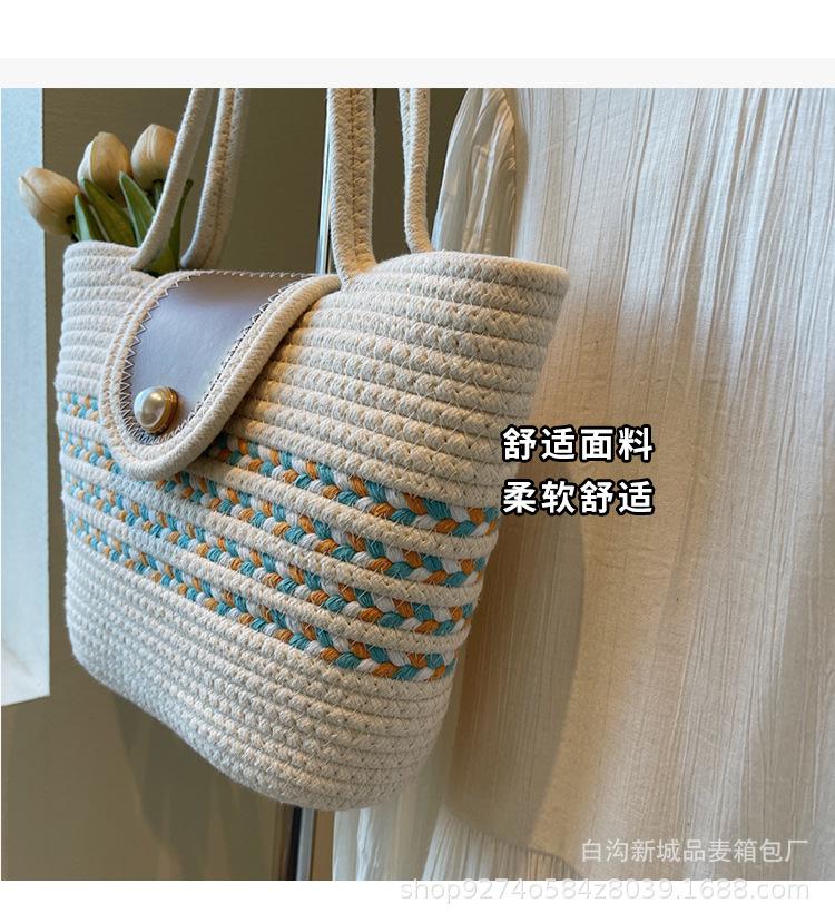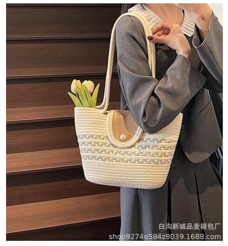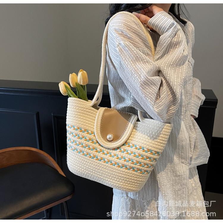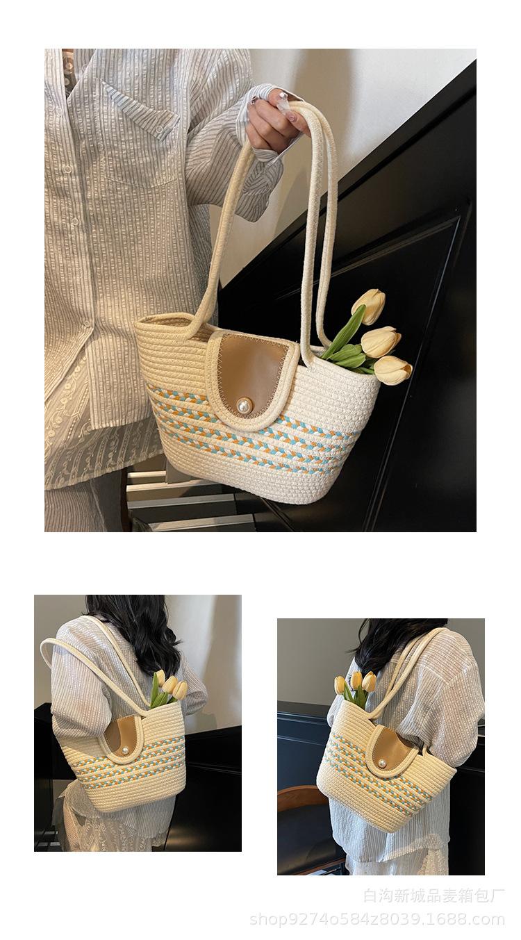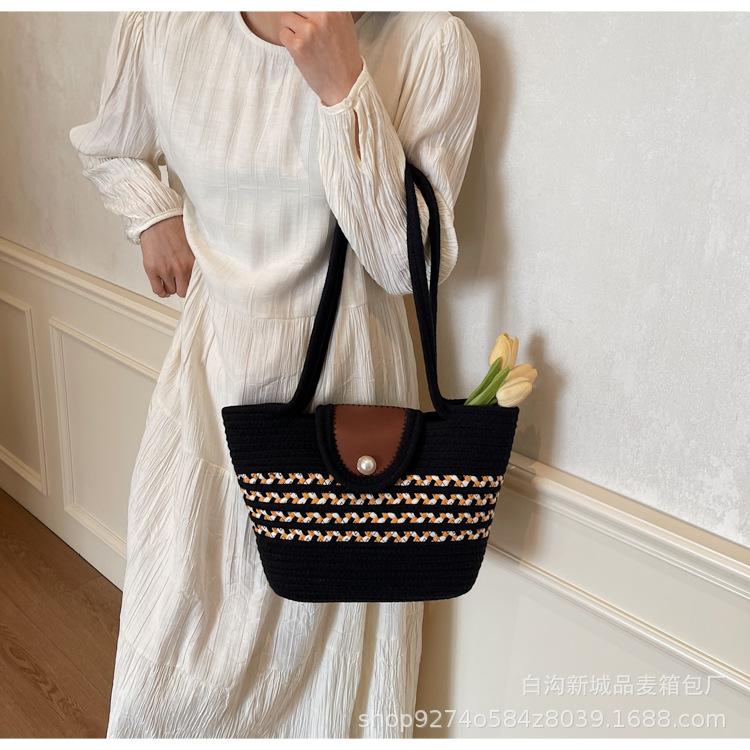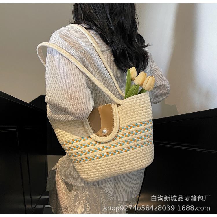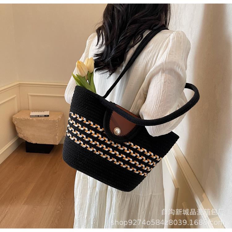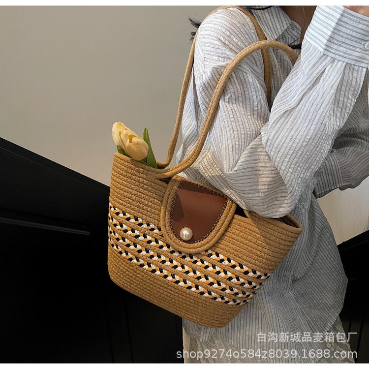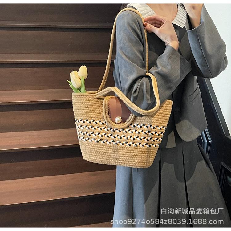 Bolso Tote Tejido de Gran Capacidad para Mujer 2025 Nuevo Estilo Casual Bolso de Paja Estilo Vacacional Bolso de Hombro a la Moda