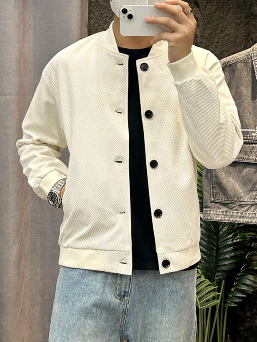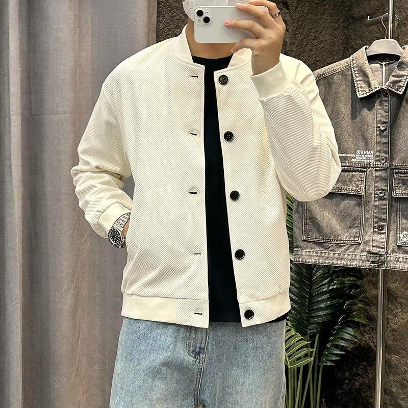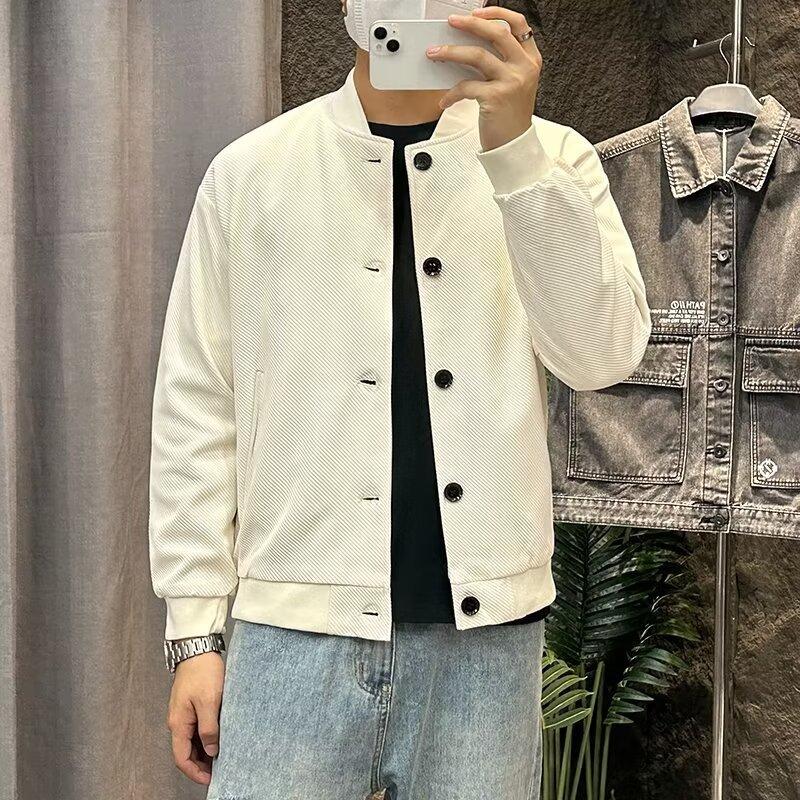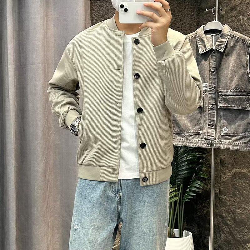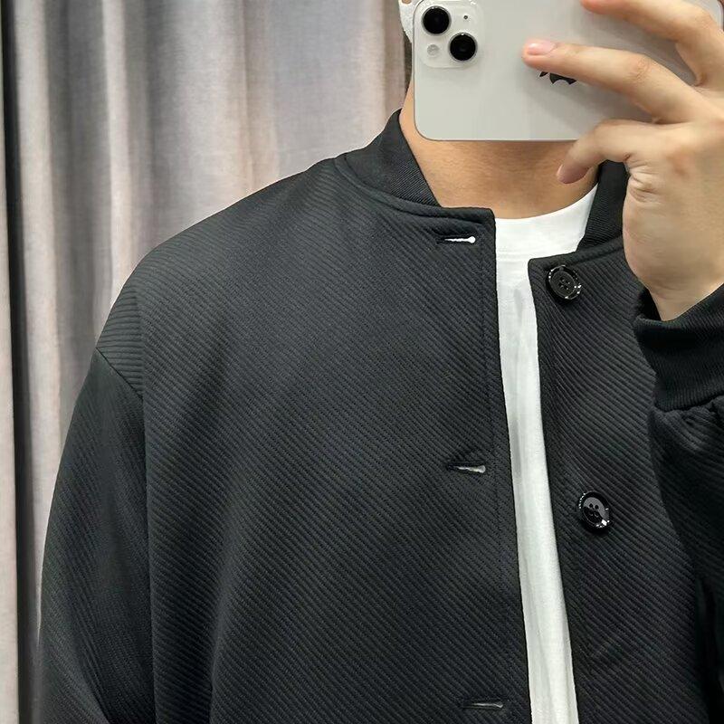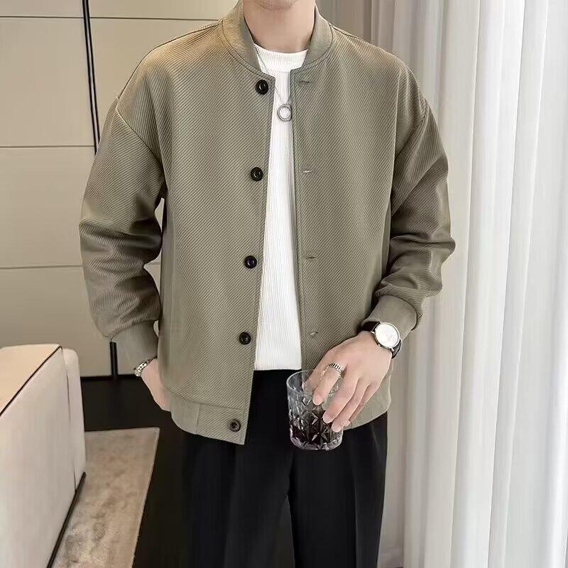 Chaqueta de béisbol de manga larga holgada para hombre, estilo informal, con cuello de béisbol, color liso, para primavera y otoño