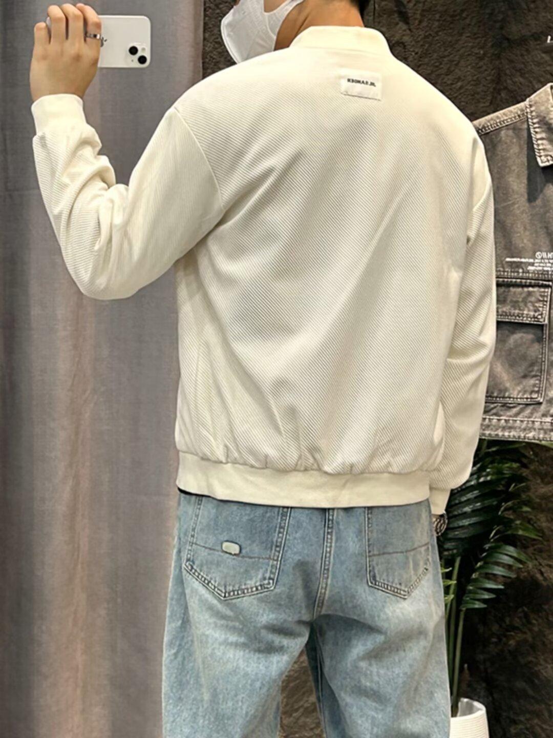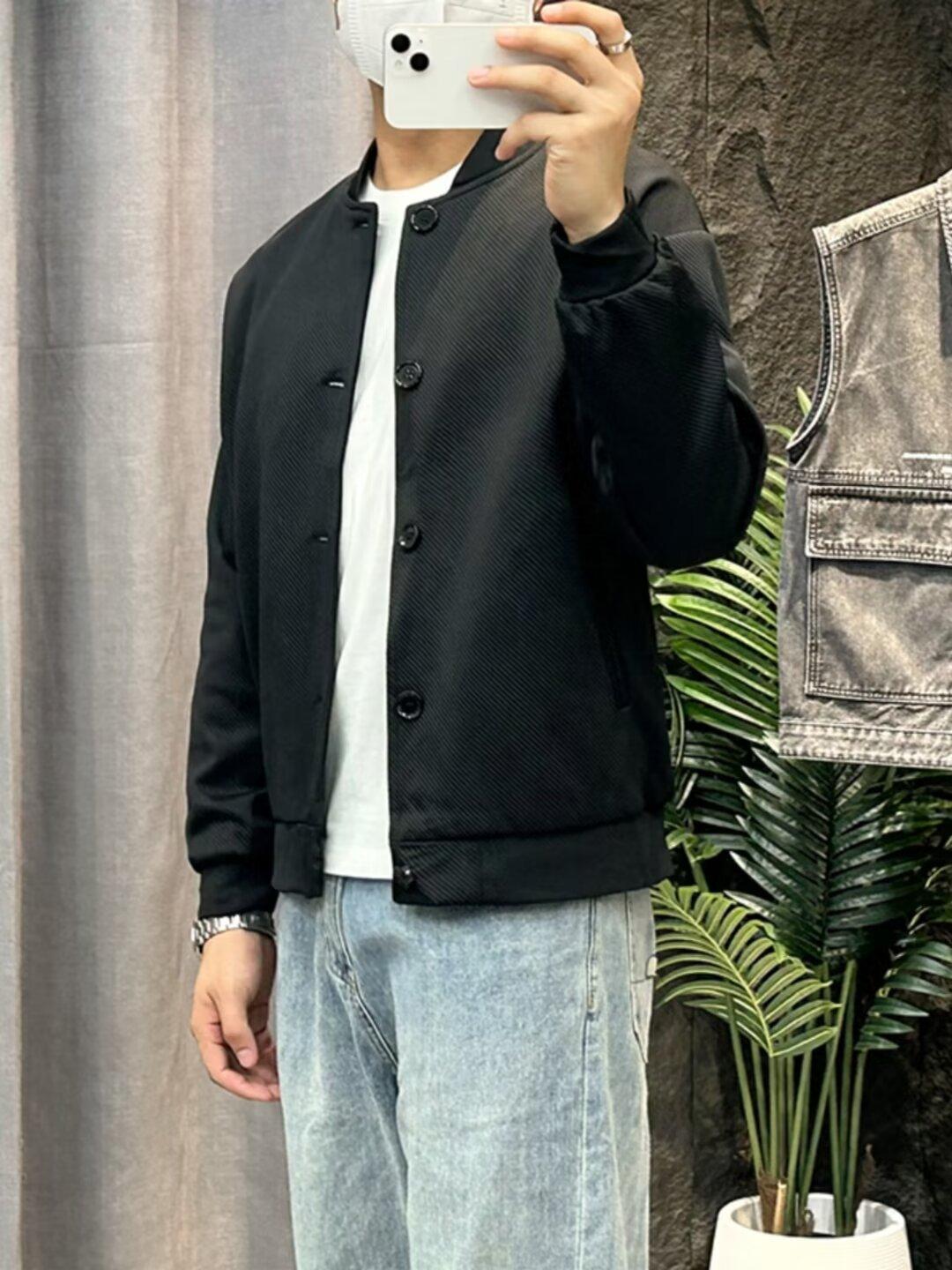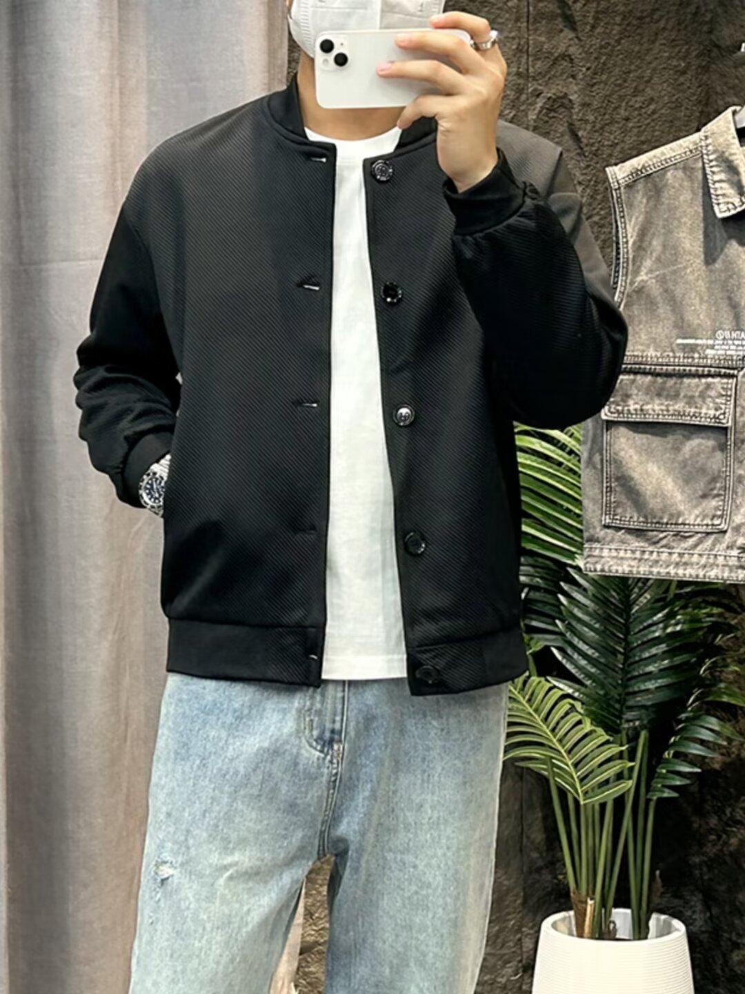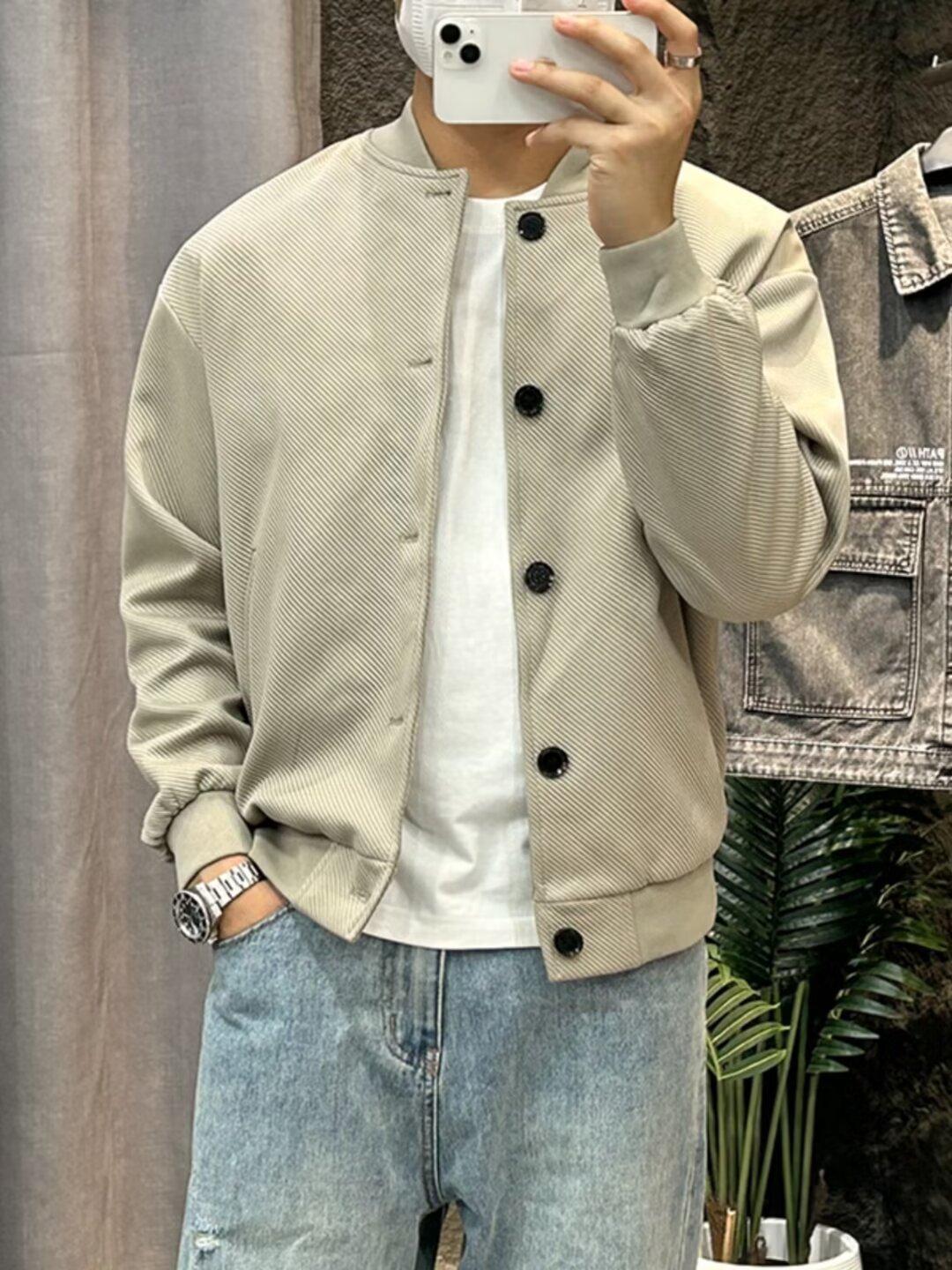 Chaqueta de béisbol de manga larga holgada para hombre, estilo informal, con cuello de béisbol, color liso, para primavera y otoño