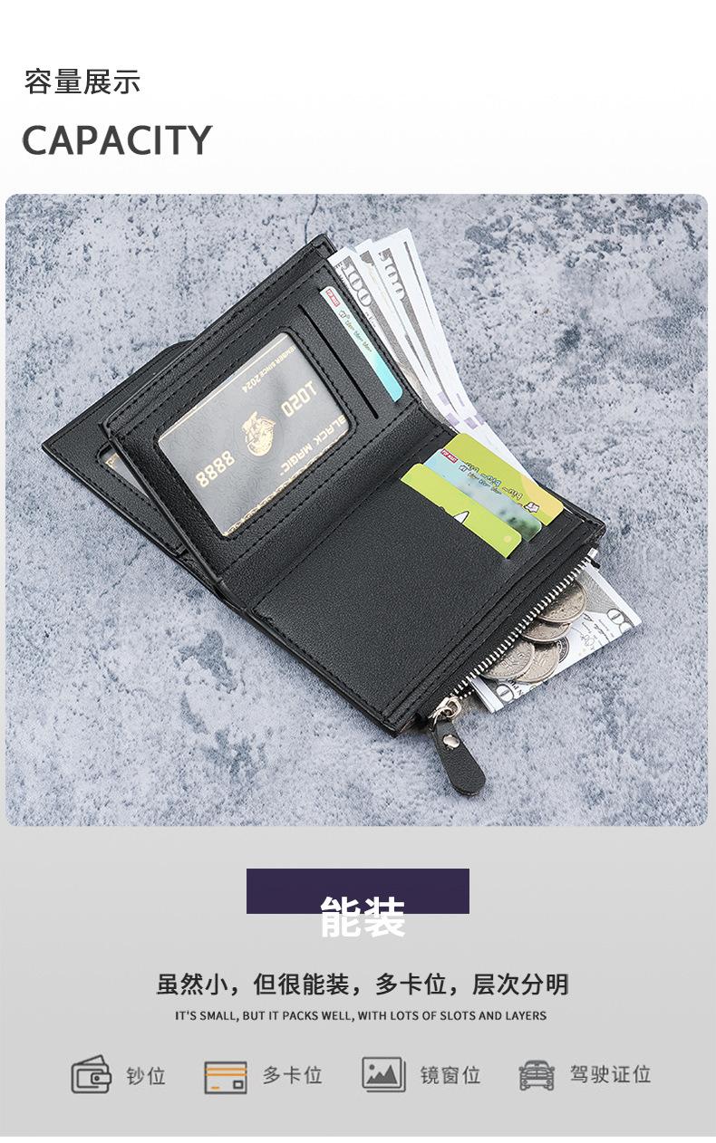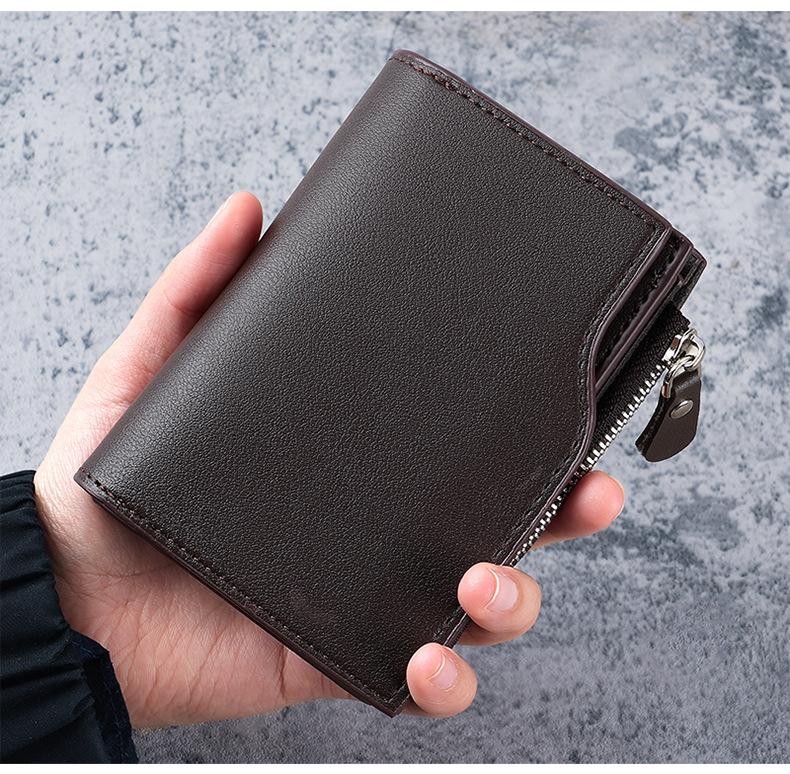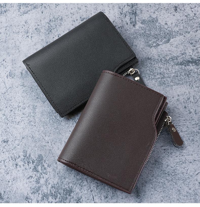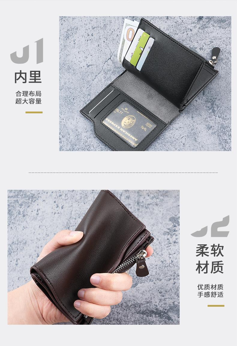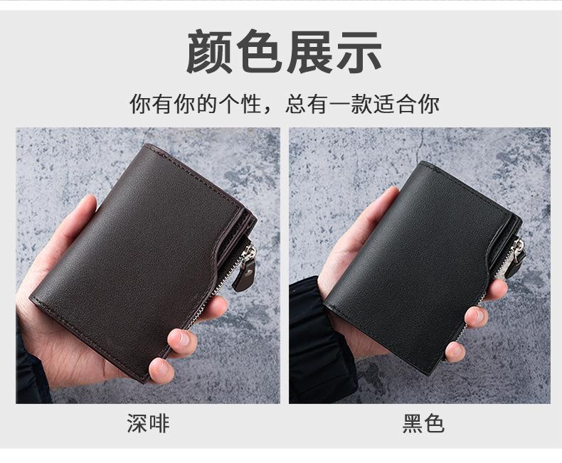 Cartera corta para hombre transfronteriza europea y americana, nueva cartera para hombre, cartera multitarjeta triple para hombre, monedero con cremallera para hombre