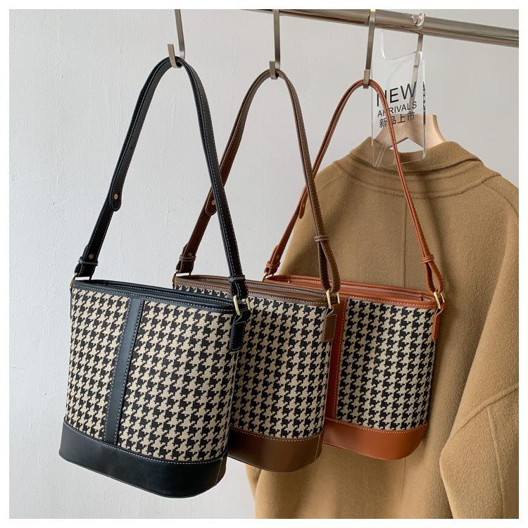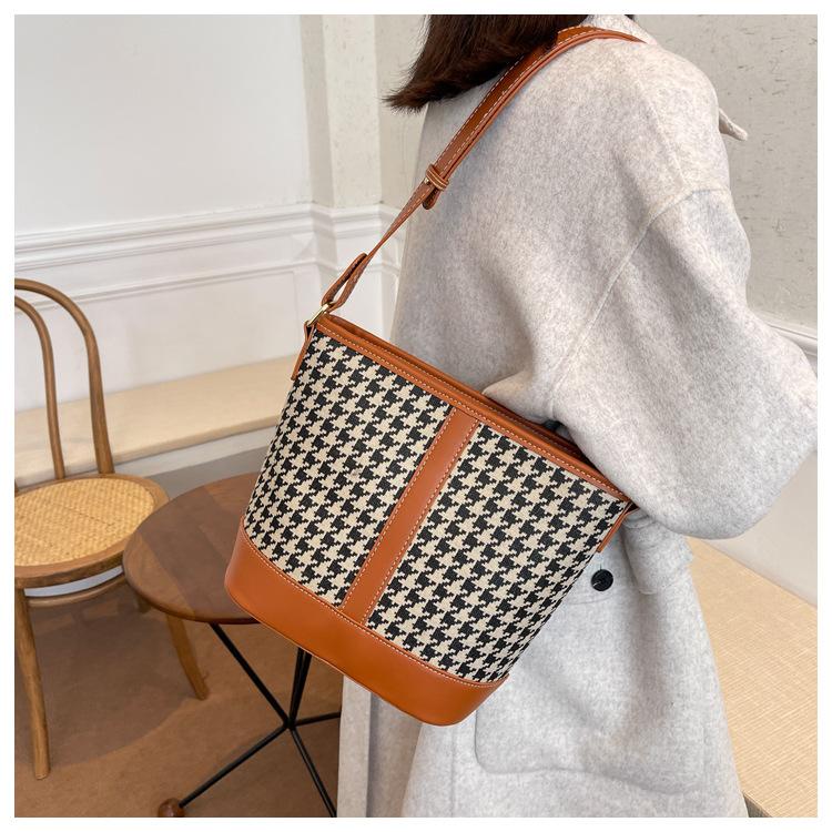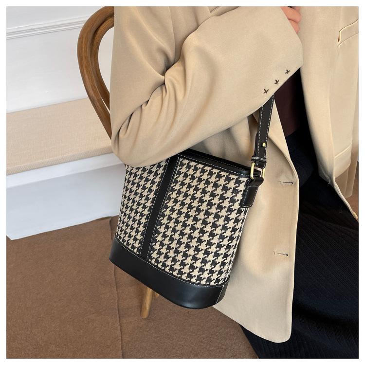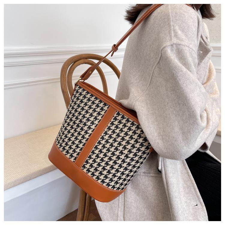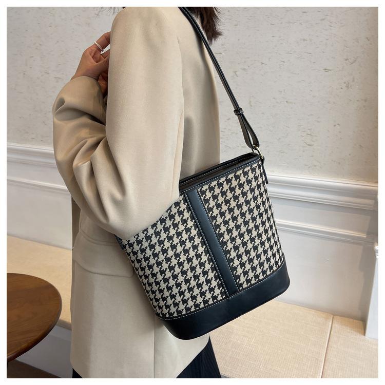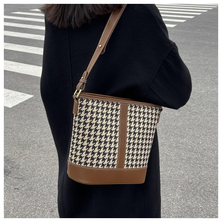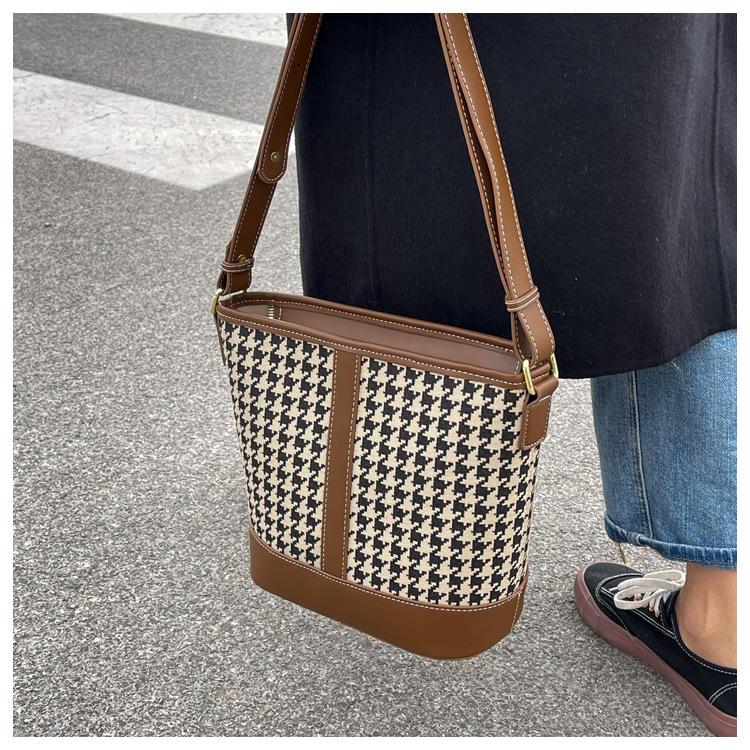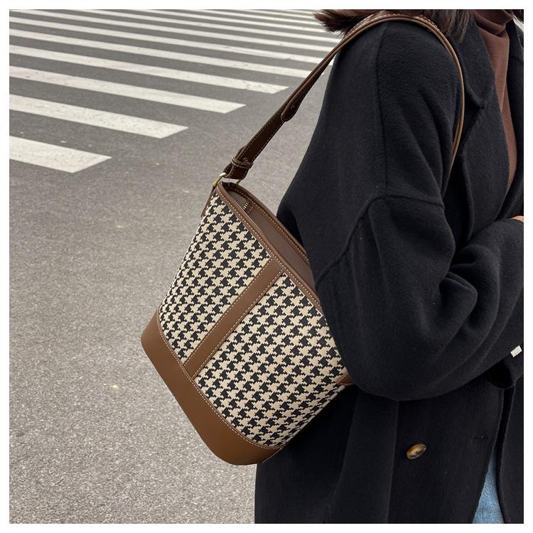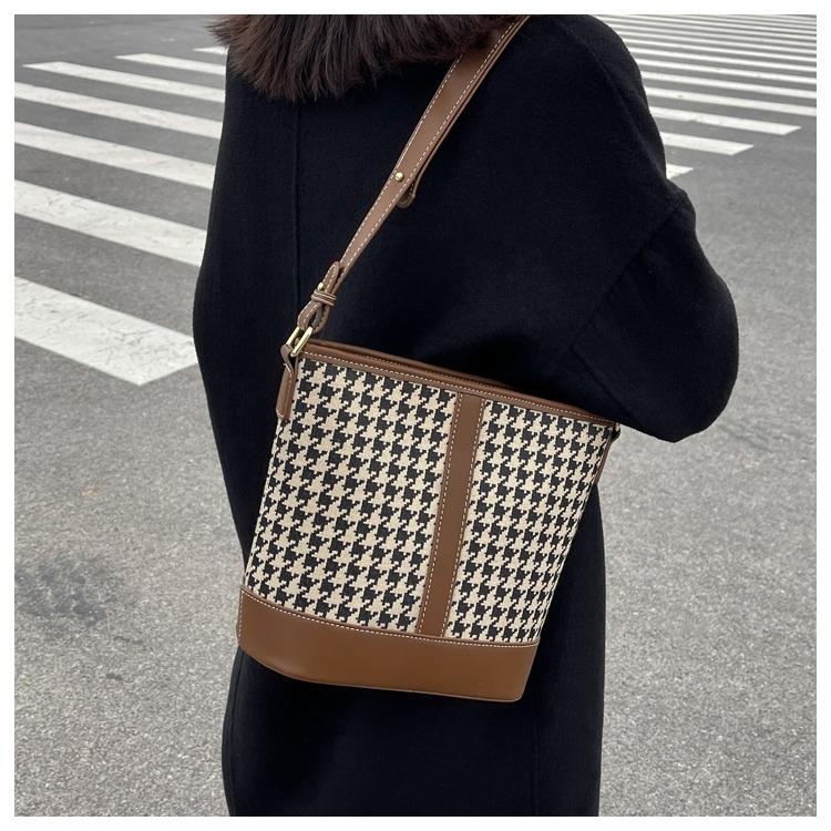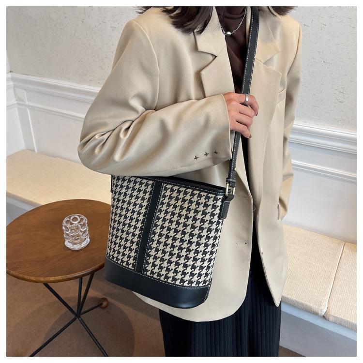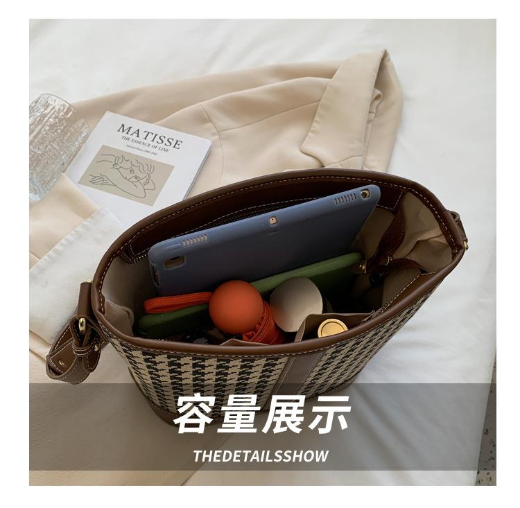 Bolso Grande Retro Bandolera Mujer 2024 Invierno Nueva Moda Bolso Balde de Gran Capacidad Diseño Nicho Bolso Trama a la Moda