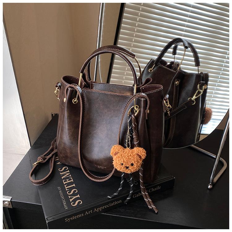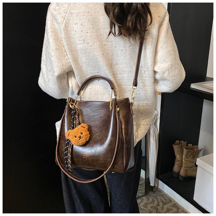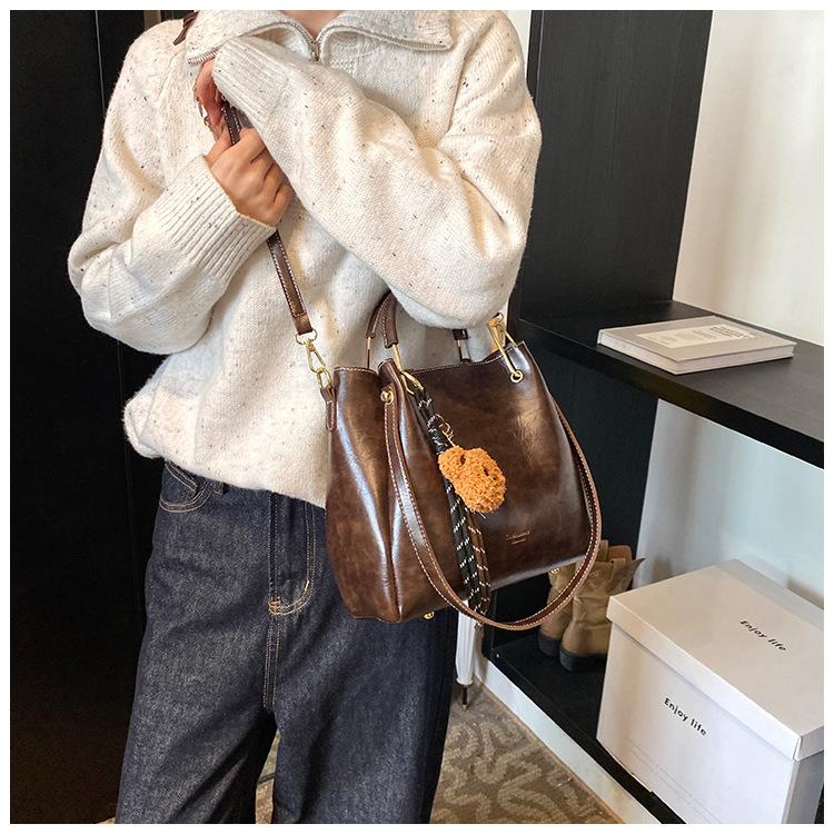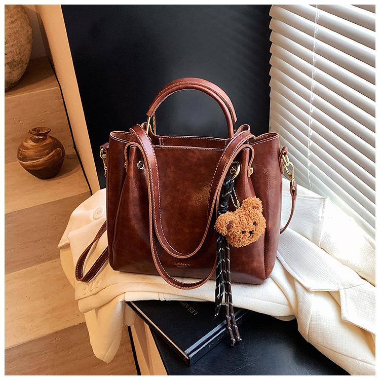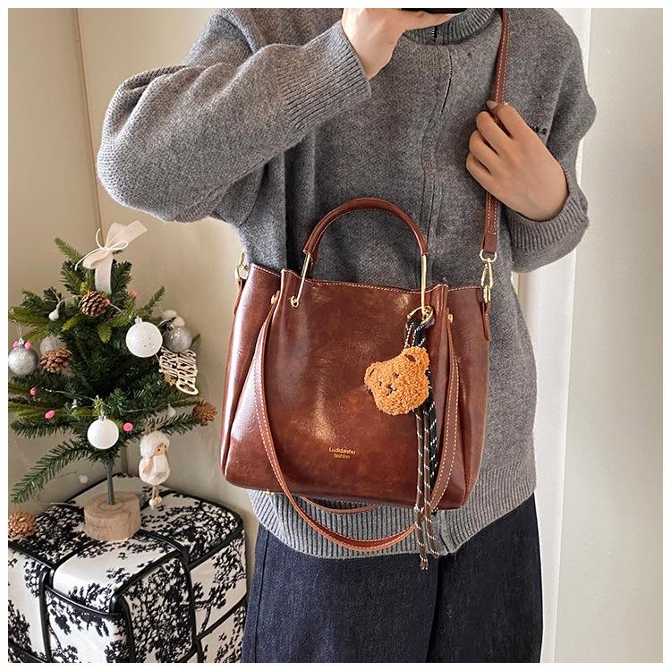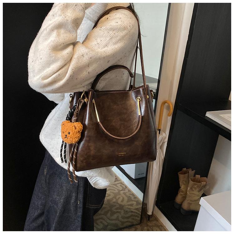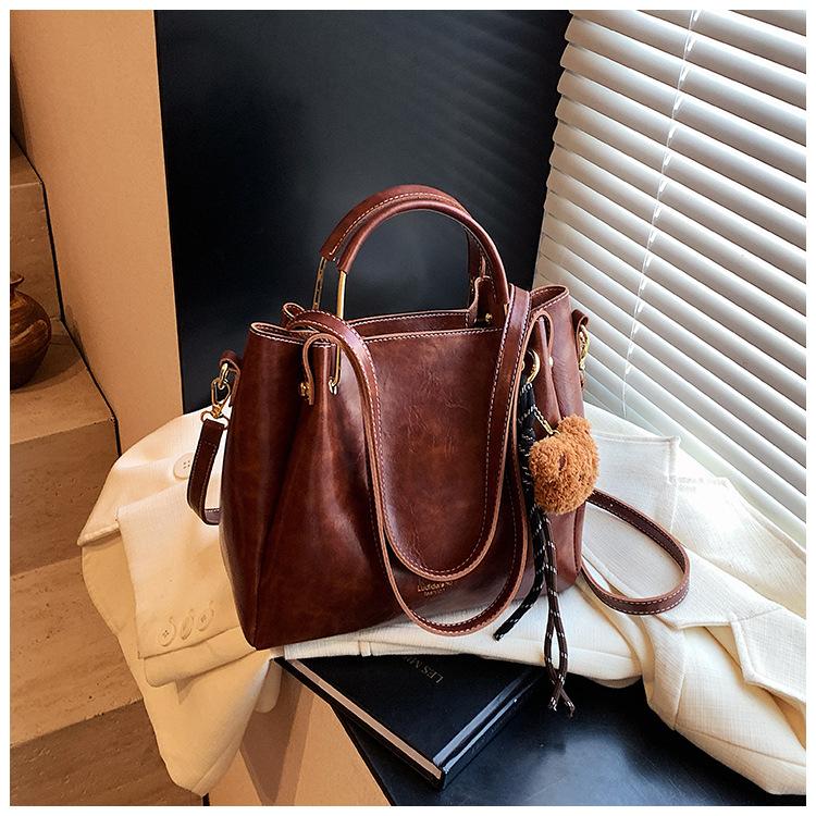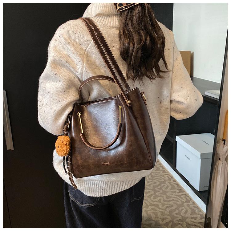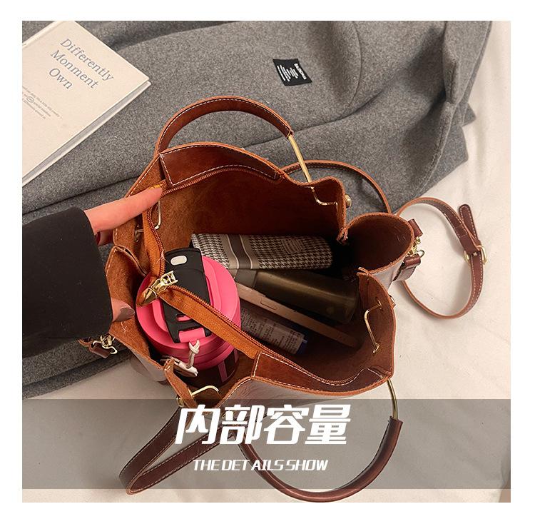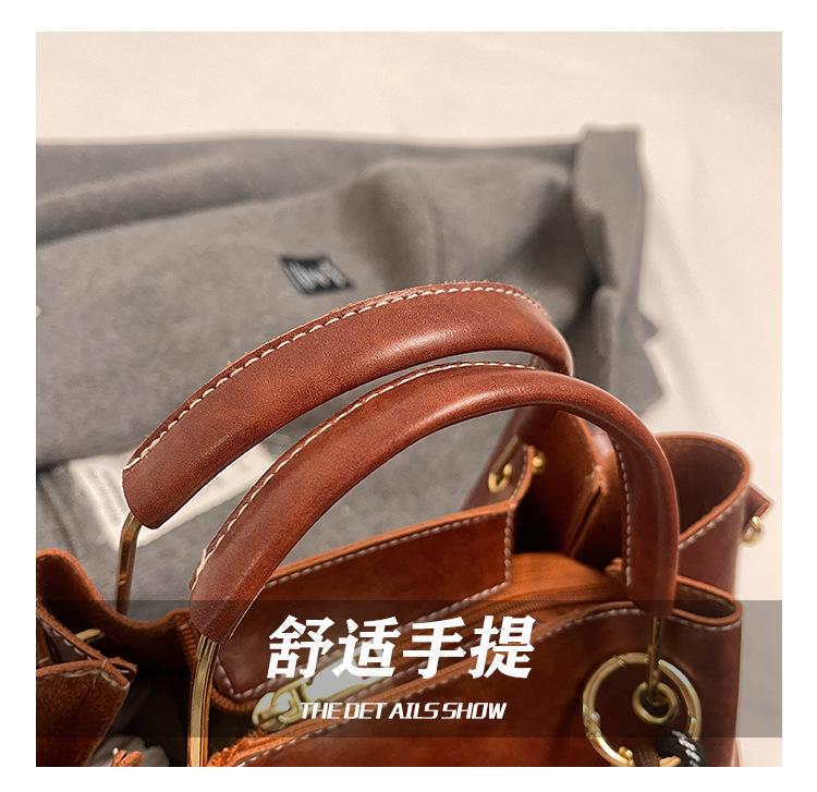 Bolso de mano portátil de gran capacidad retro transfronterizo para mujer, nuevo bolso de moda combinable, bolso bandolera informal tipo cubo 2024