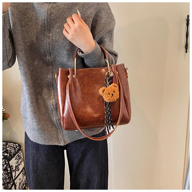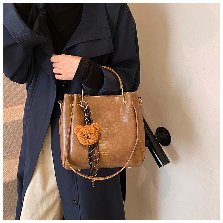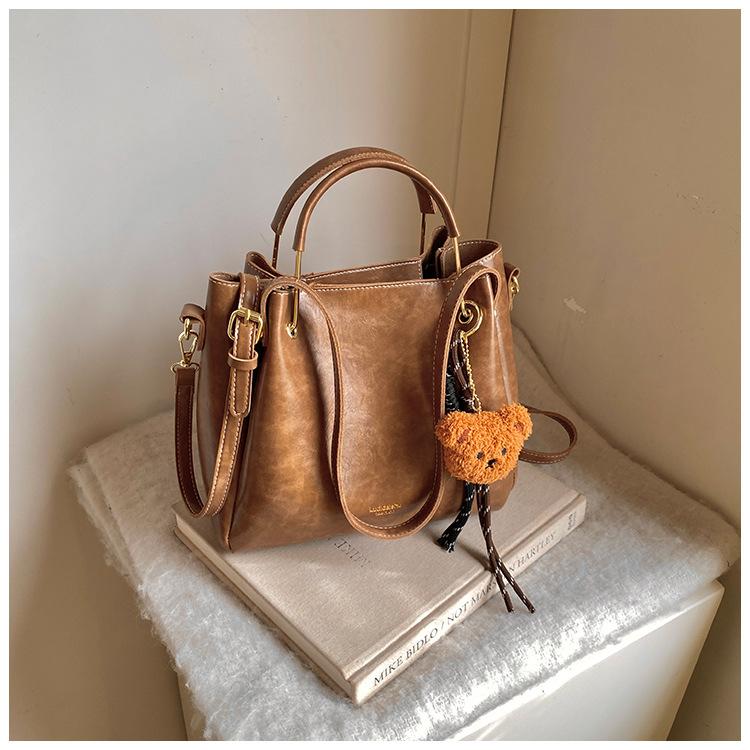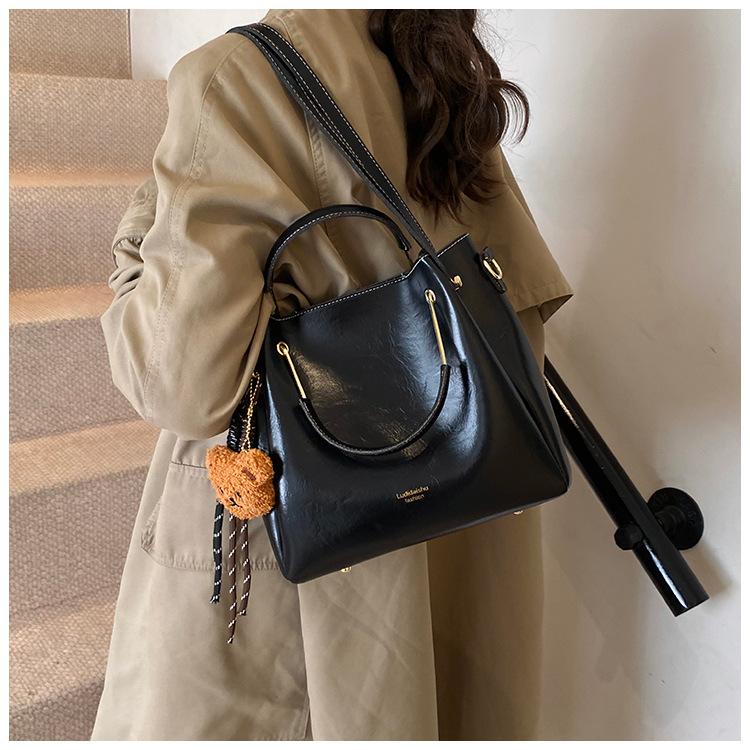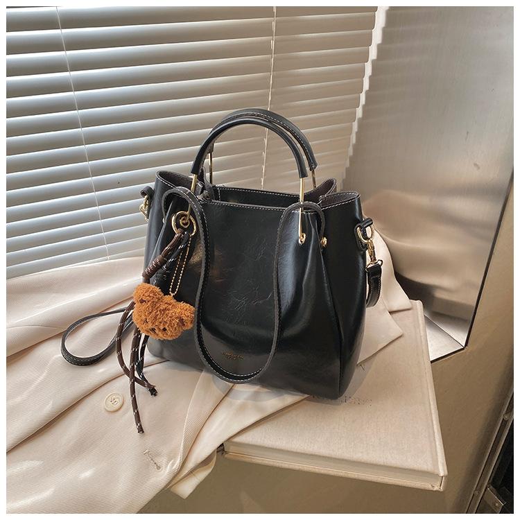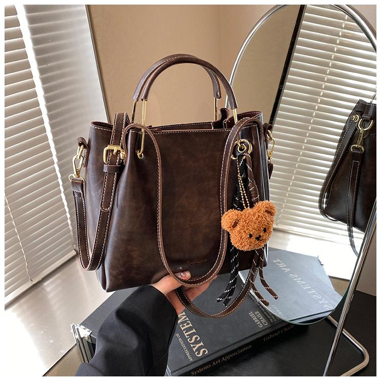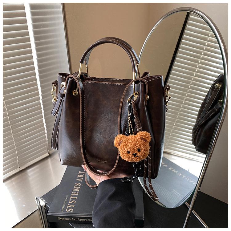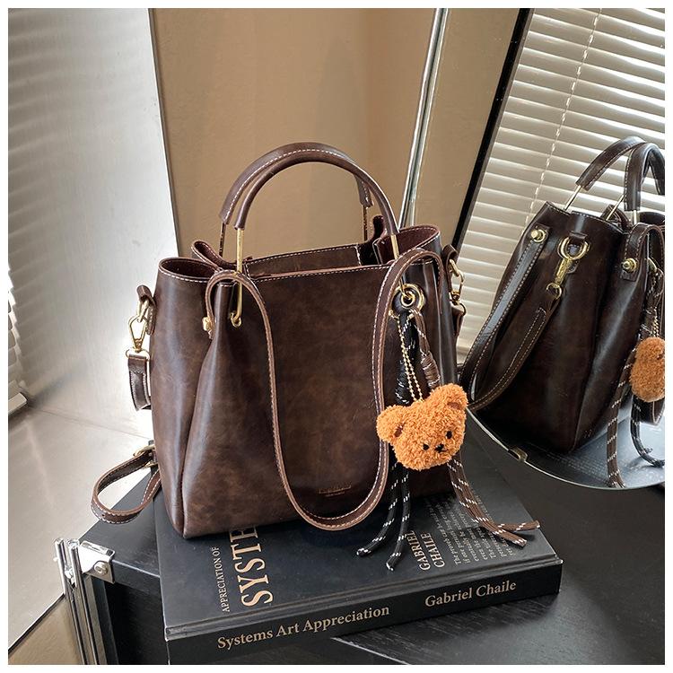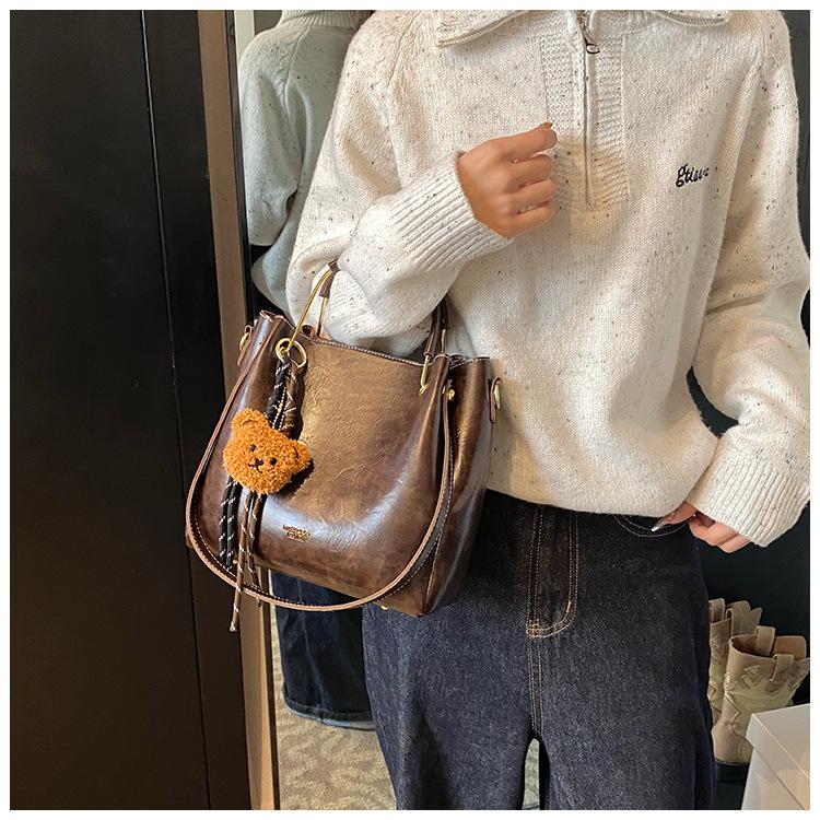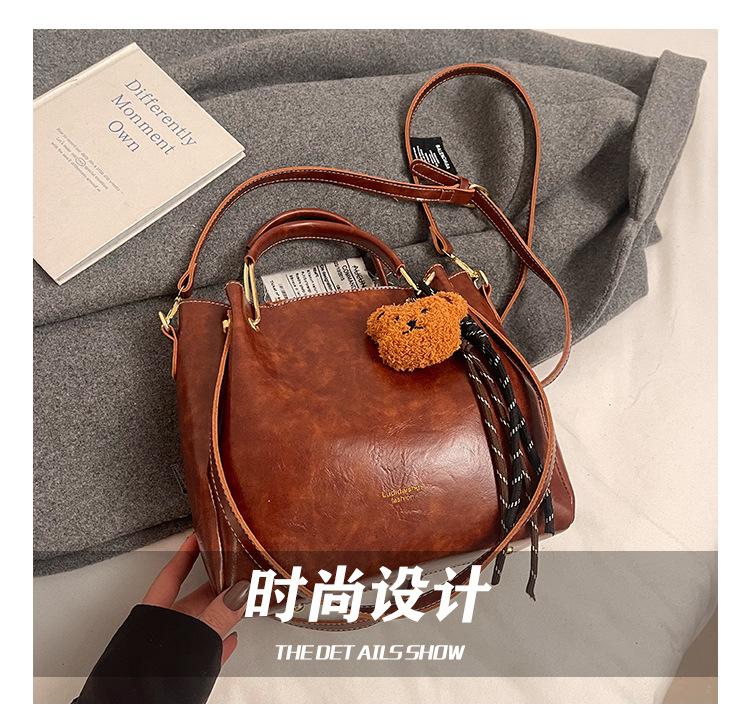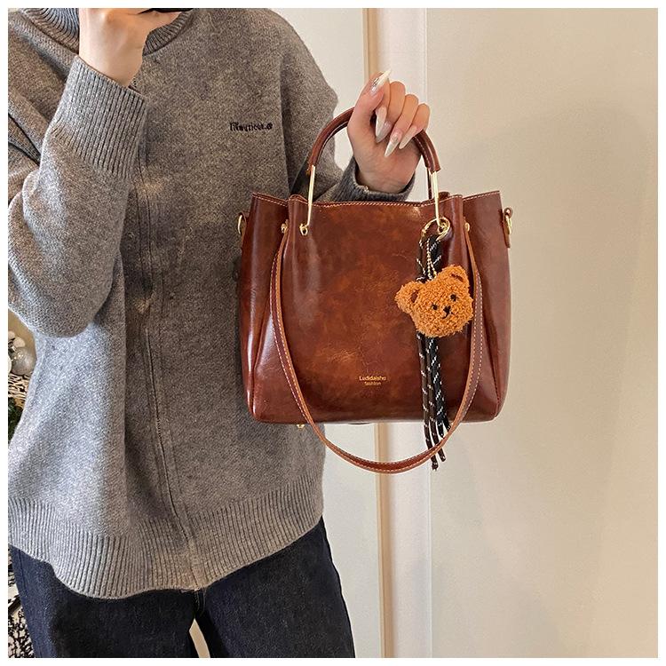Bolso de mano portátil de gran capacidad retro transfronterizo para mujer, nuevo bolso de moda combinable, bolso bandolera informal tipo cubo 2024