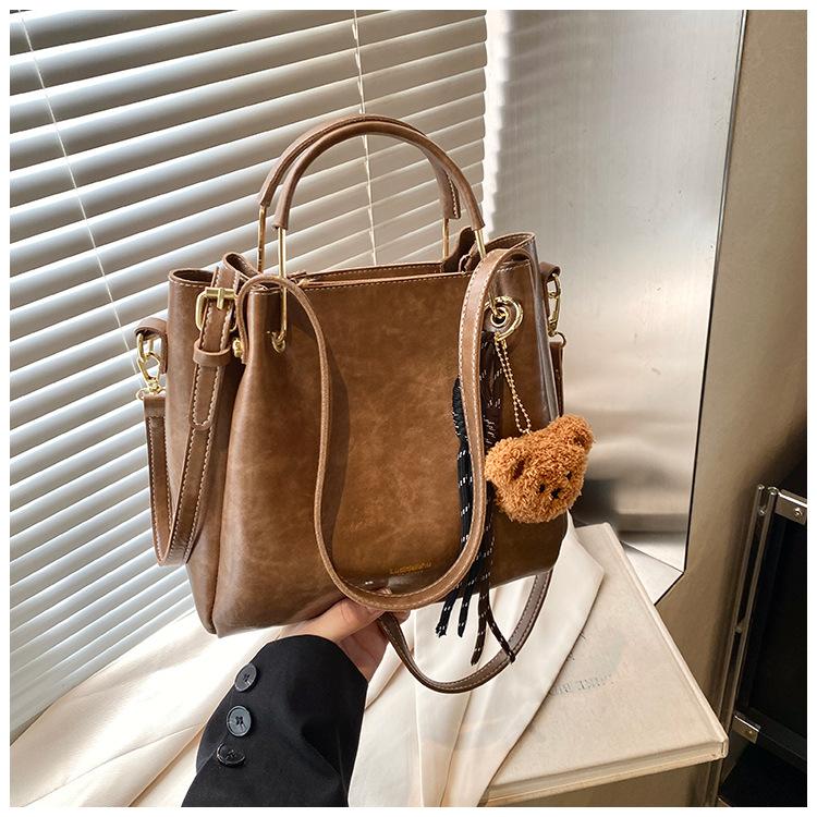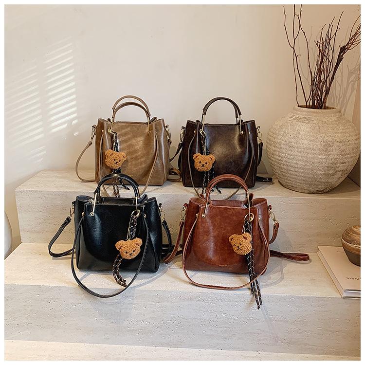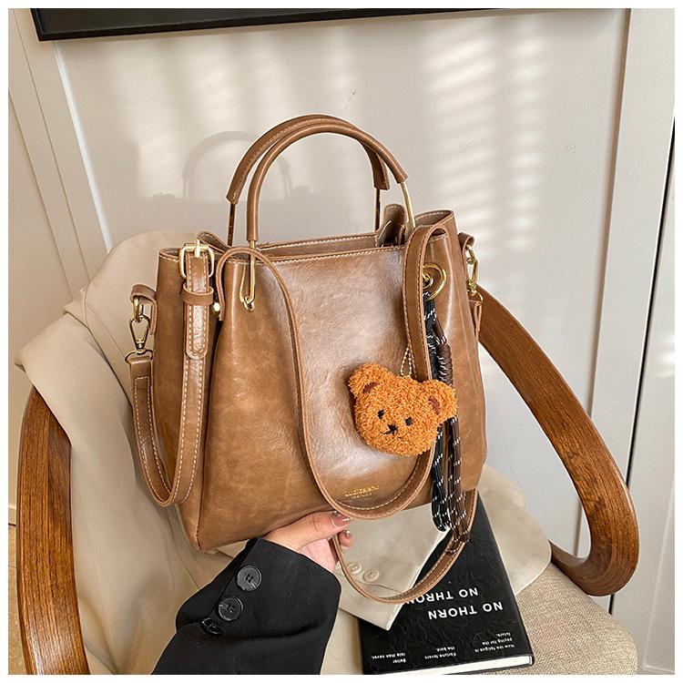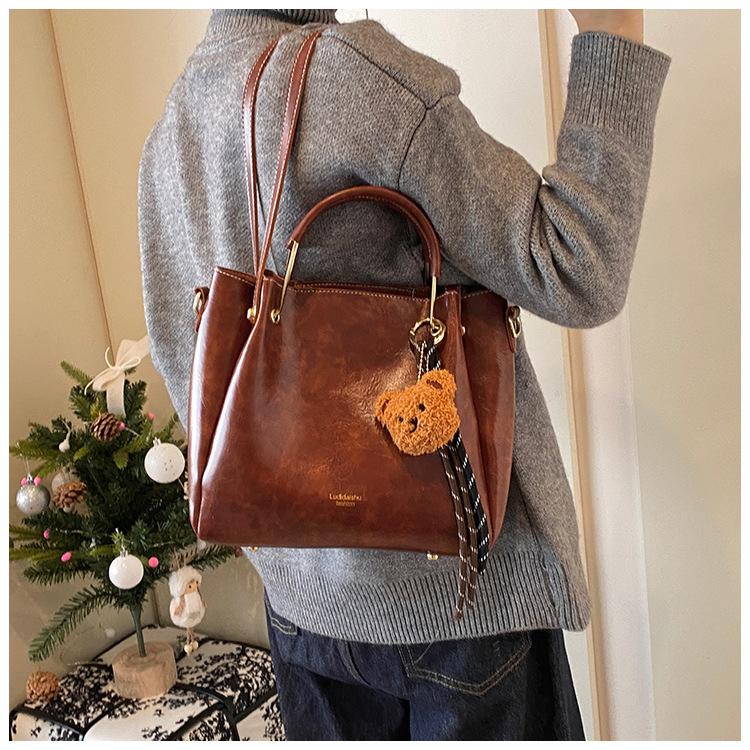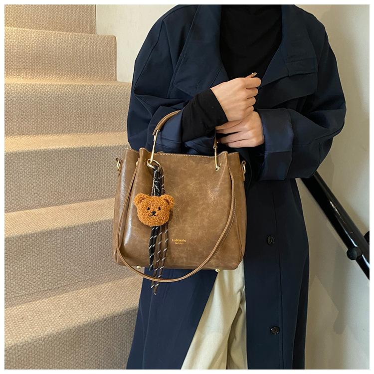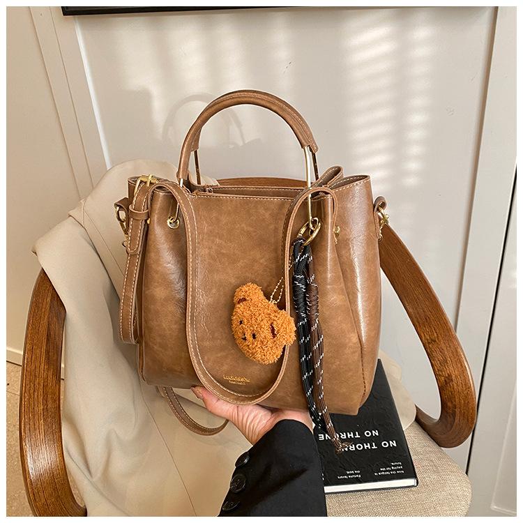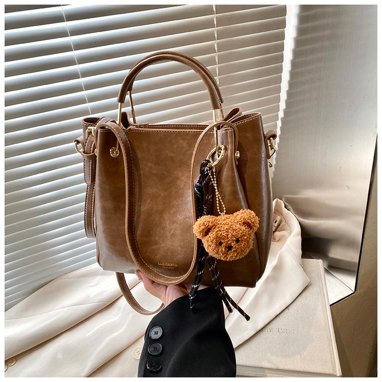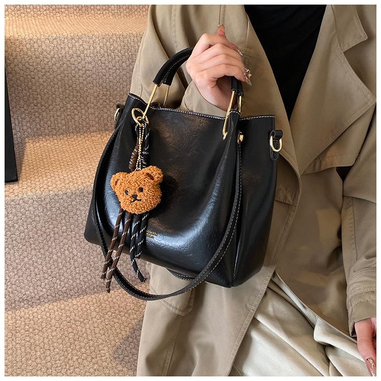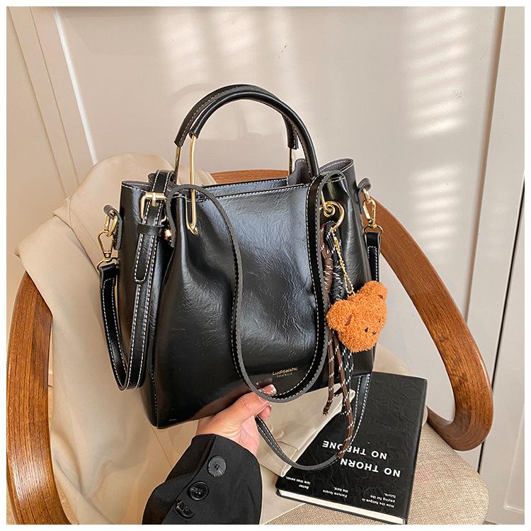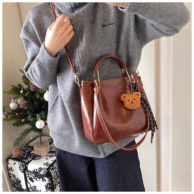Bolso de mano portátil de gran capacidad retro transfronterizo para mujer, nuevo bolso de moda combinable, bolso bandolera informal tipo cubo 2024