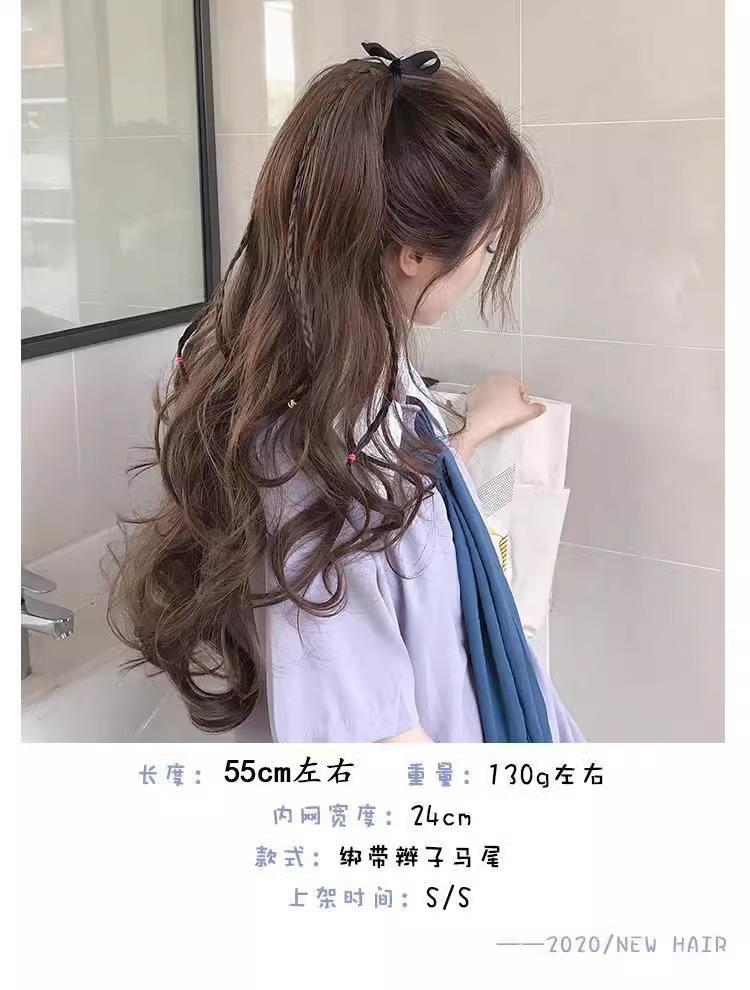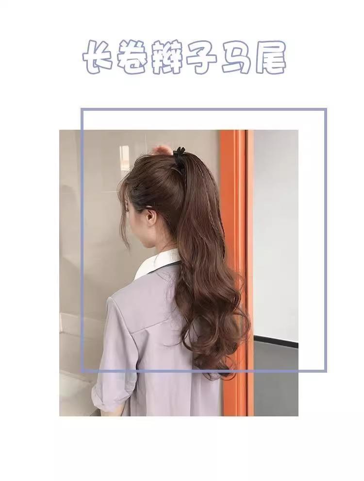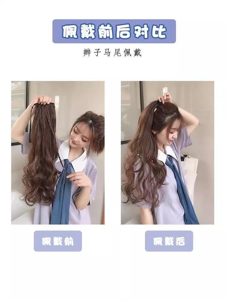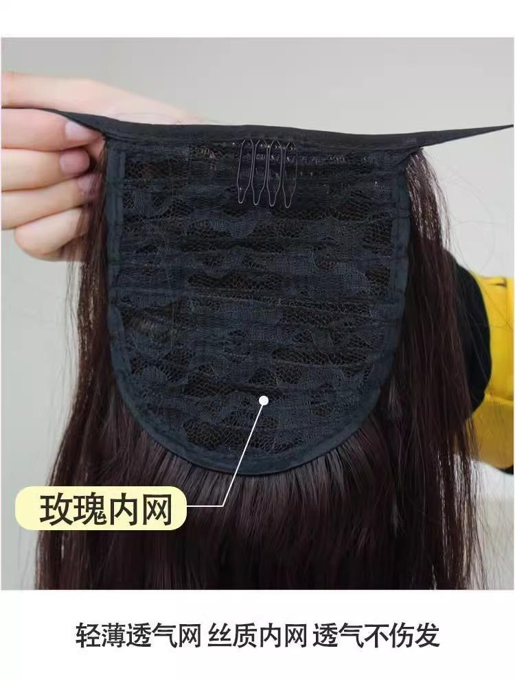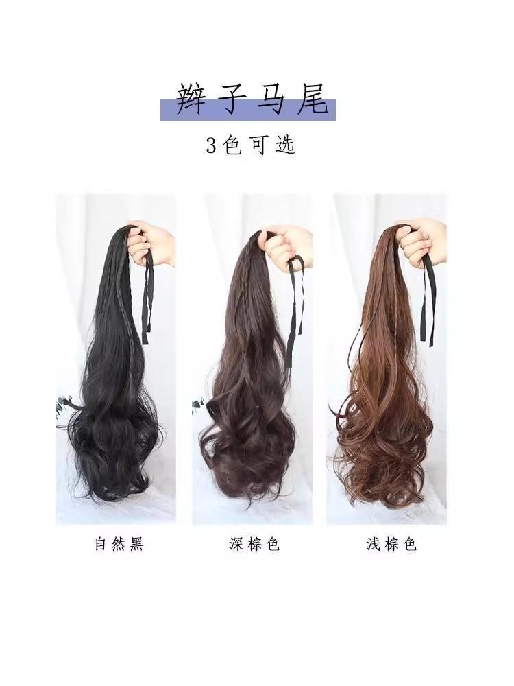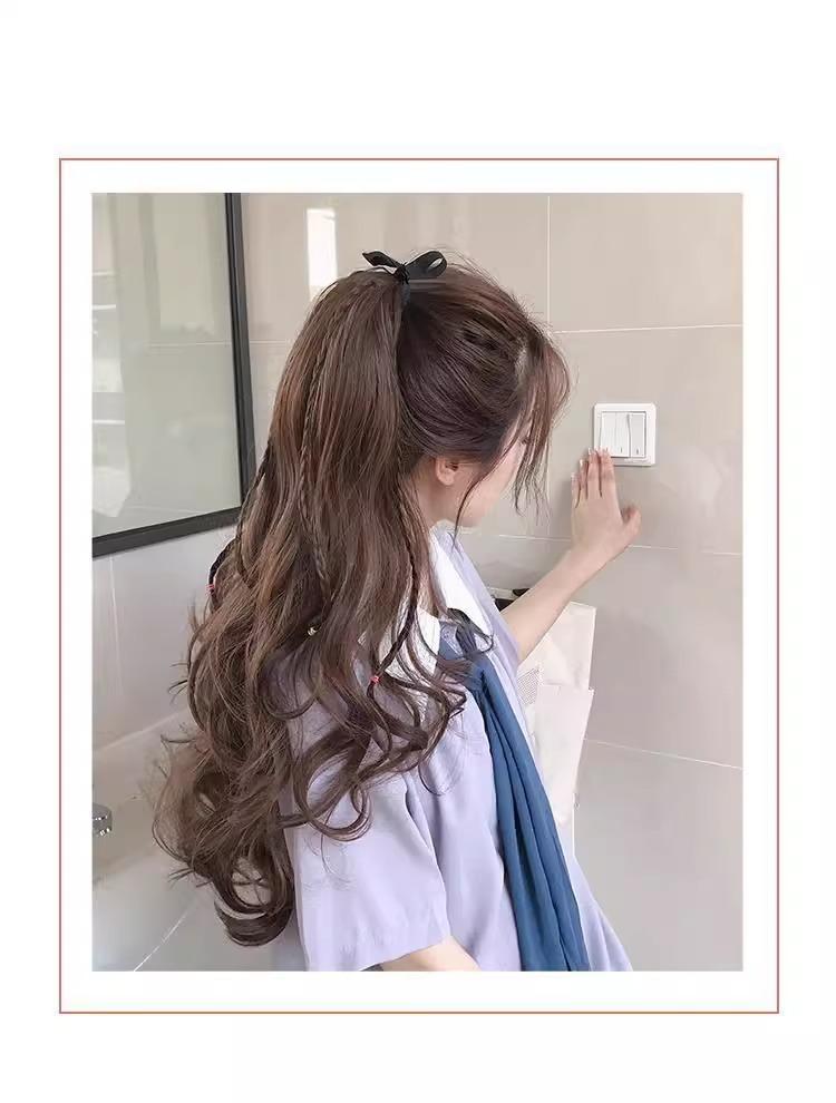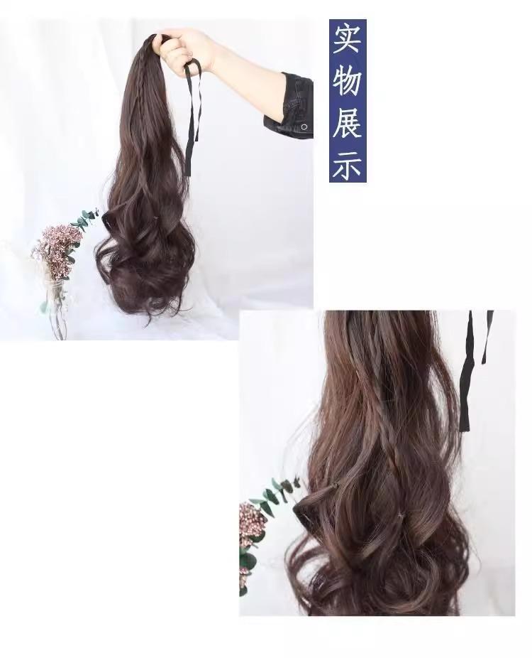 Peluca de cola de caballo falsa de pelo largo tipo lazo para mujer, temperamento femenino, cabello largo y rizado, trenza natural, realista y sin marcas.