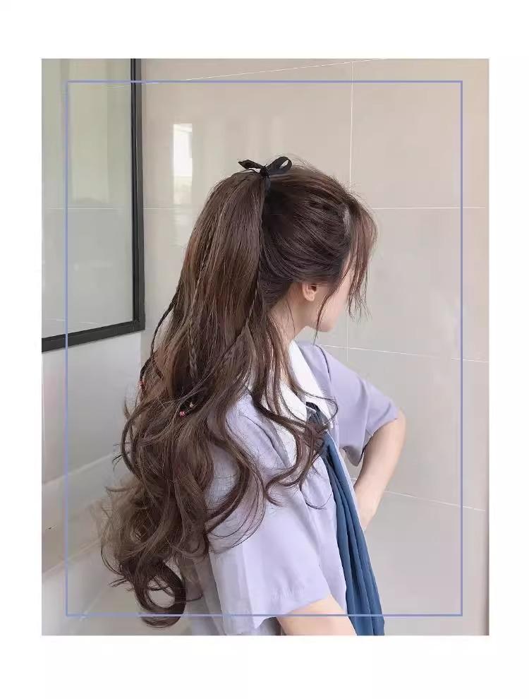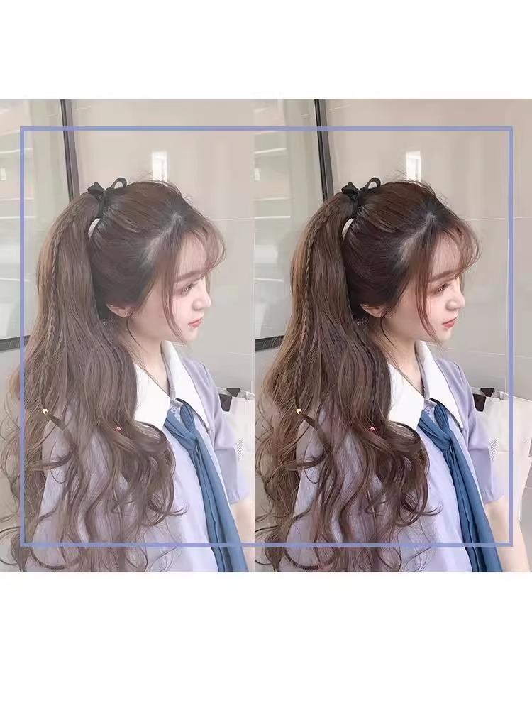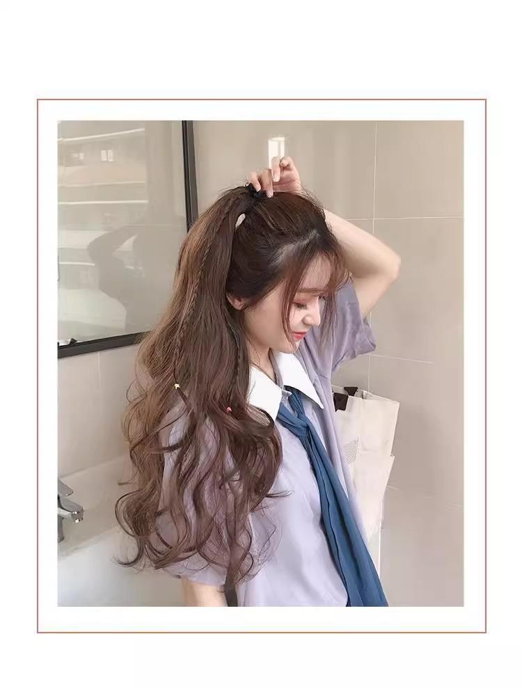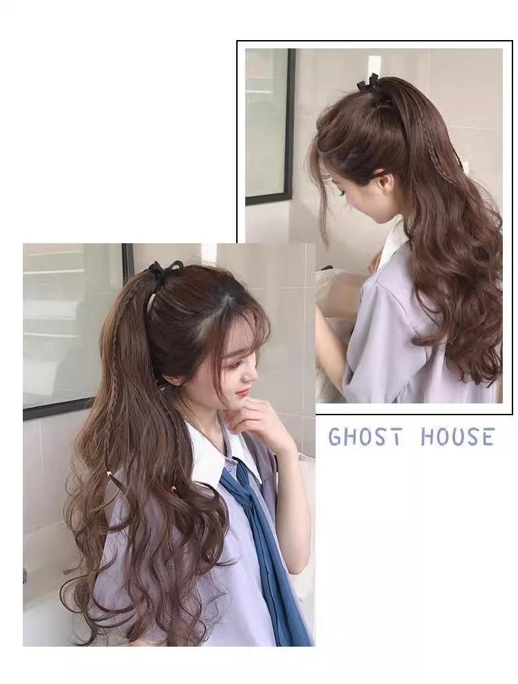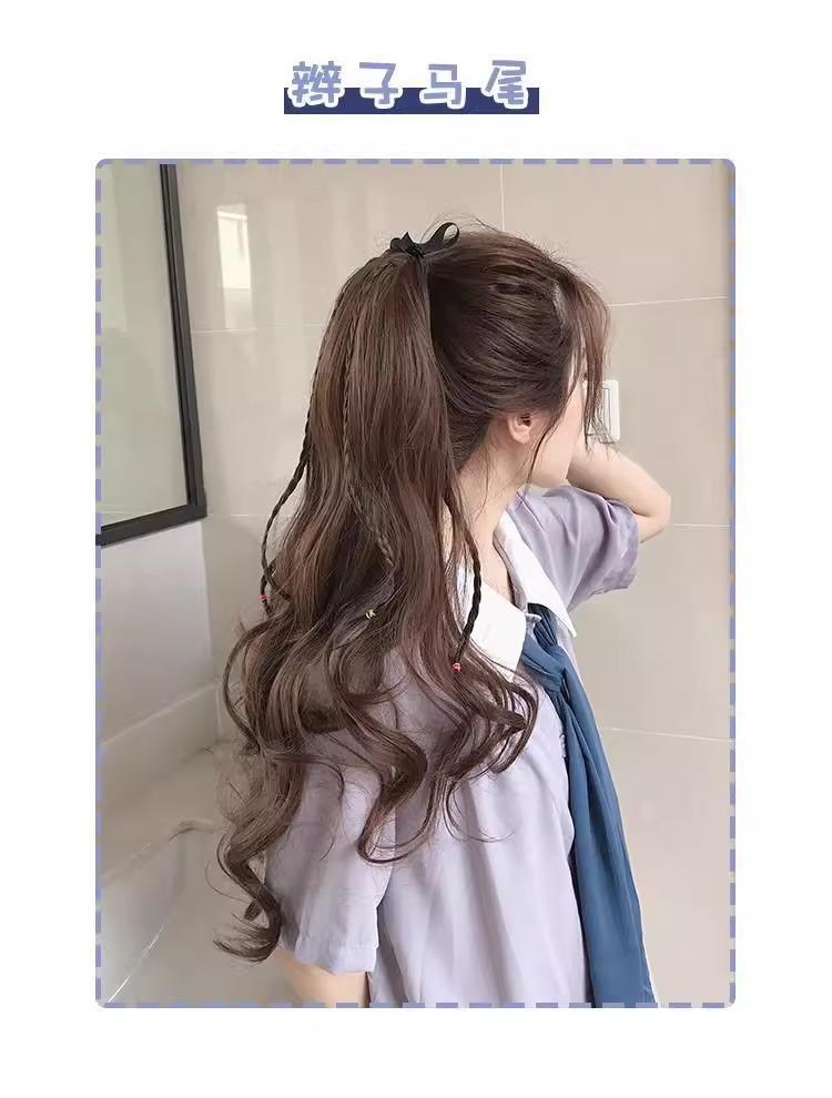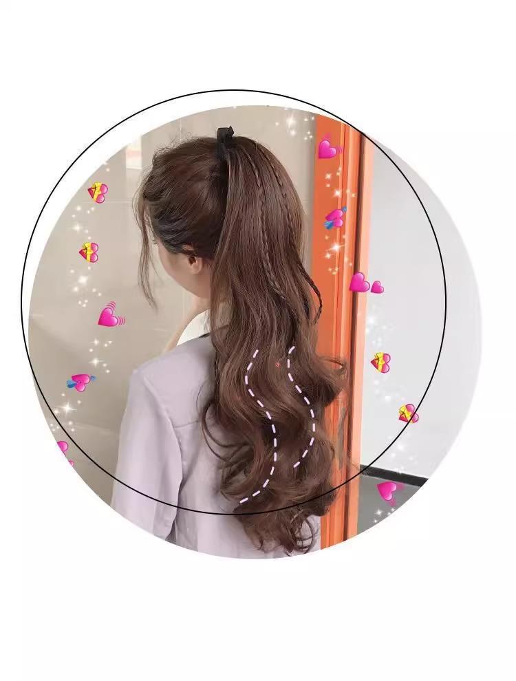 Peluca de cola de caballo falsa de pelo largo tipo lazo para mujer, temperamento femenino, cabello largo y rizado, trenza natural, realista y sin marcas.