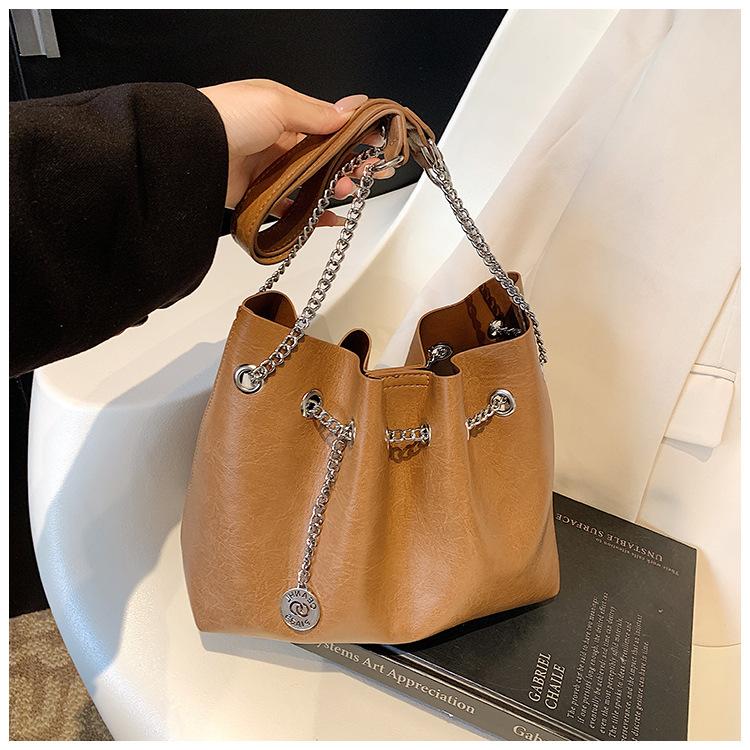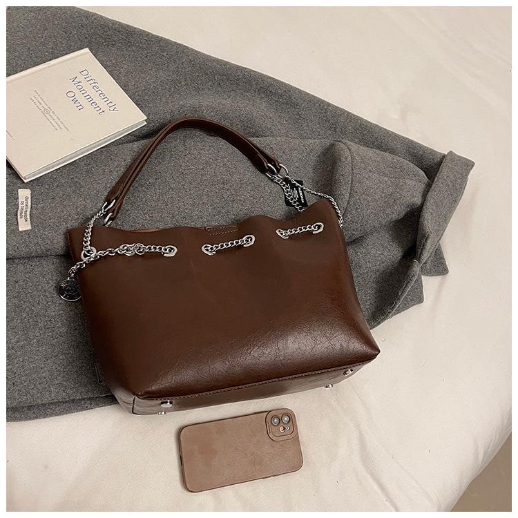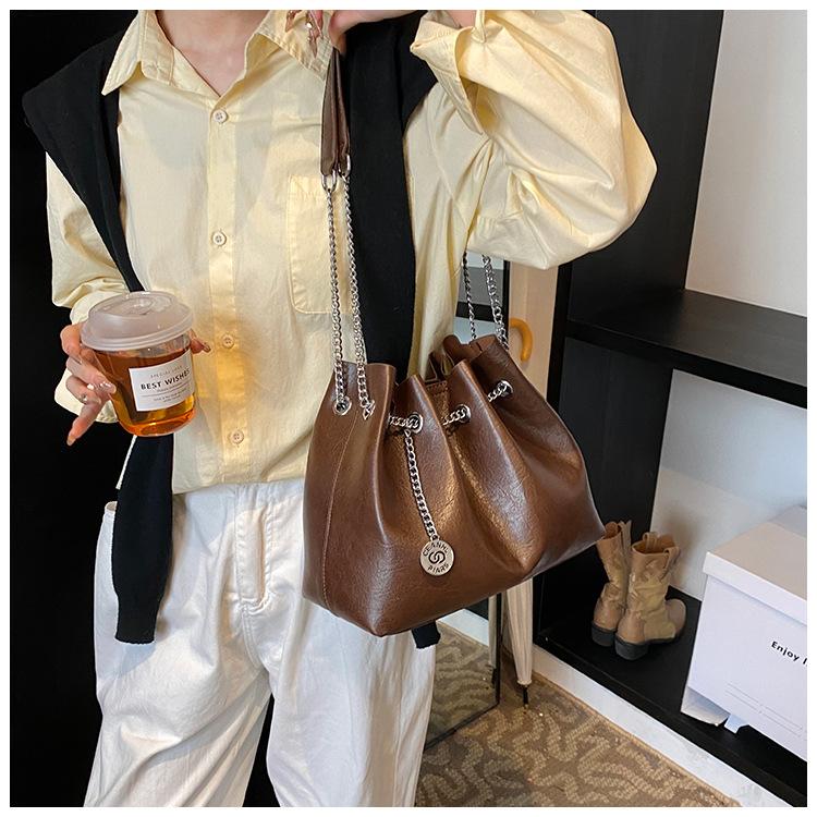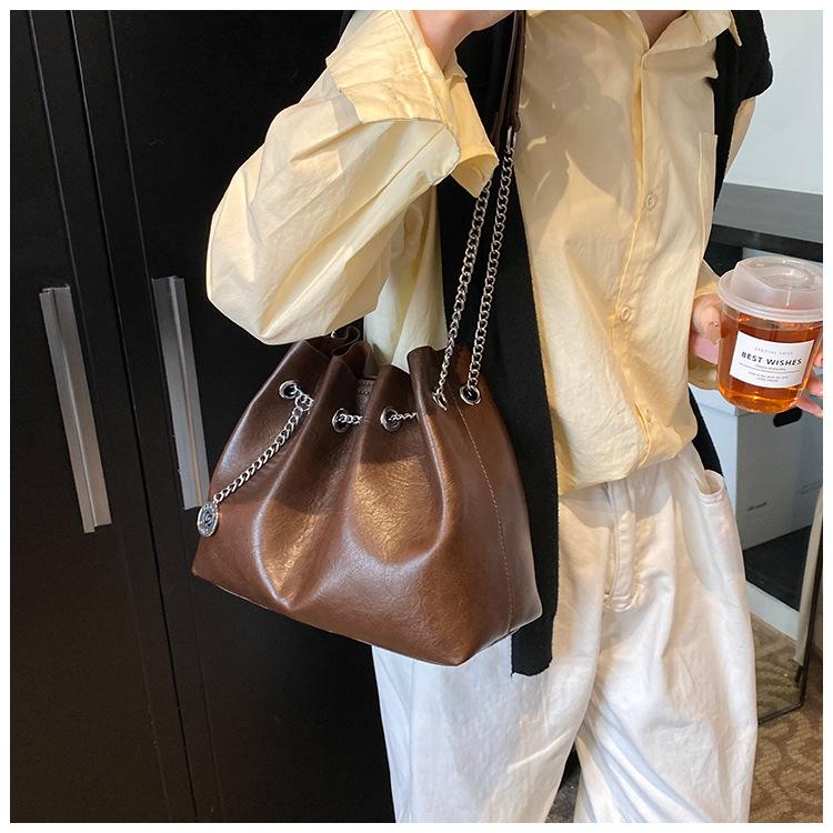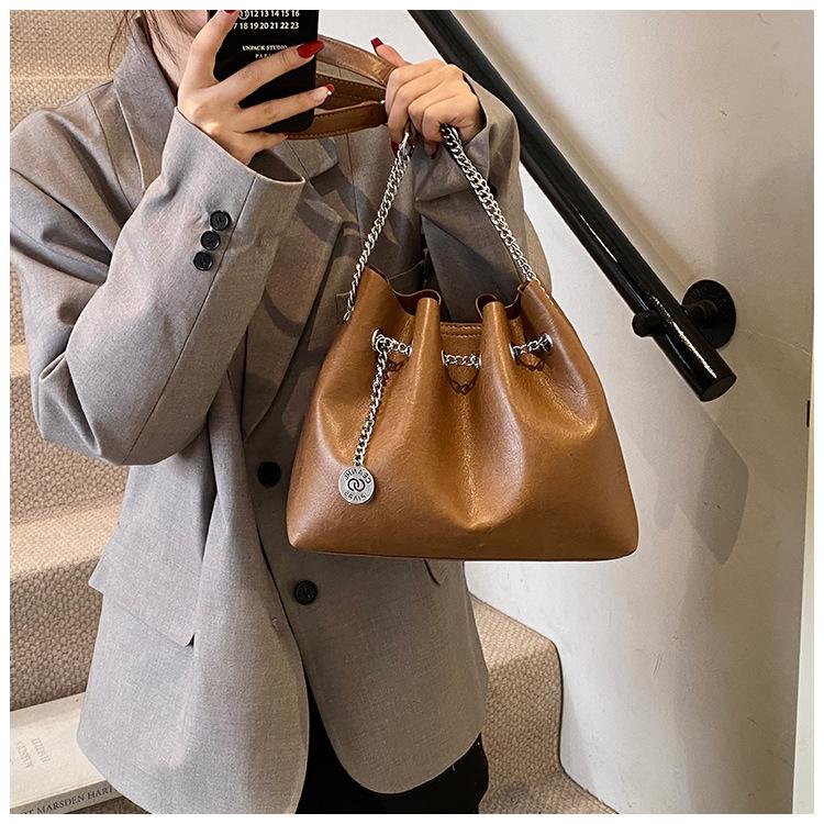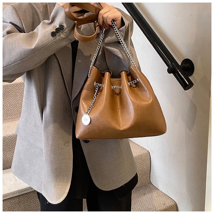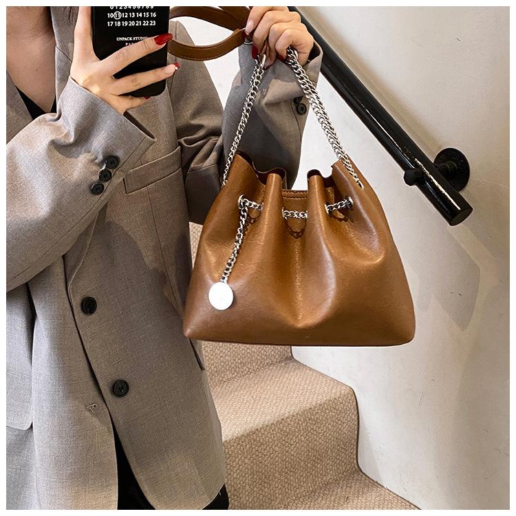 Bolso de Mano de Cuero Suave 2025 Nuevo Bolso de Mujer Simple Retro Pequeño Bolso de Cuero Bolso de Cosméticos de Moda Bolso Bandolera de Cadena de Color Puro