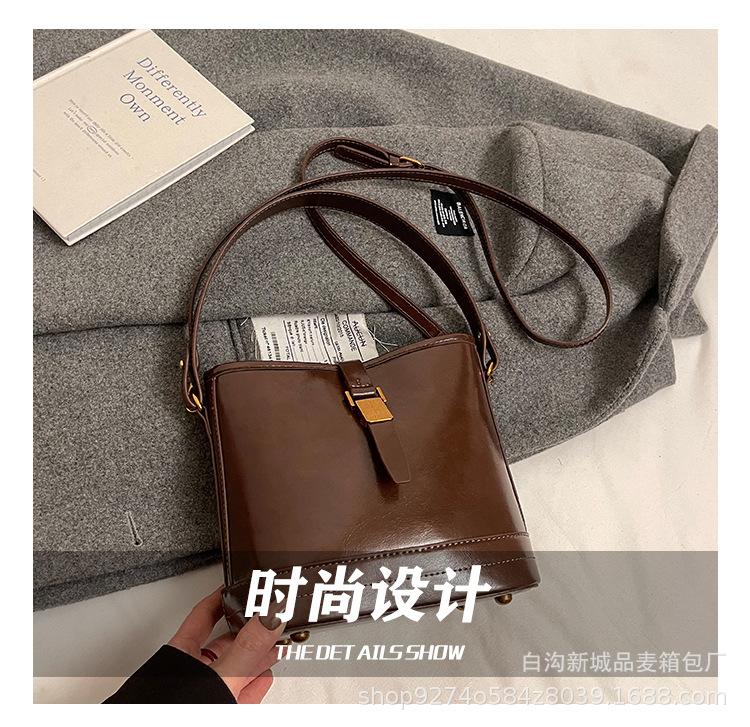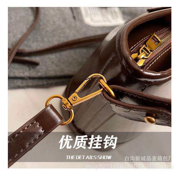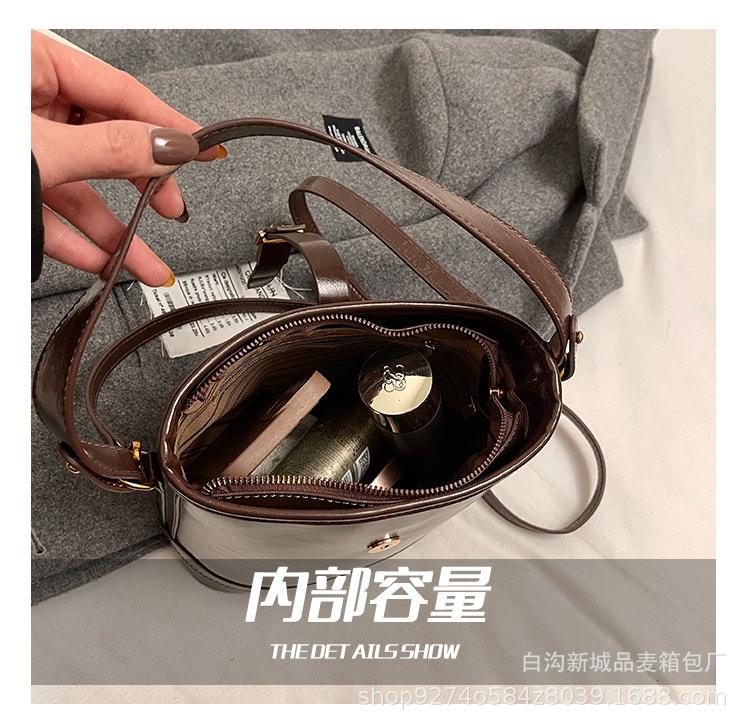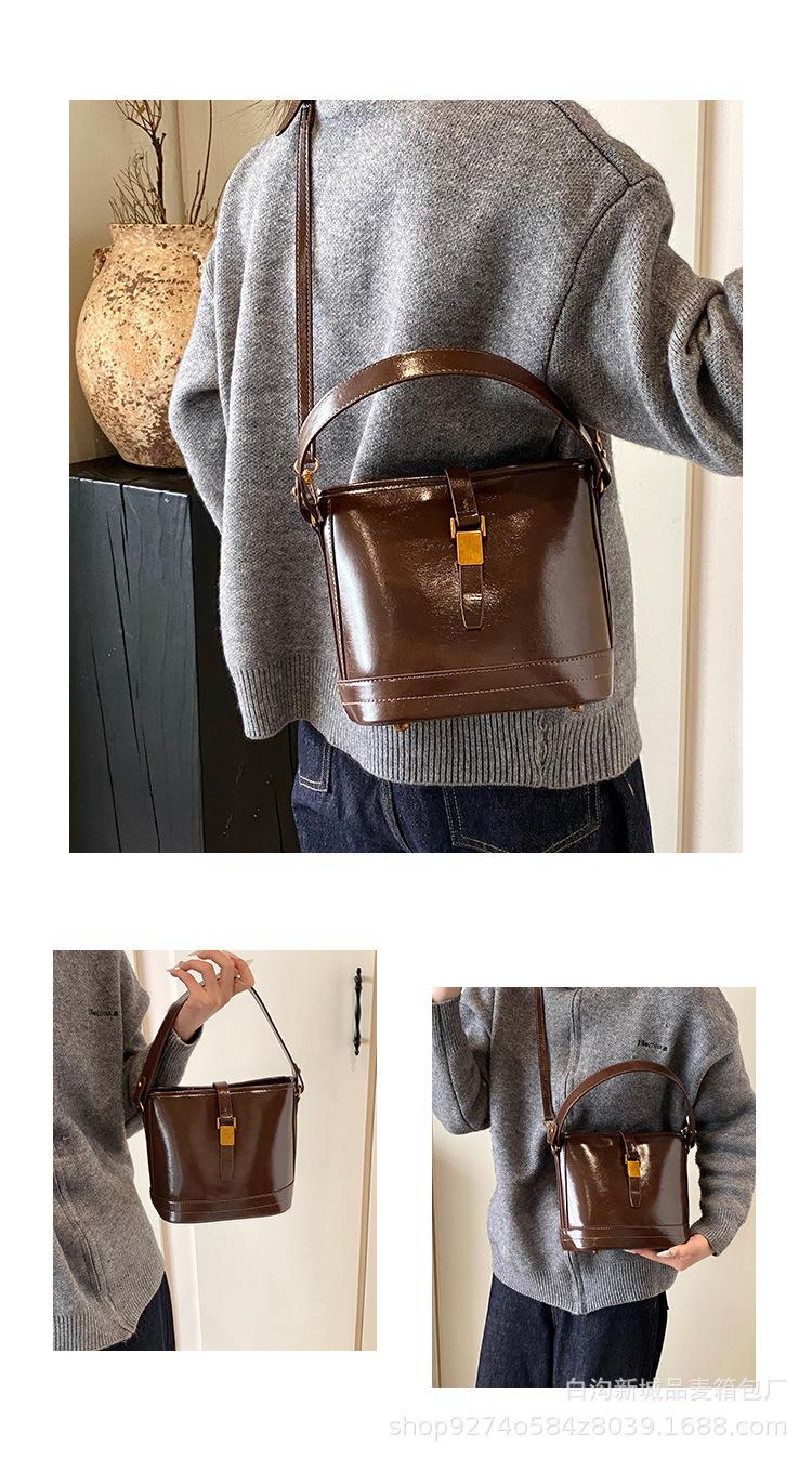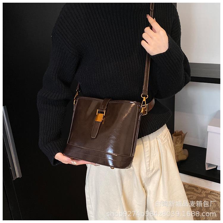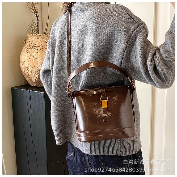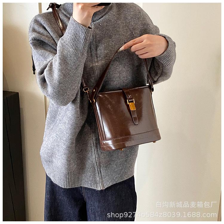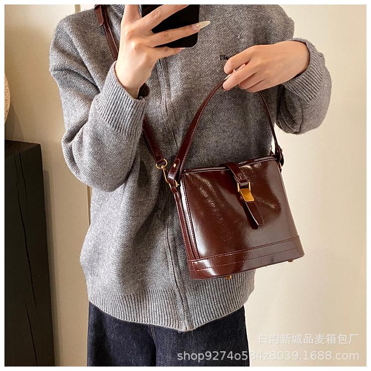 Bolso pequeño retro de alta gama para mujer, nuevo bolso cruzado combinable para otoño e invierno de 2024, bolso de cubo portátil súper moderno y de moda.