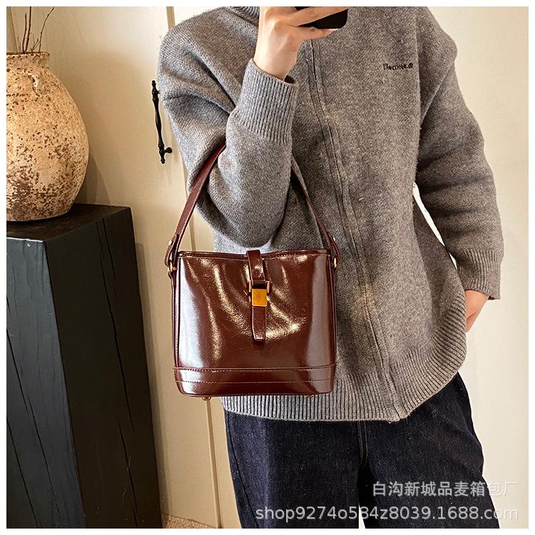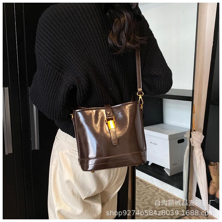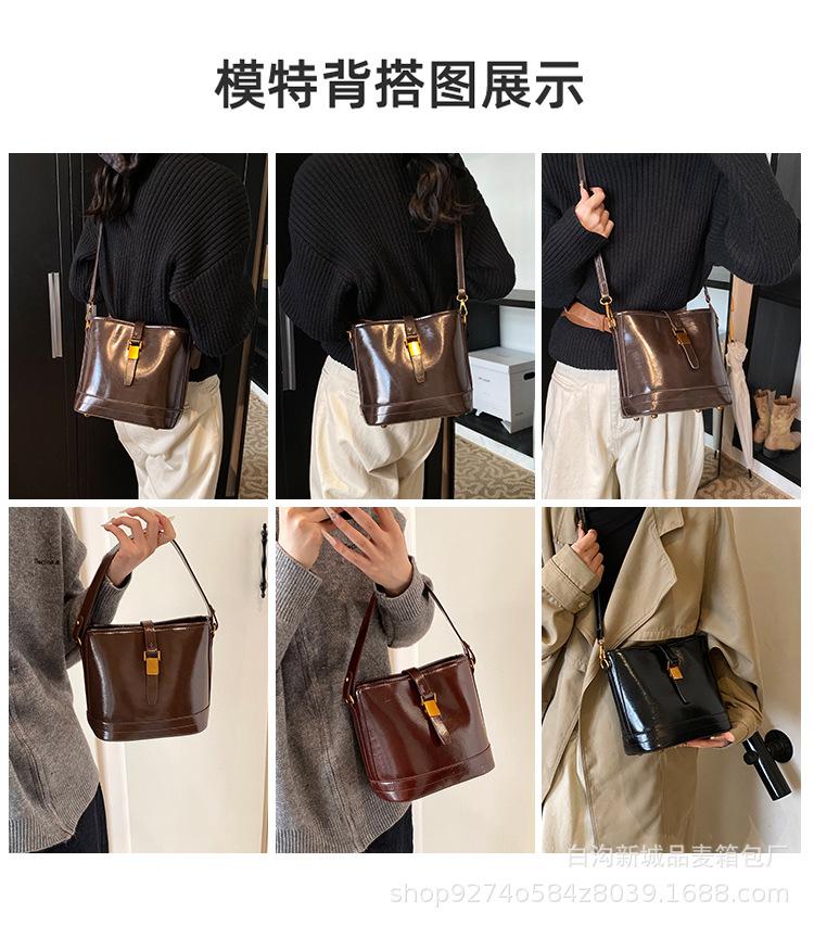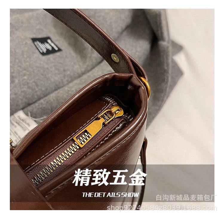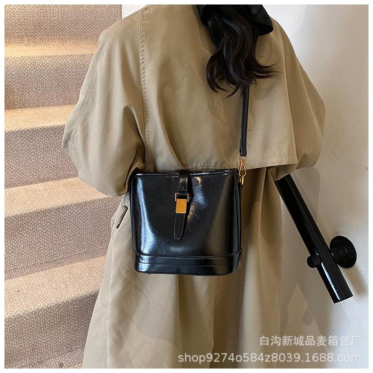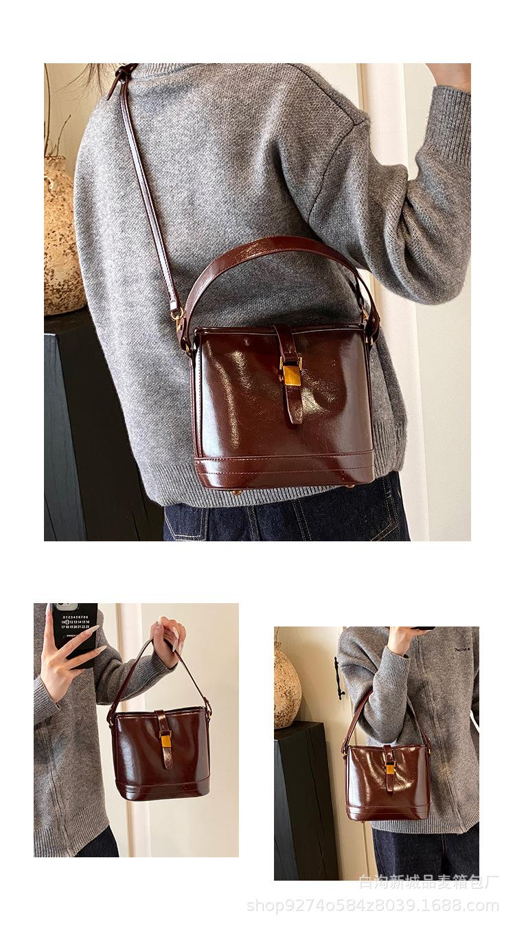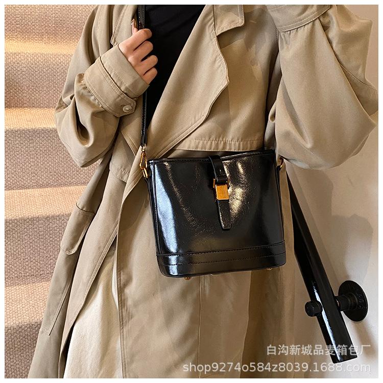 Bolso pequeño retro de alta gama para mujer, nuevo bolso cruzado combinable para otoño e invierno de 2024, bolso de cubo portátil súper moderno y de moda.