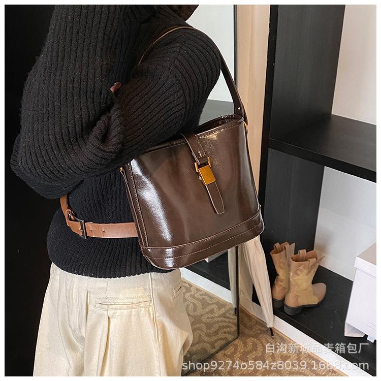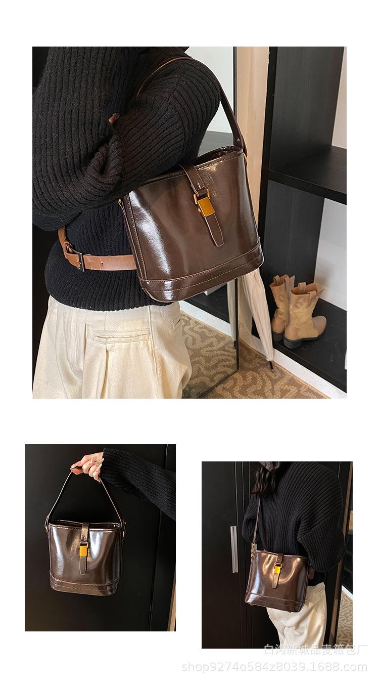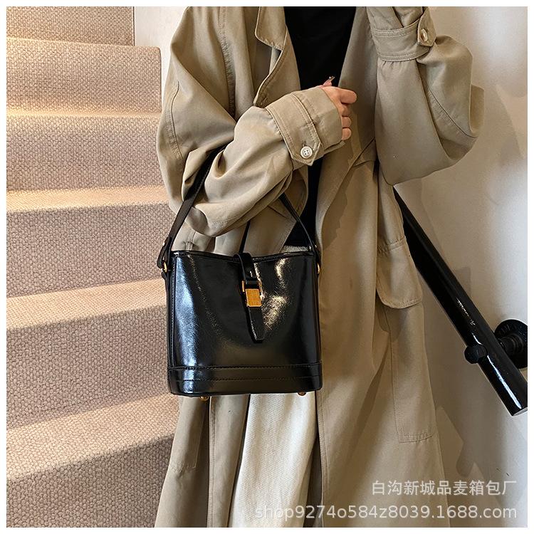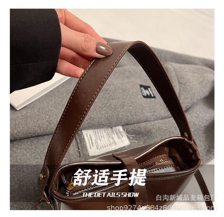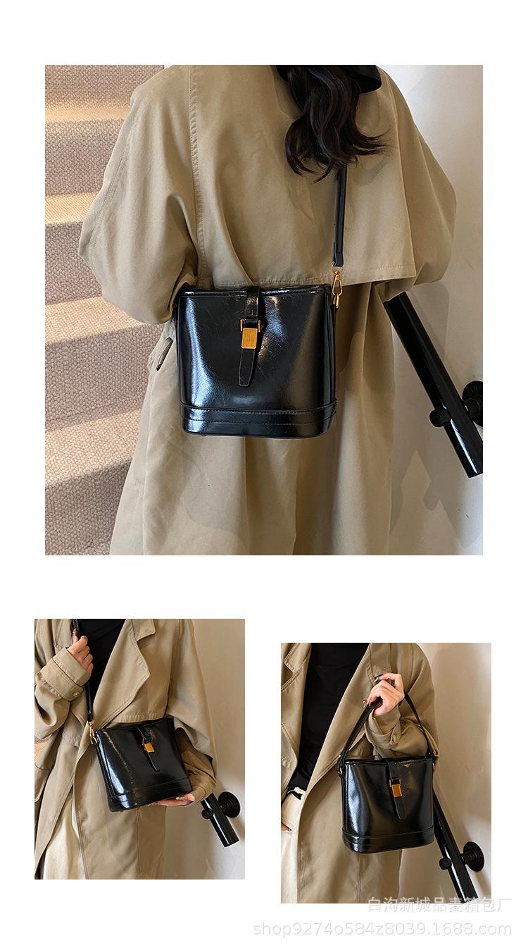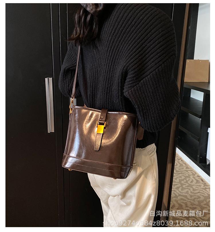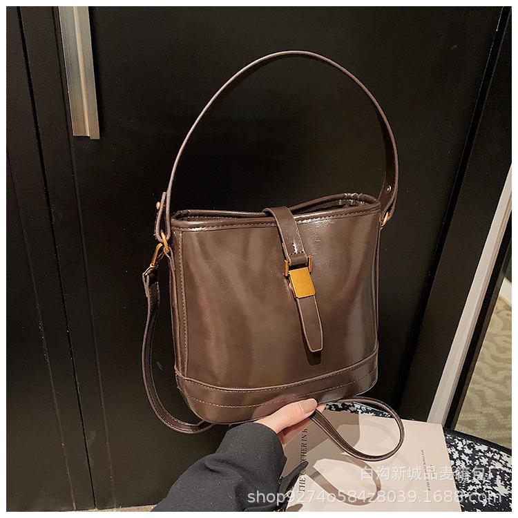 Bolso pequeño retro de alta gama para mujer, nuevo bolso cruzado combinable para otoño e invierno de 2024, bolso de cubo portátil súper moderno y de moda.