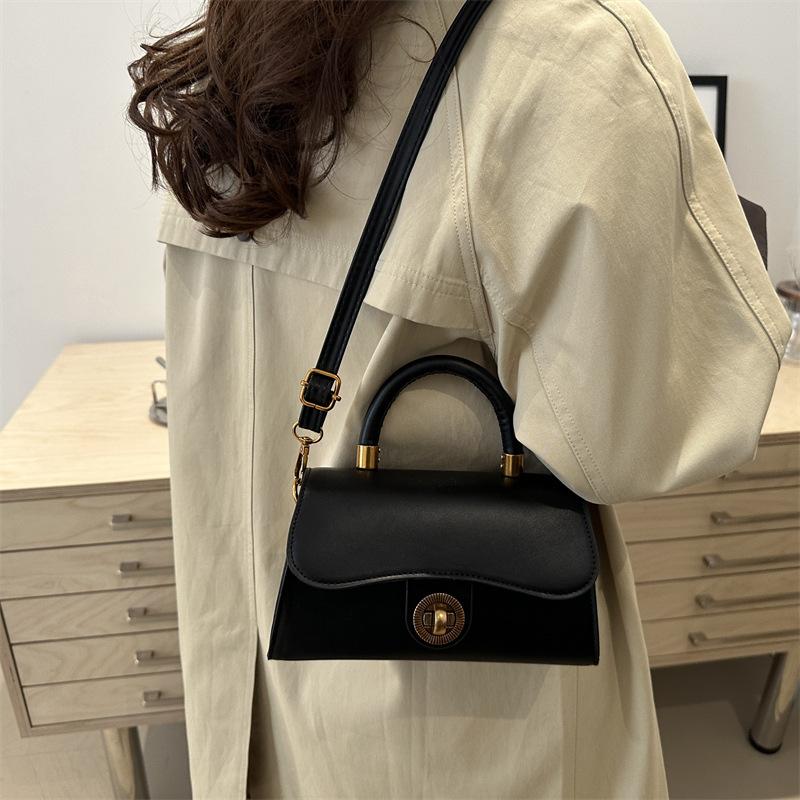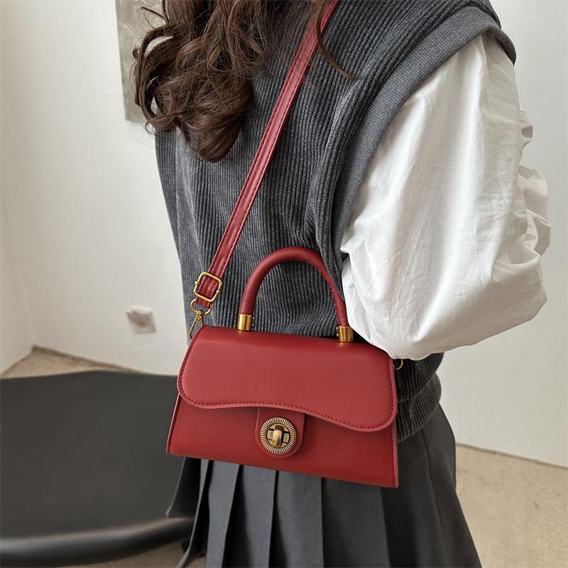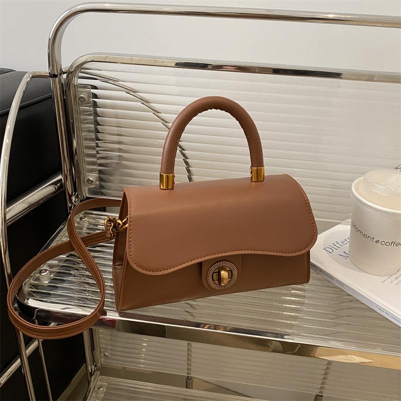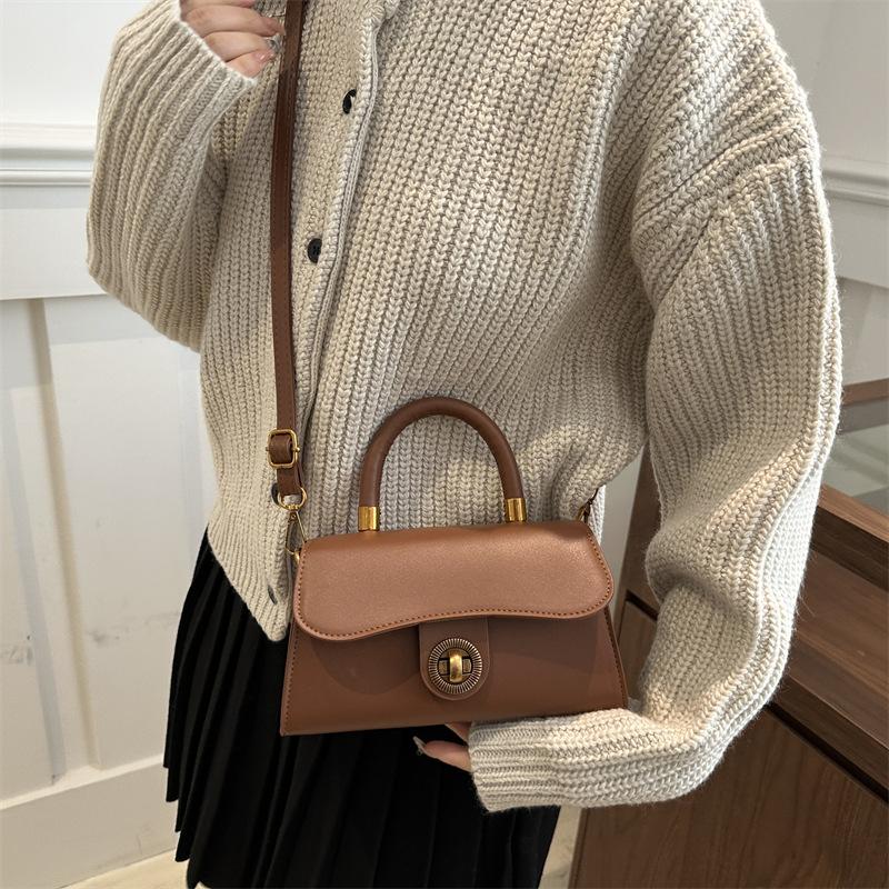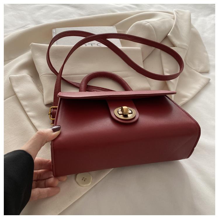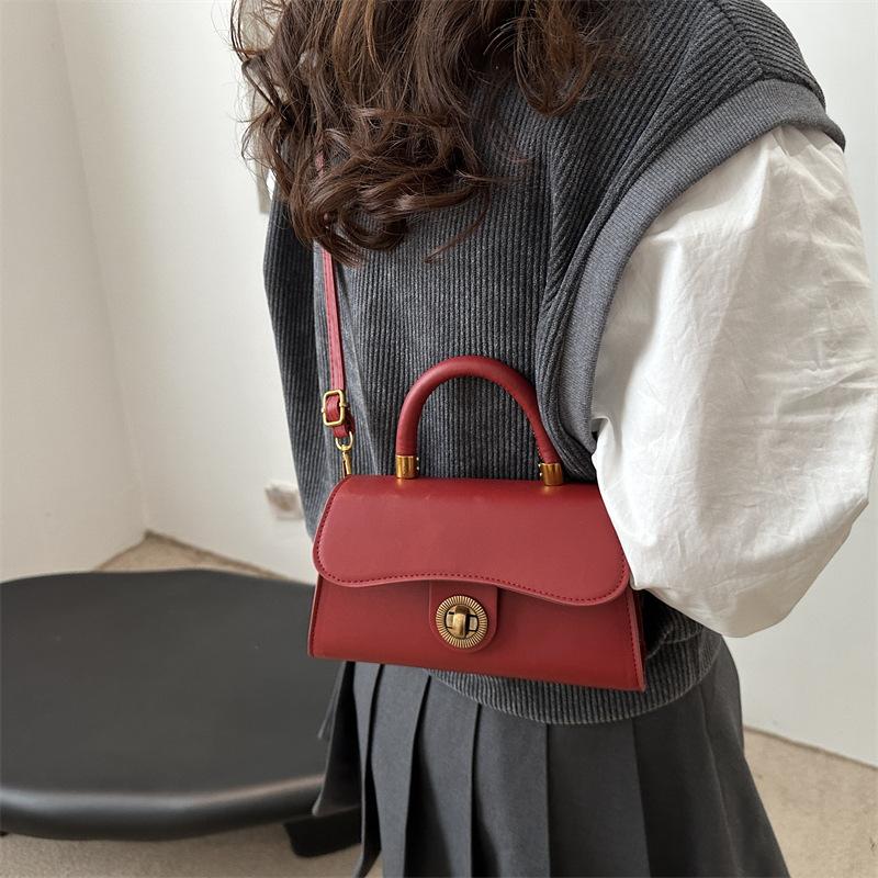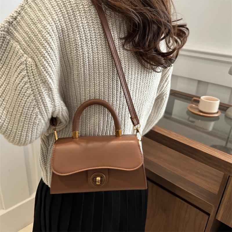 Bolso de mano retro de color sólido para mujer, bolso de mano para el trabajo, combinable, informal, de alta gama, elegante, para otoño e invierno.