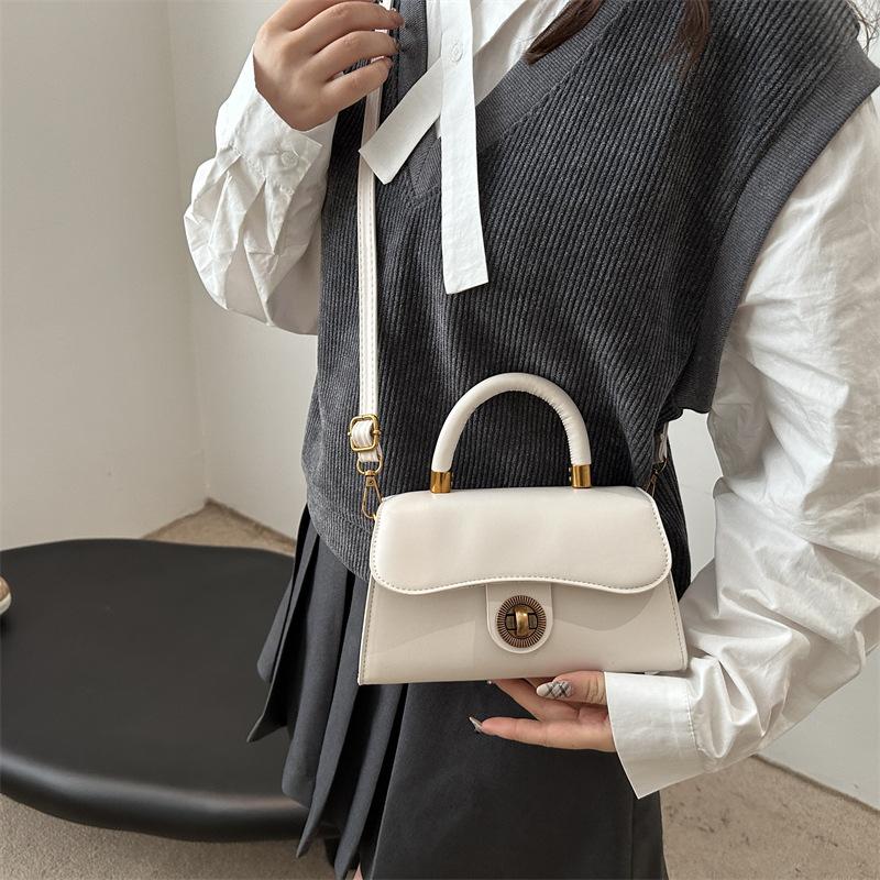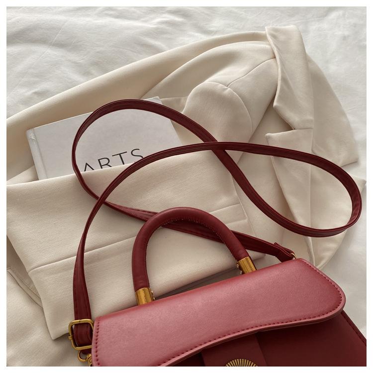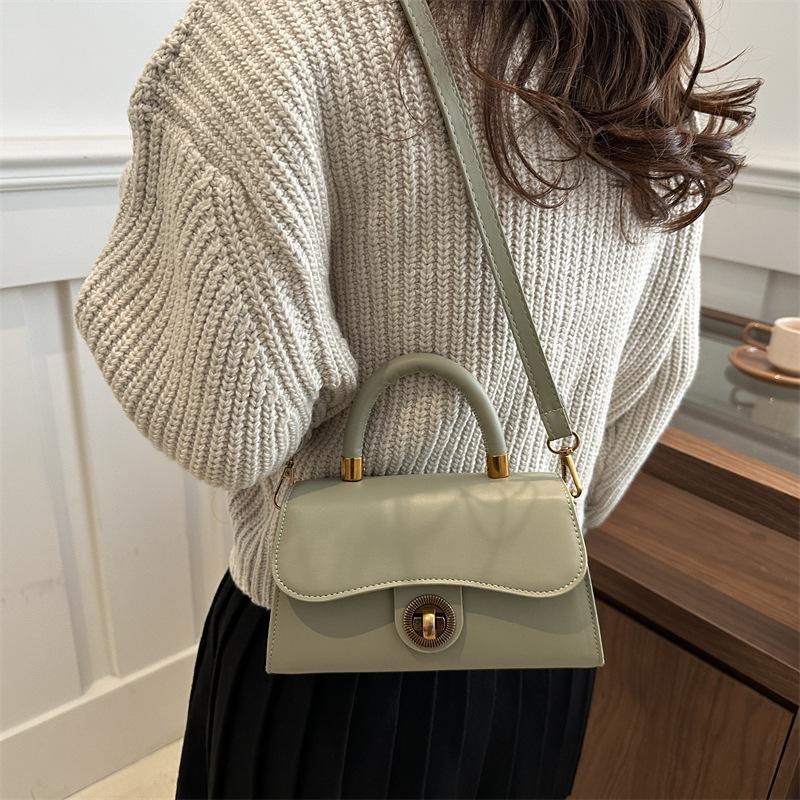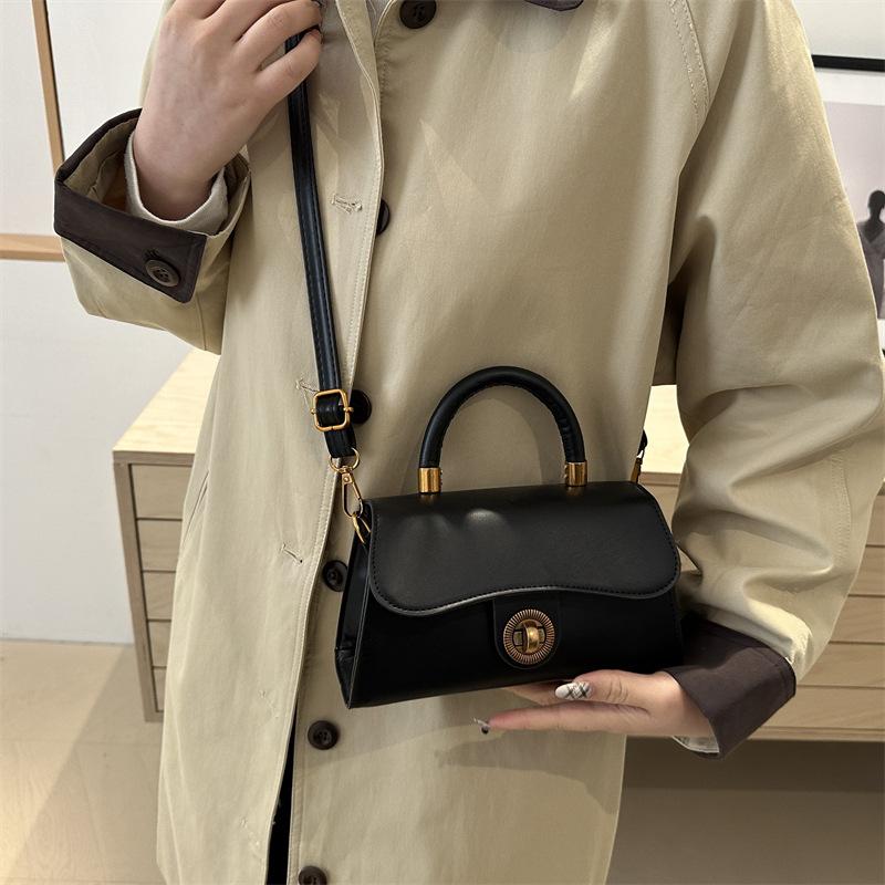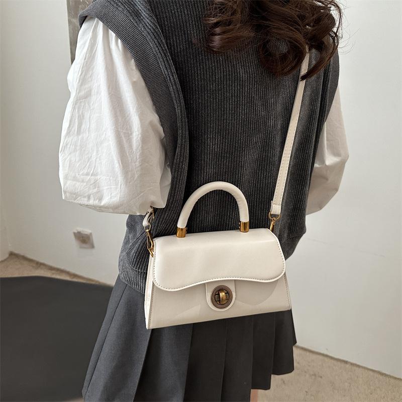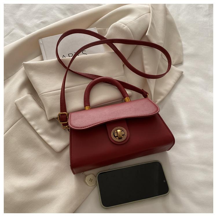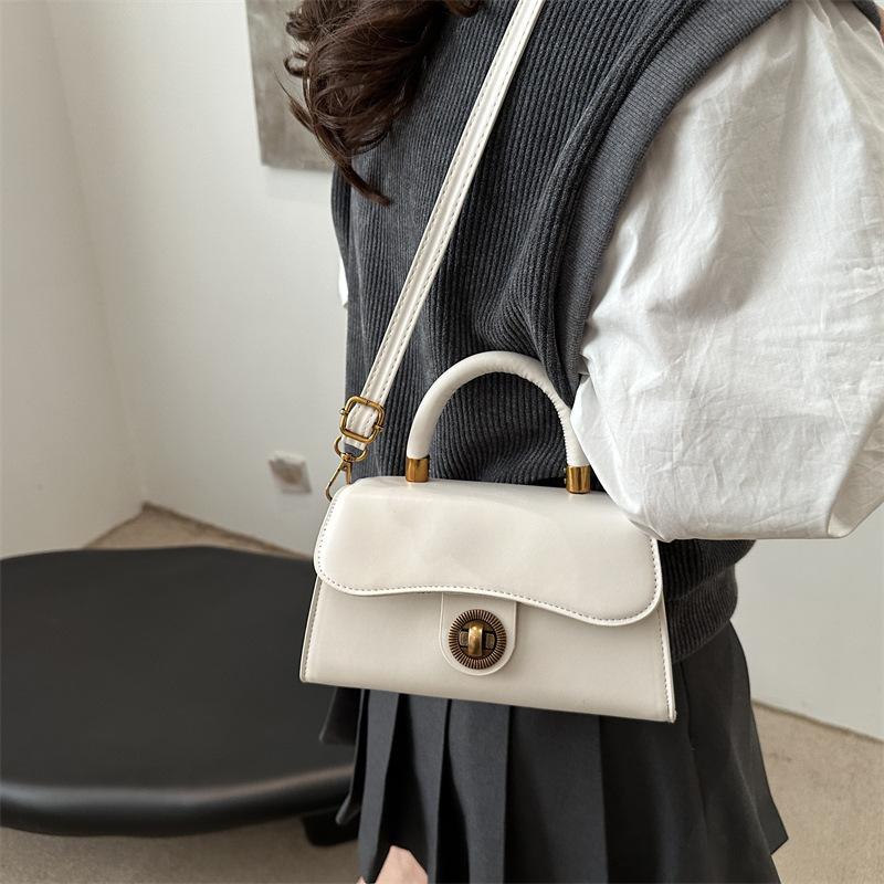Bolso de mano retro de color sólido para mujer, bolso de mano para el trabajo, combinable, informal, de alta gama, elegante, para otoño e invierno.