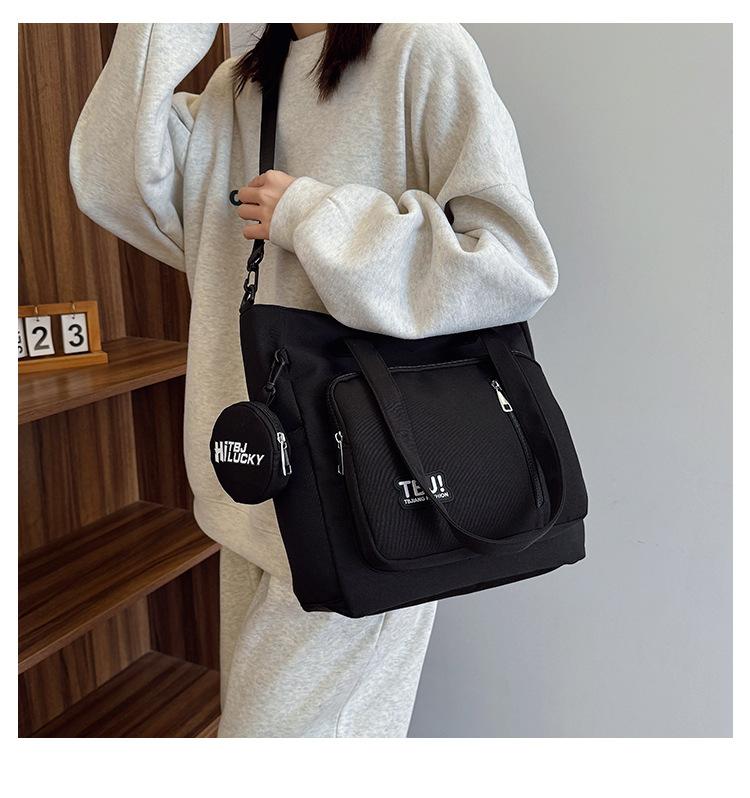 Bolso Tote de Lona Casual de Gran Capacidad para Mujer, Bolso de Hombro Simple y a la Moda de Verano, Bolso para Clase, Viajes, para Estudiantes Universitarios