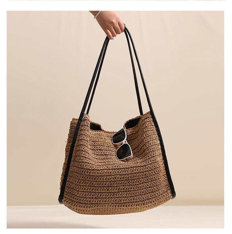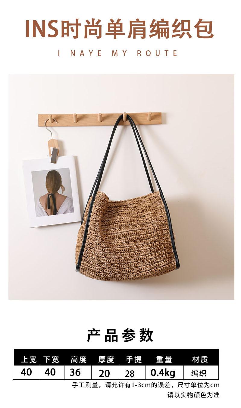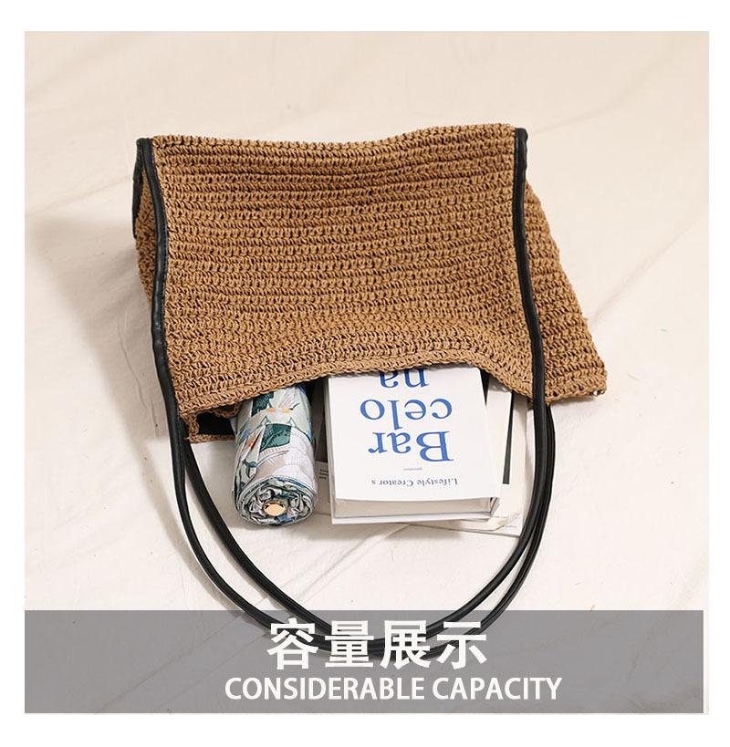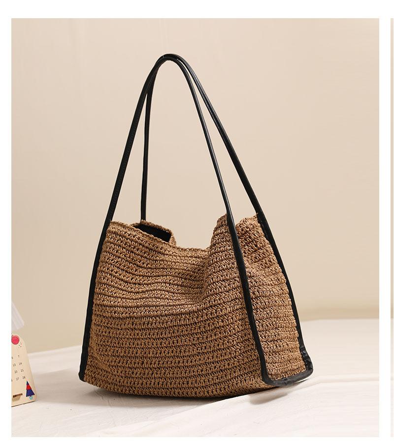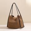 Bolso de Paja Francés de Gran Capacidad Nuevo Nicho Color Sólido Bolso de Paja Bolso Tejido Bolso de Playa para Vacaciones de Mujer Bolso de Hombro a la Moda