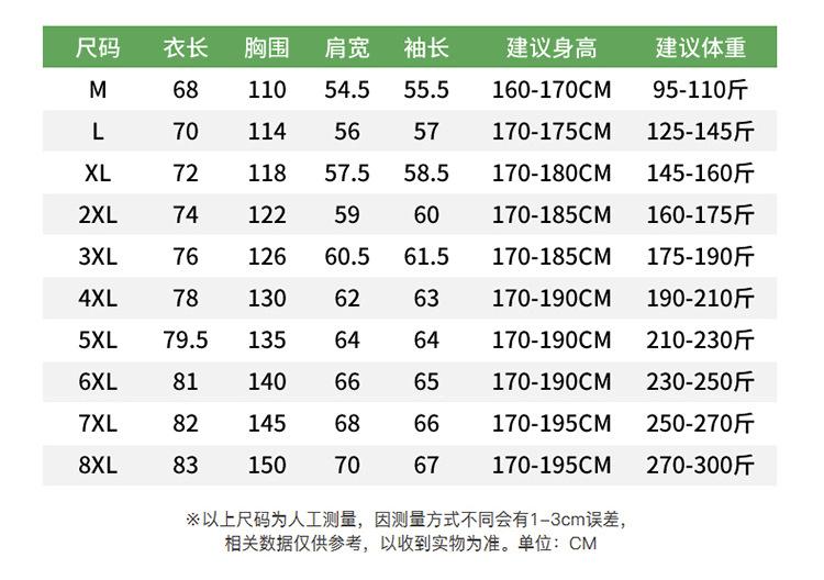 M, L, XL, 2XL, 3XL, 4XL, 5XL, 6XL, 7XL, 8XL