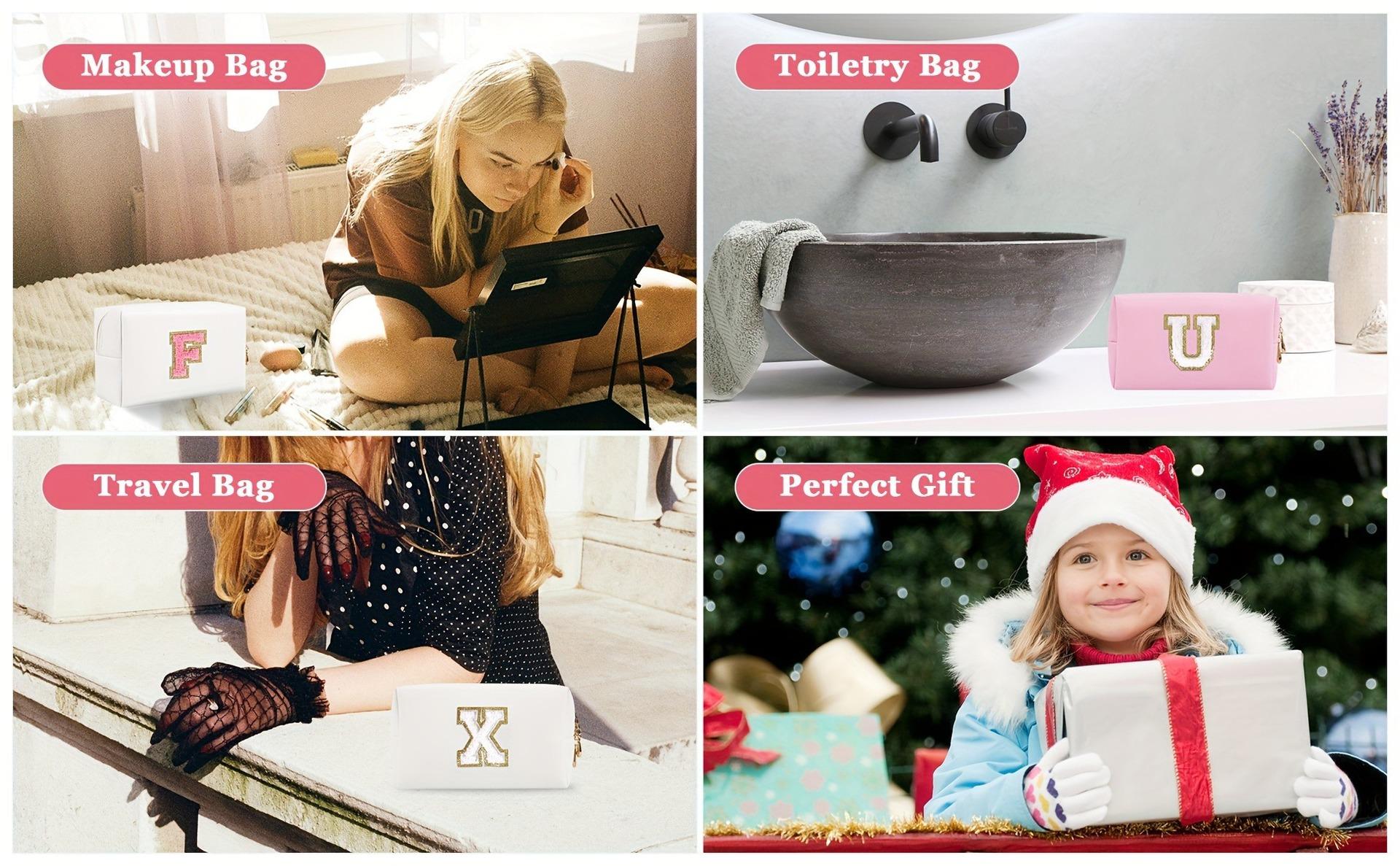 Bolsa Cosmética de Cuero con Letra Transfronteriza Cosmética Linda Moda Portátil Viaje Almacenamiento Bolsa Portátil para Lavado Salida