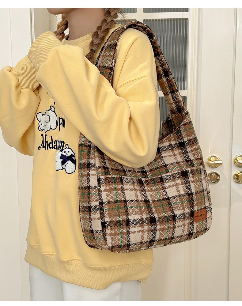 Compra Bolso de Gran Capacidad para Mujer 2025 Nuevo Estilo Cuadros Retro Simple Bolso de Hombro Tote para Viaje Estudiante Clase Bolsa de Tela al por mayor en Joom.pro