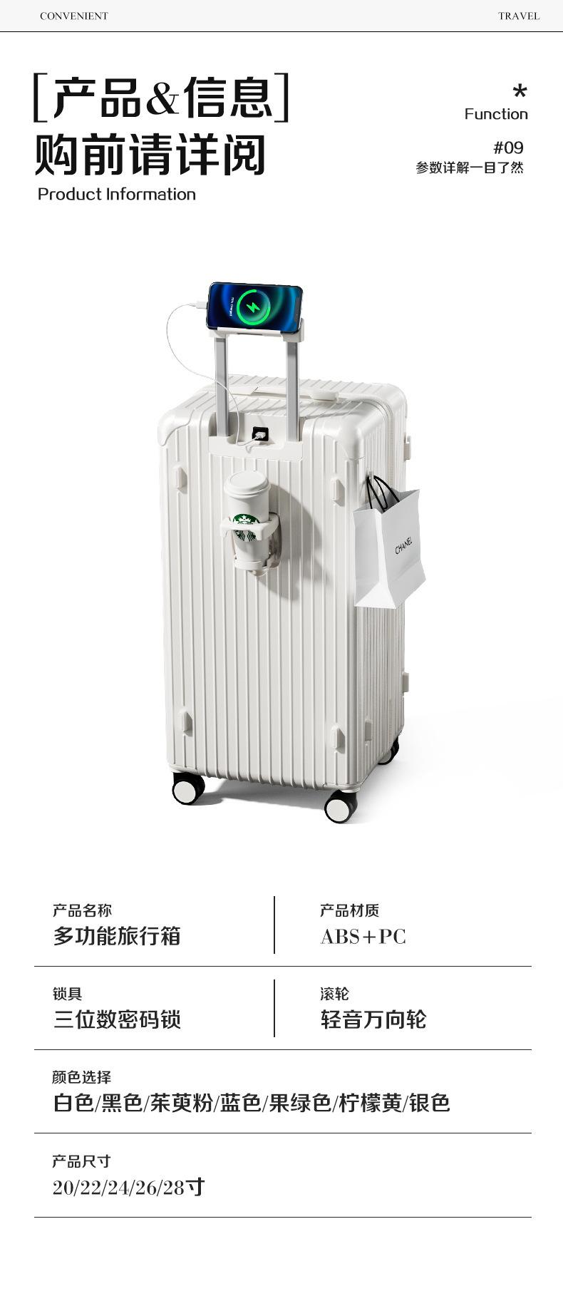 Nueva maleta con ruedas de gran capacidad, portavasos de agua, equipaje universal con ruedas para hombres y mujeres, caja con contraseña resistente y duradera, comercio exterior