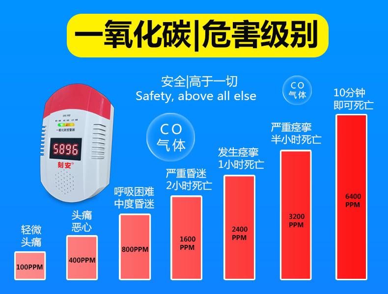 Detector de monóxido de carbono, con pantalla digital de concentración, aviso sonoro de alarma