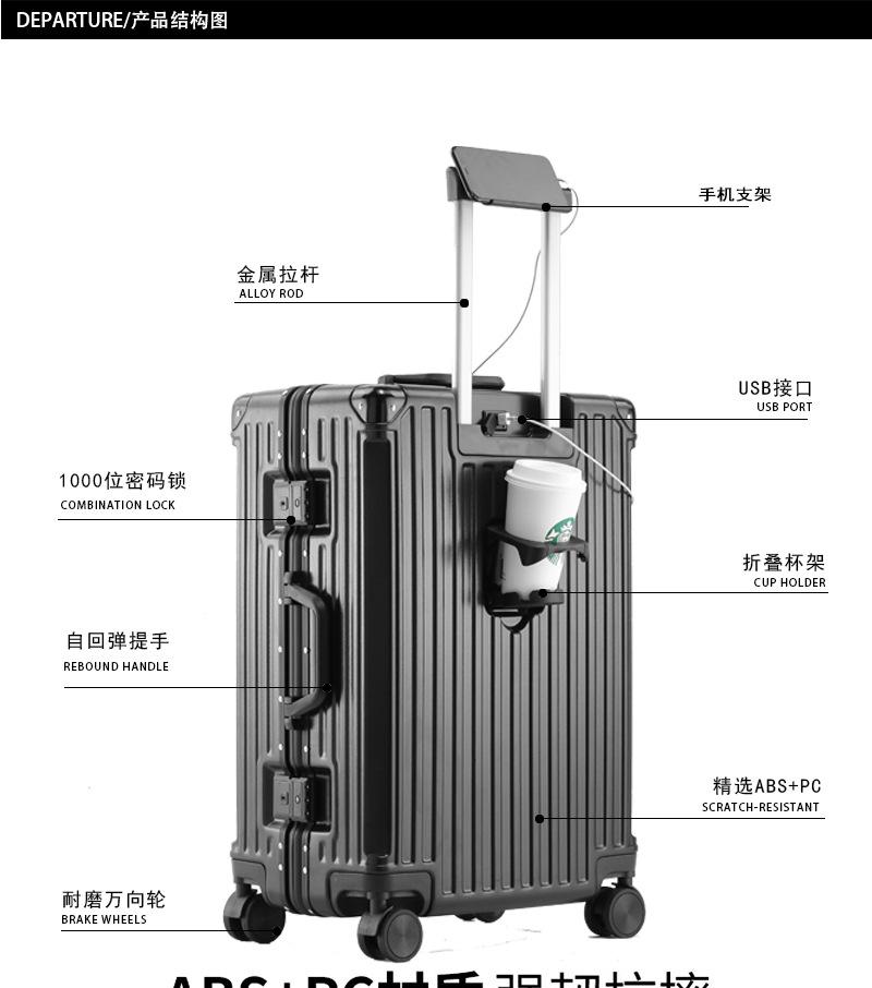 Maleta con Marco de Aluminio, Maleta Trolley Multifuncional para Mujer, Maleta de 20 pulgadas con Candado de Código para Abordaje, Maleta de Viaje para Hombre, Viaje Ligero