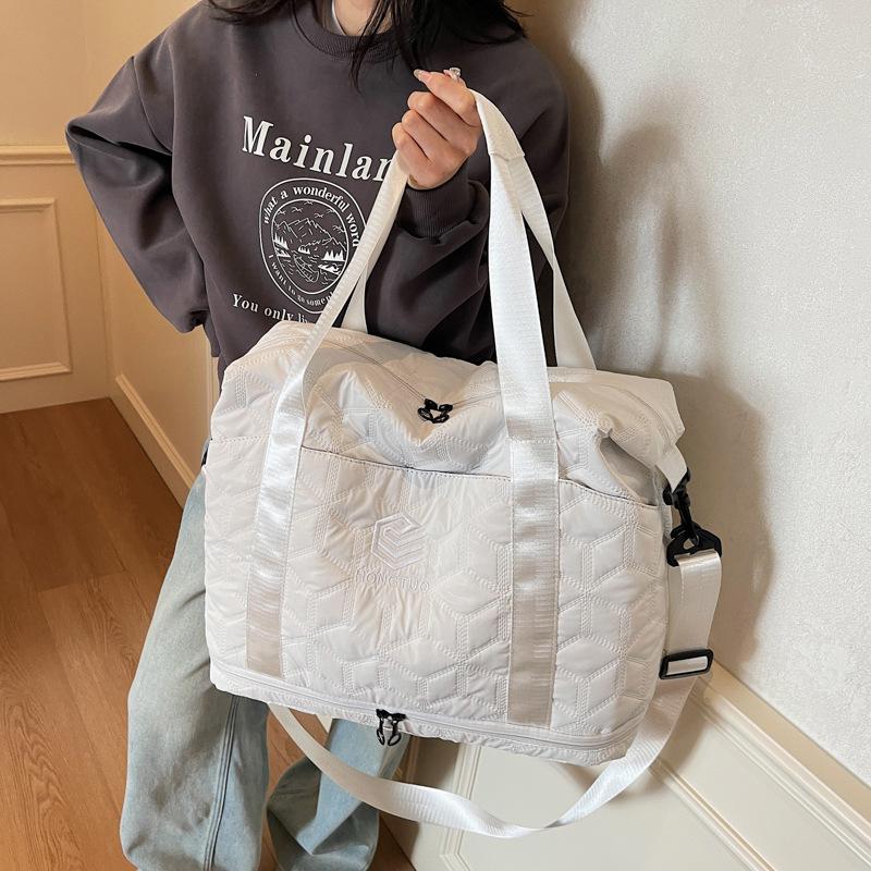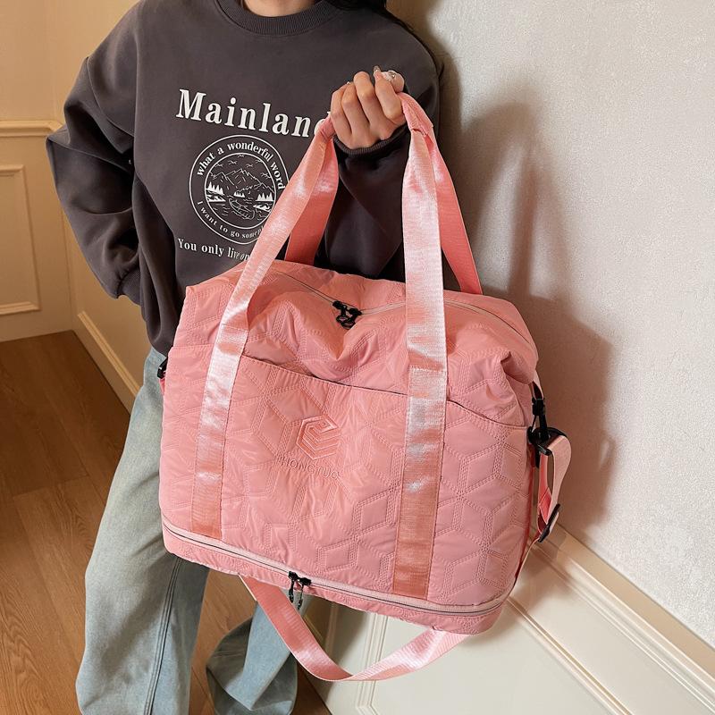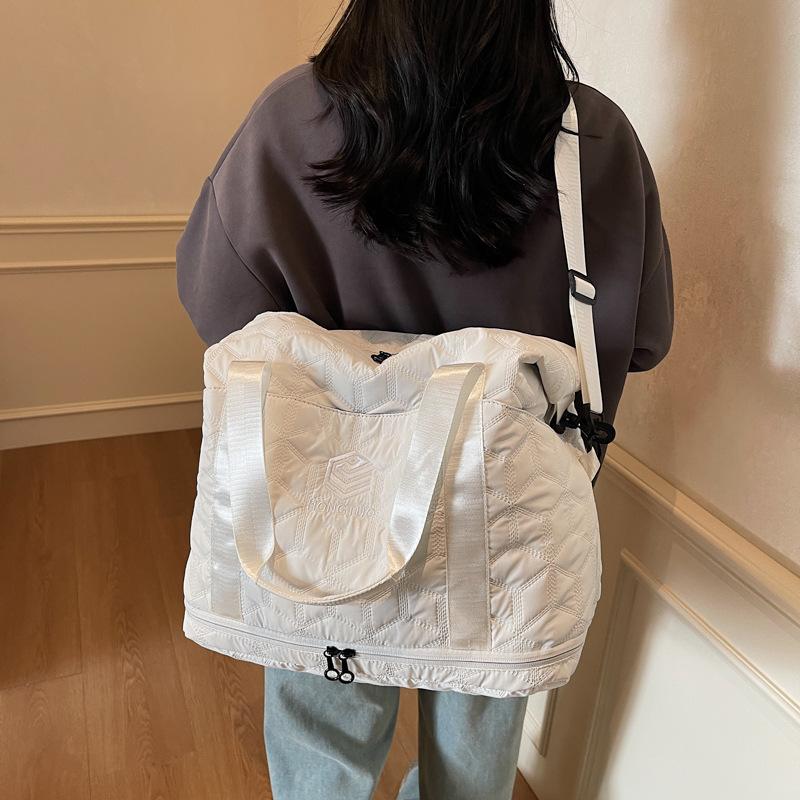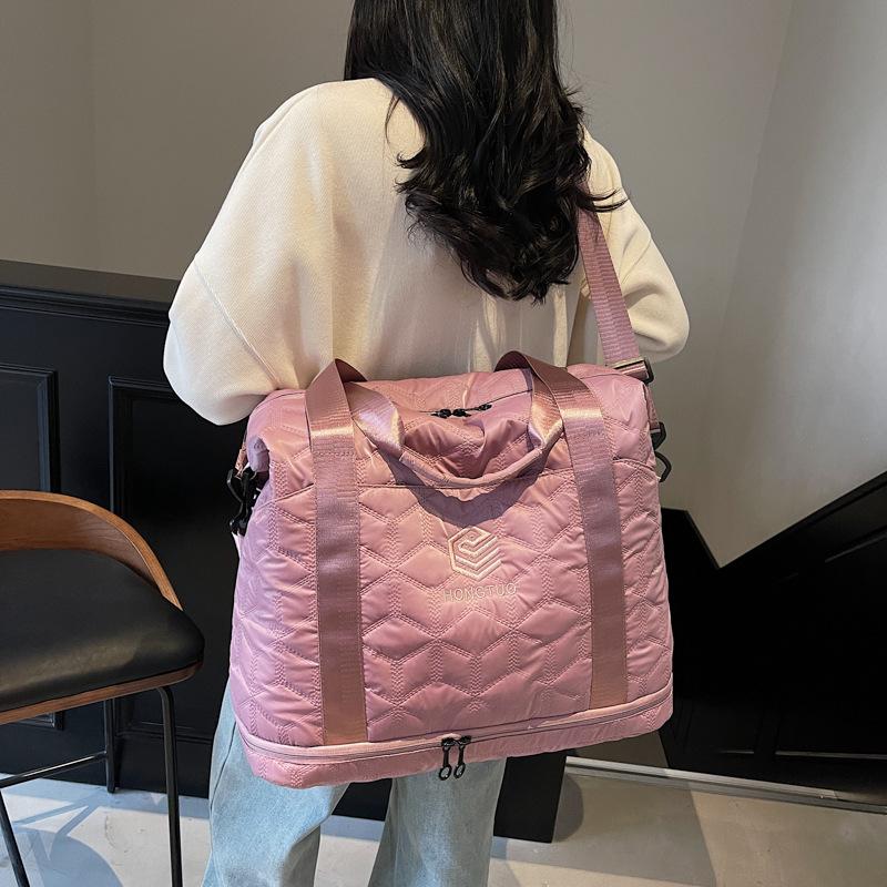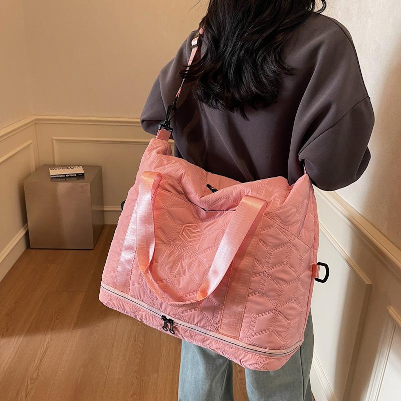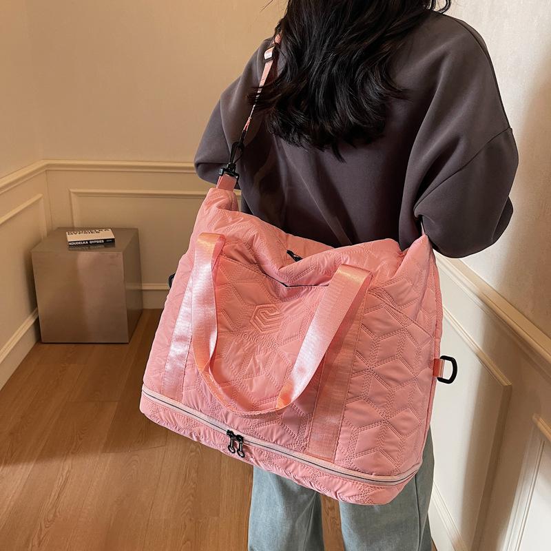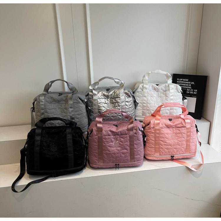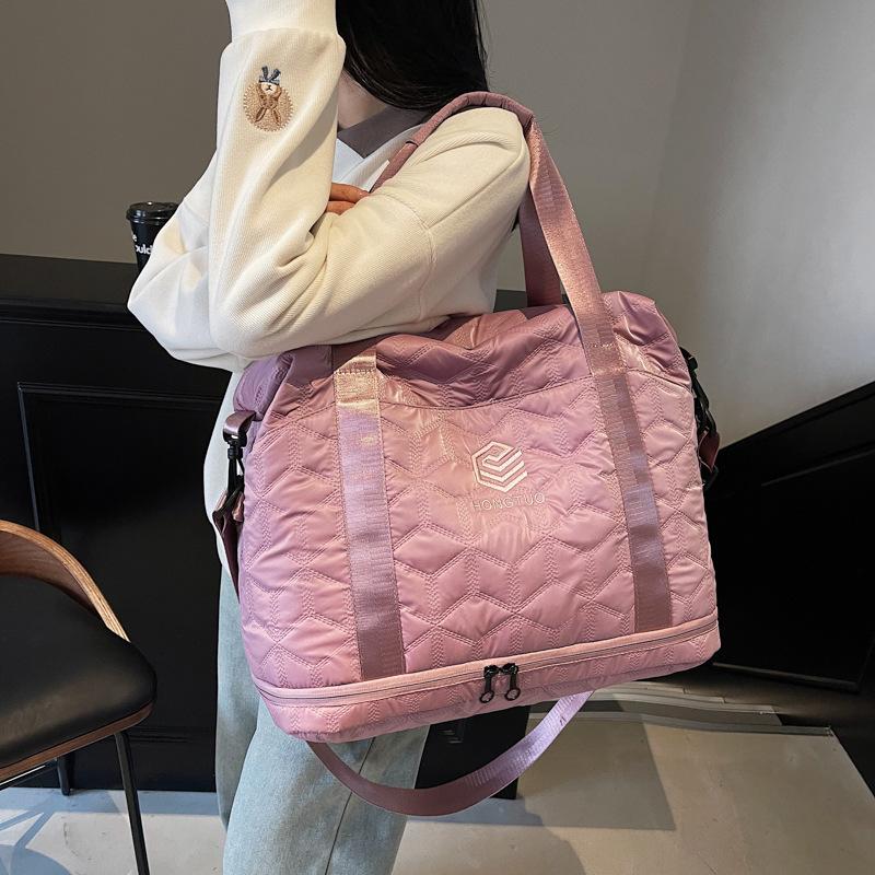 Bolso de viaje de gran capacidad al por mayor transfronterizo para mujer, compartimento independiente para zapatos, bolsa deportiva para fitness, separación húmedo/seco, portátil, bandolera, moda
