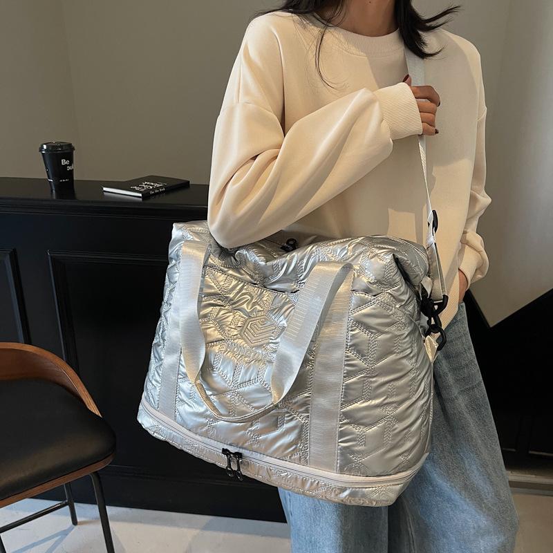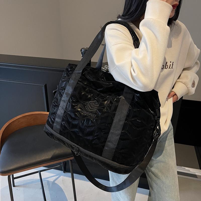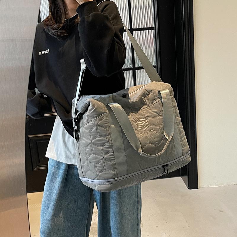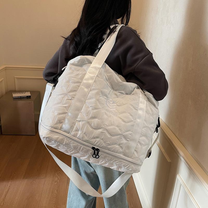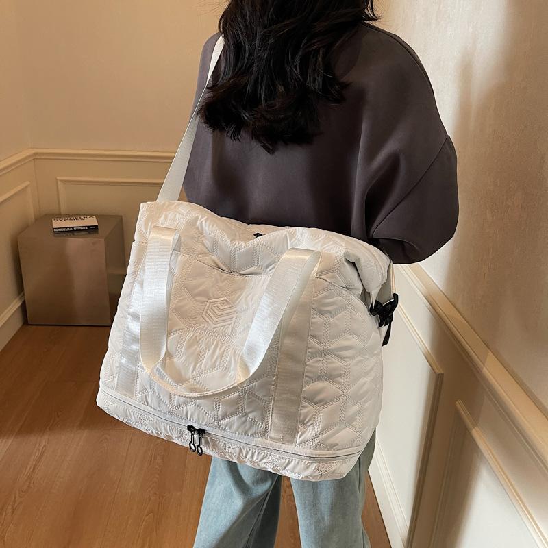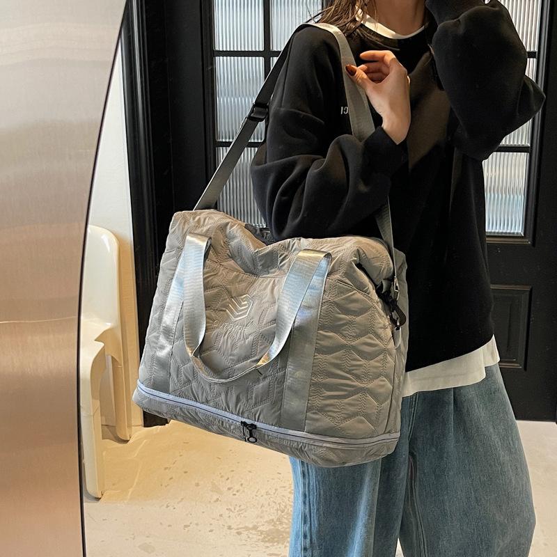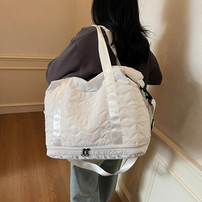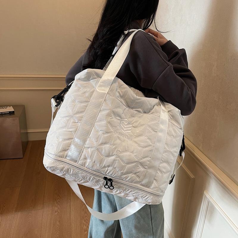 Bolso de viaje de gran capacidad al por mayor transfronterizo para mujer, compartimento independiente para zapatos, bolsa deportiva para fitness, separación húmedo/seco, portátil, bandolera, moda