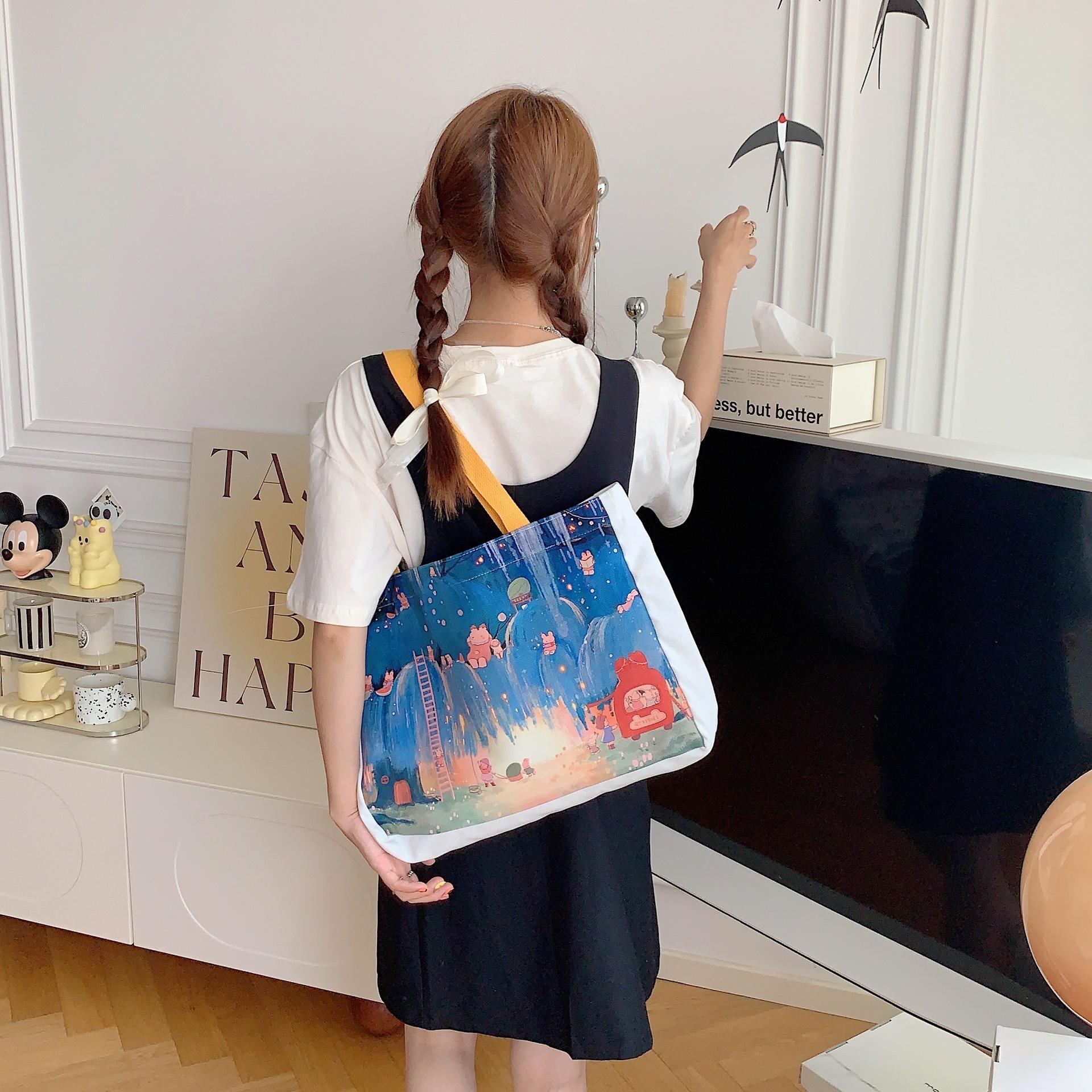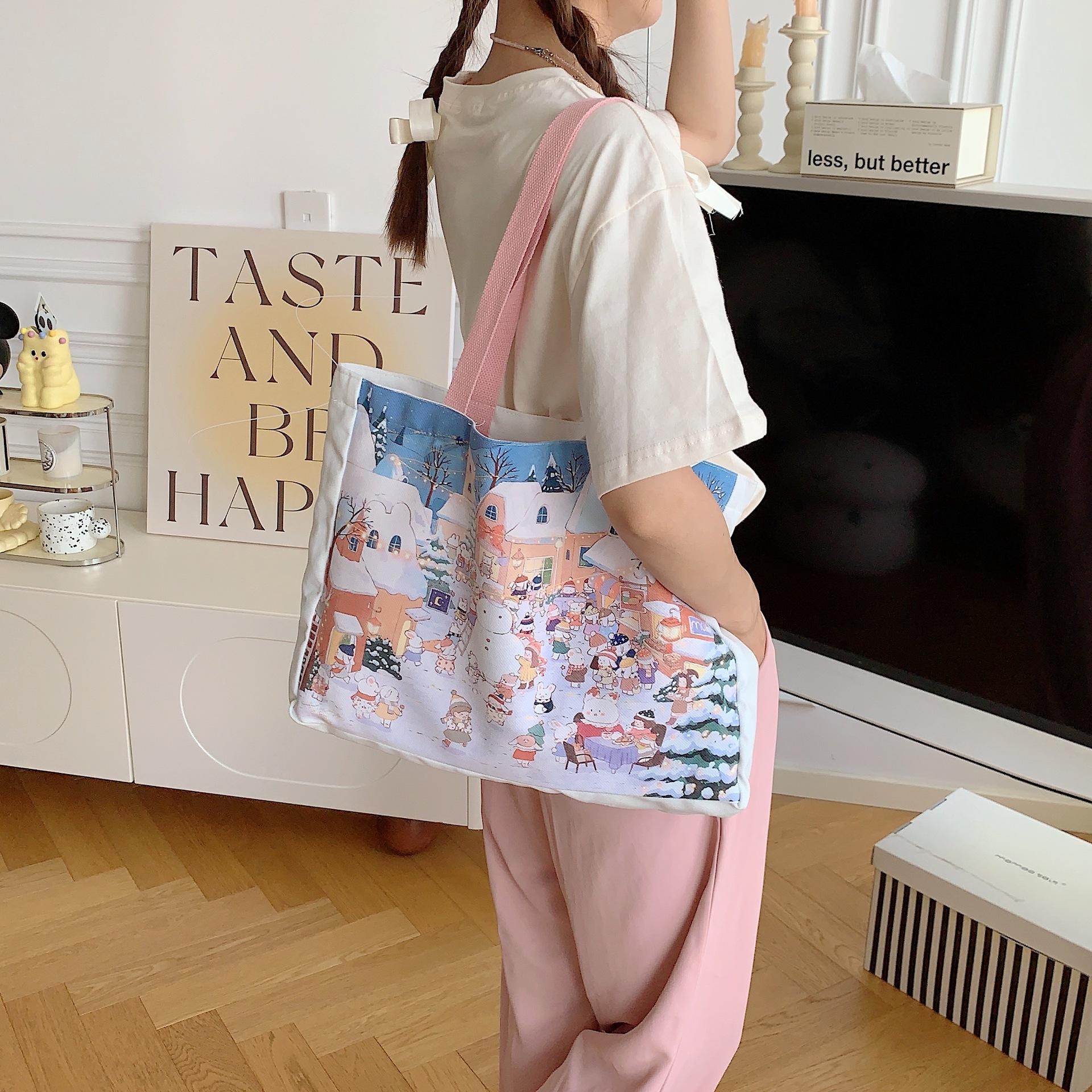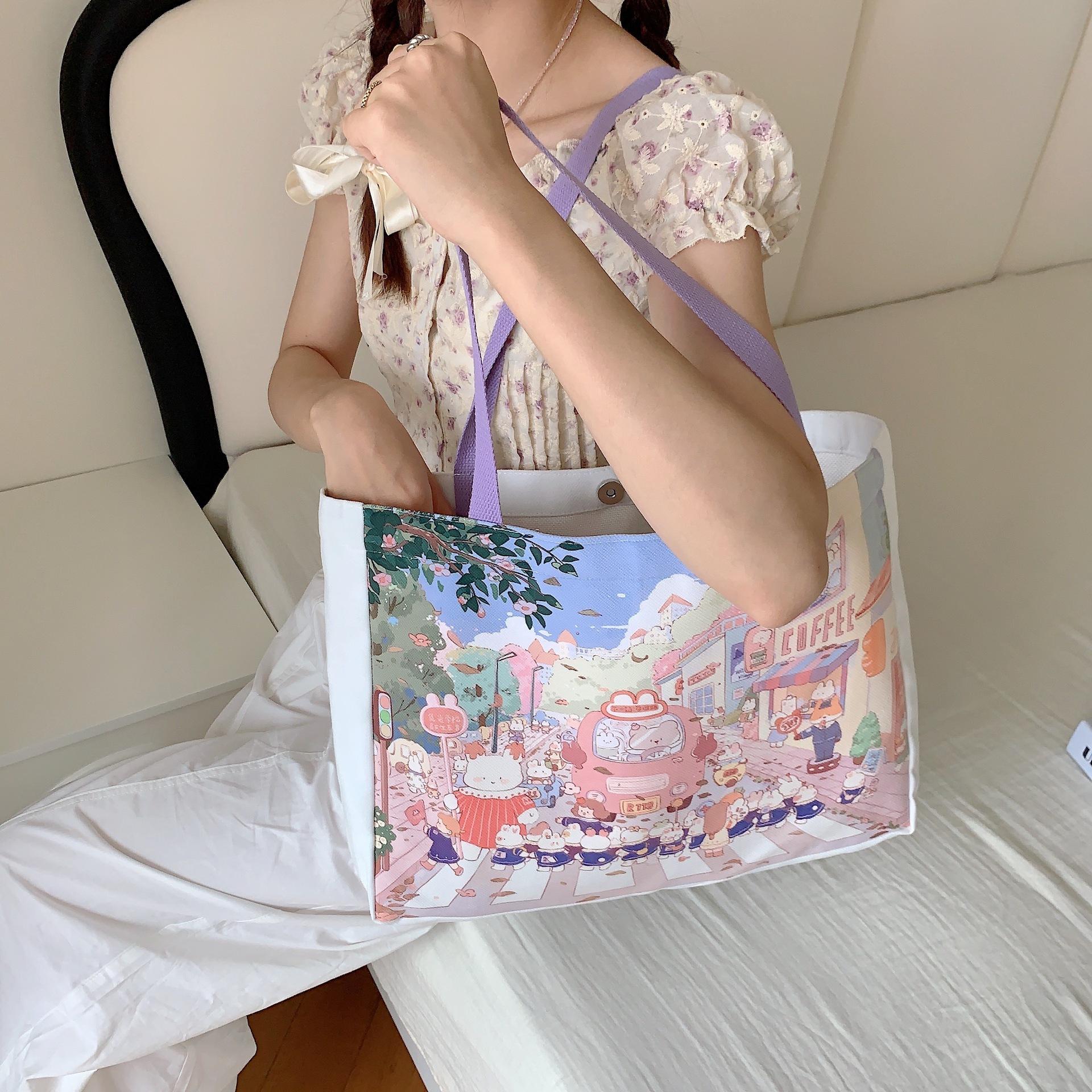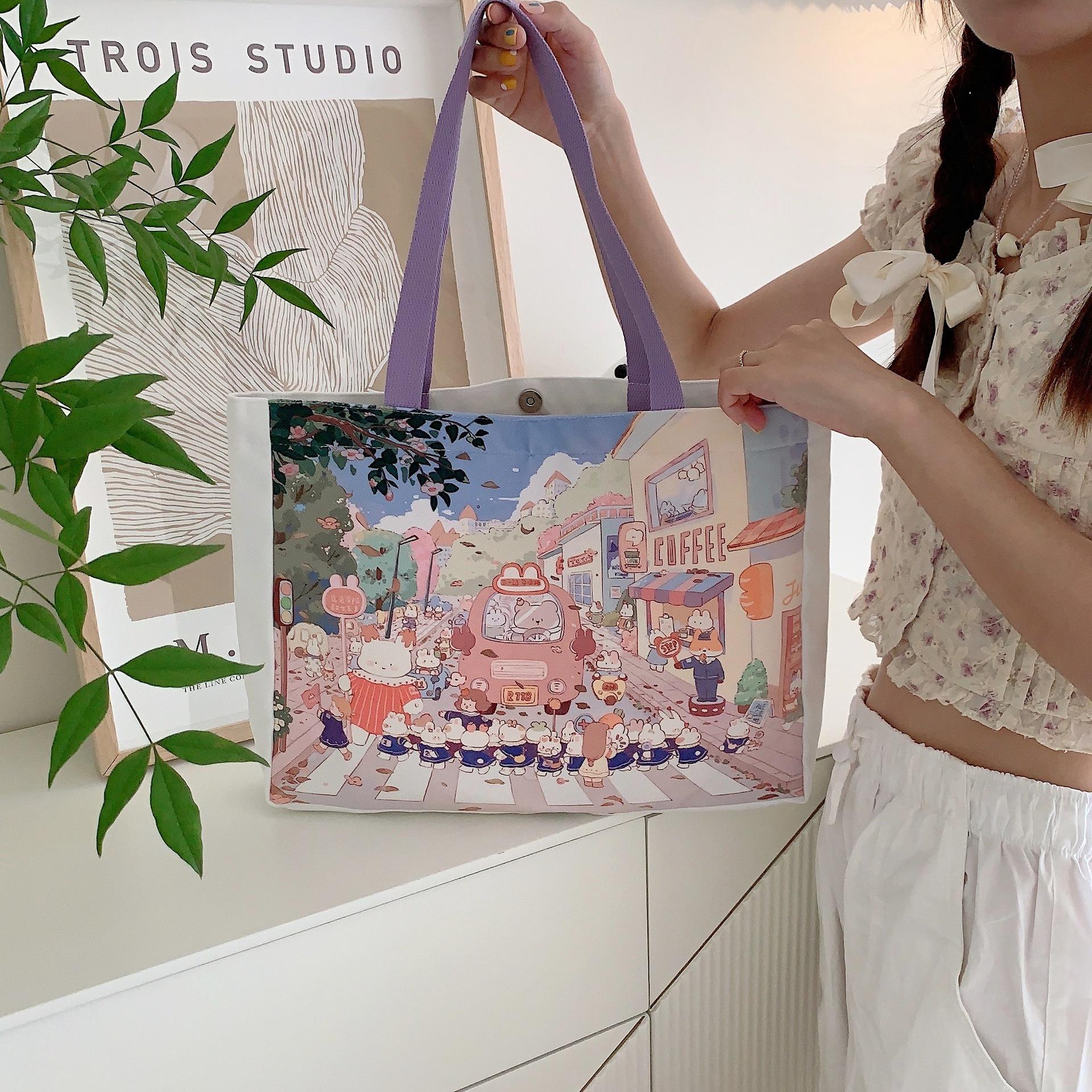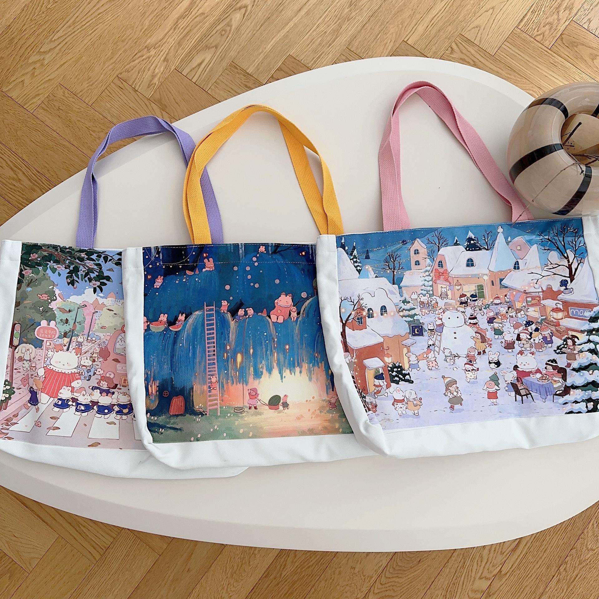 3852 Bolso de lona para mujer, de gran capacidad, con estampado de dibujos animados, combinable con todo, informal, sencillo