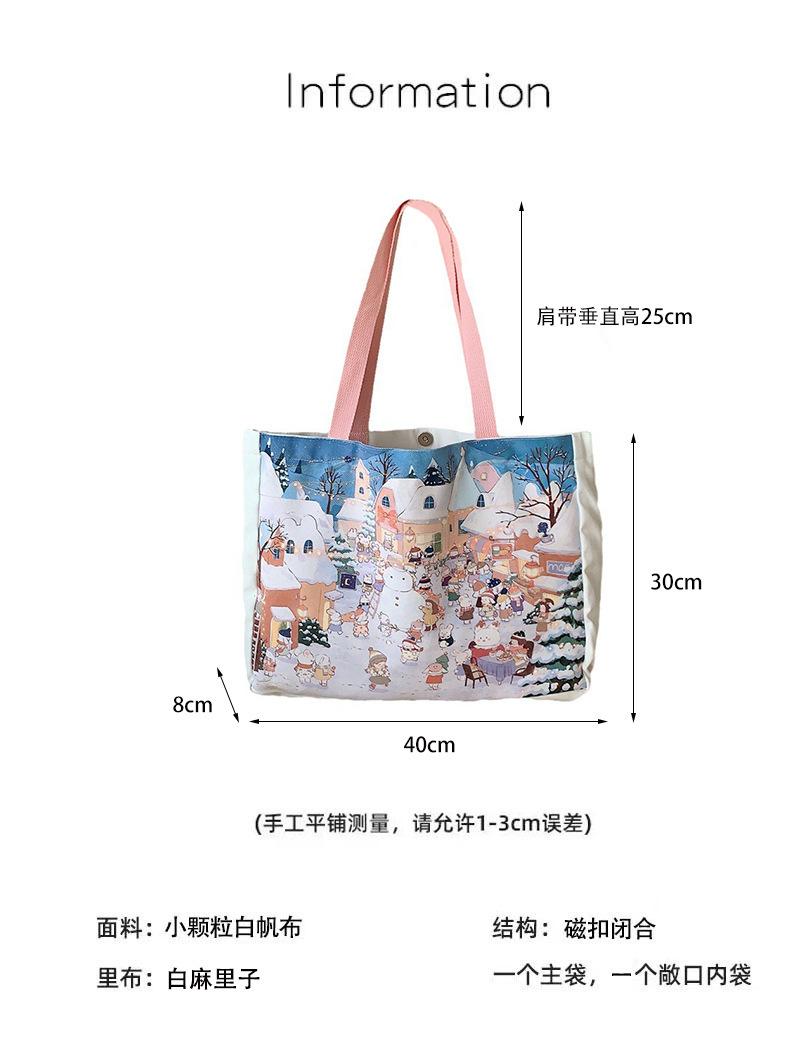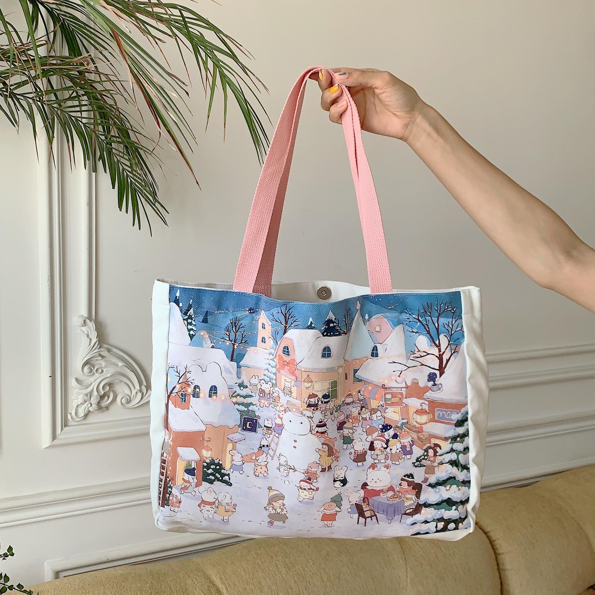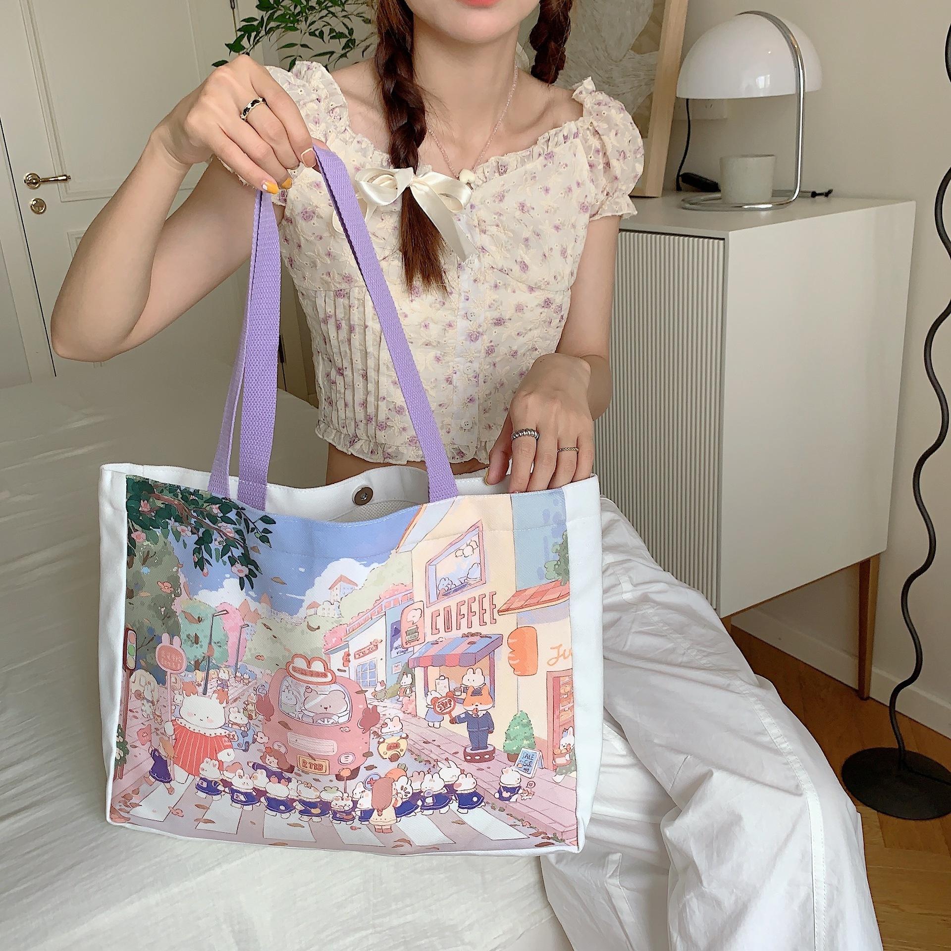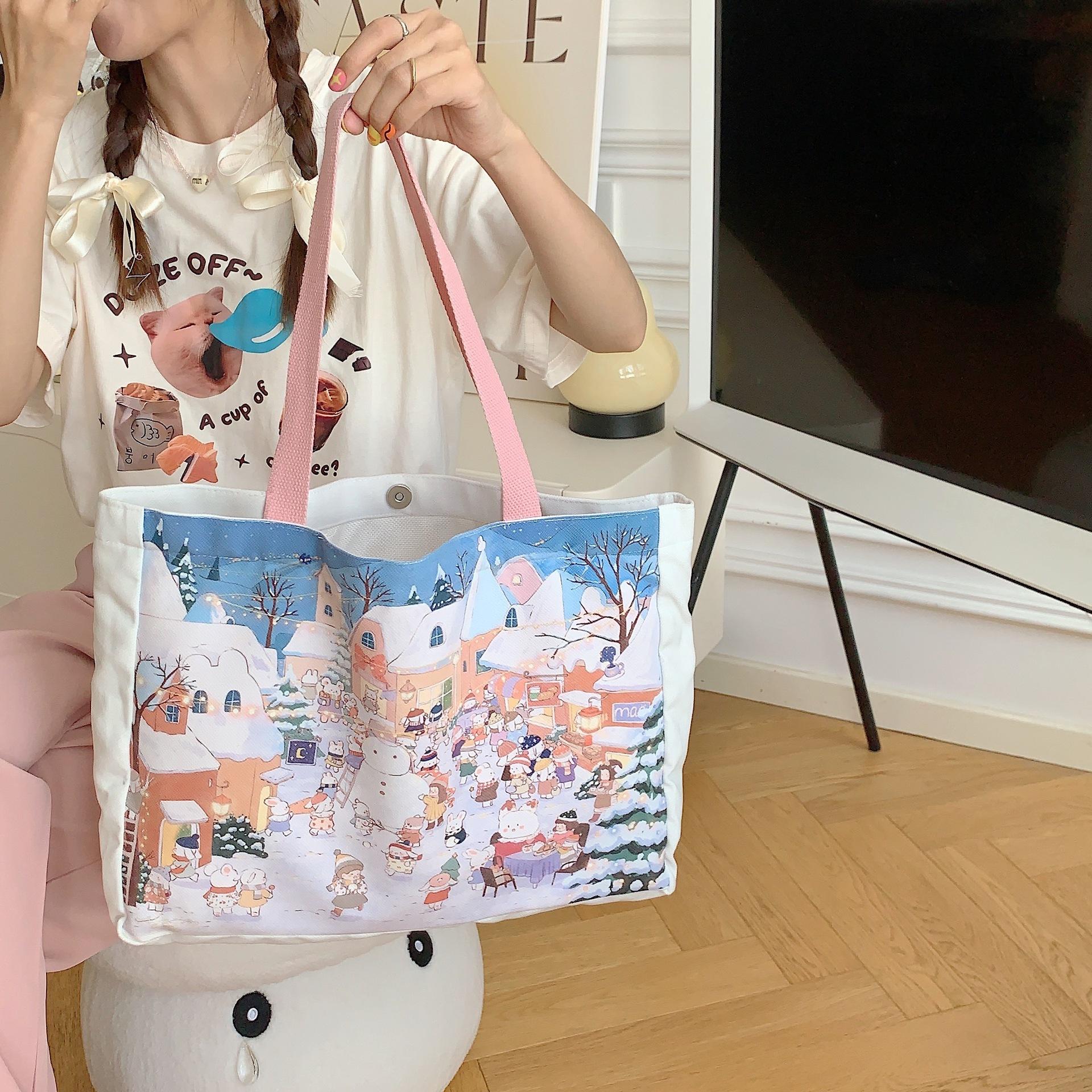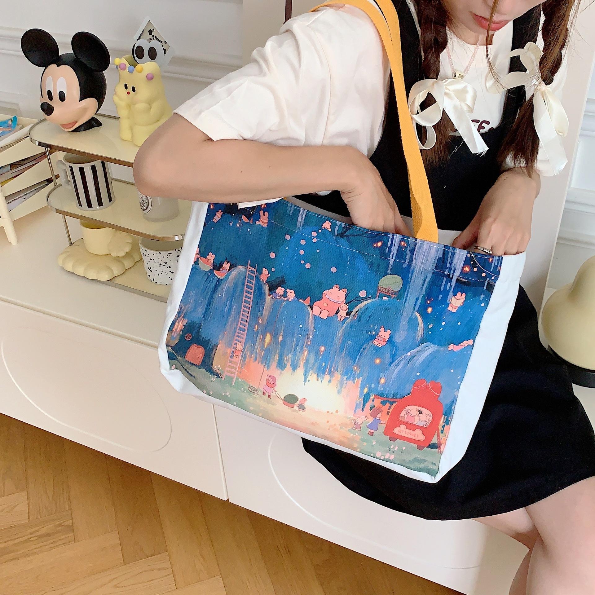3852 Bolso de lona para mujer, de gran capacidad, con estampado de dibujos animados, combinable con todo, informal, sencillo