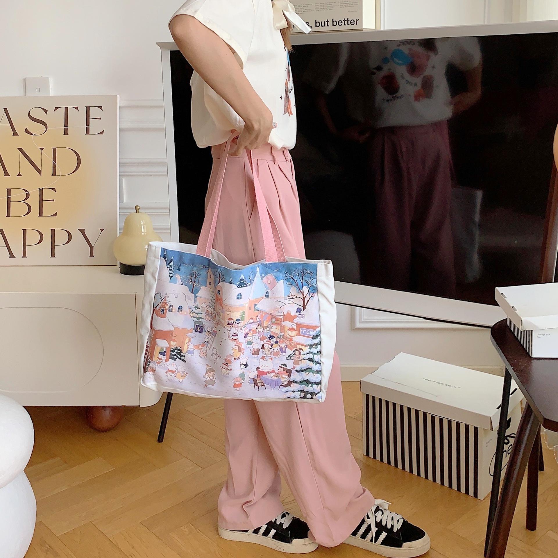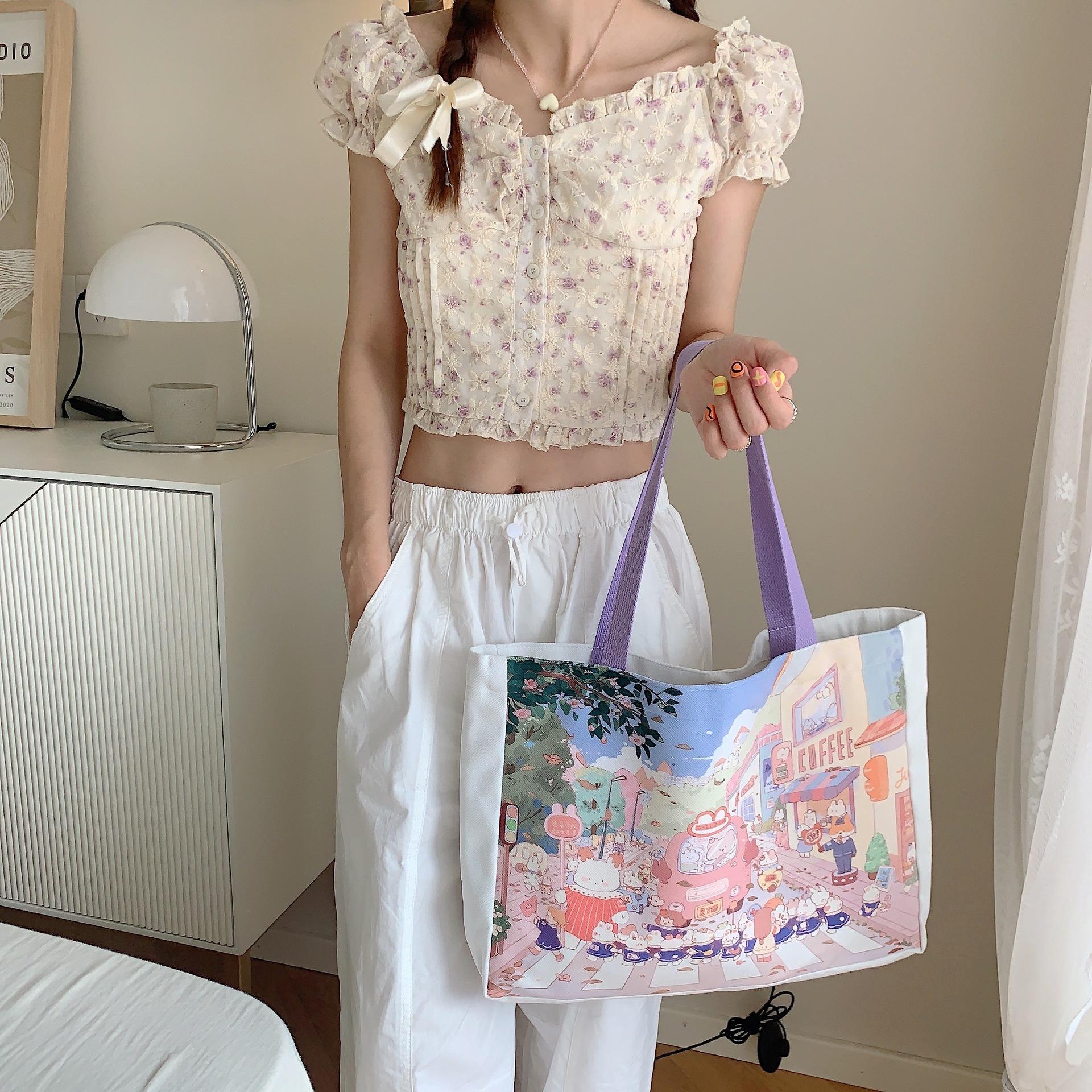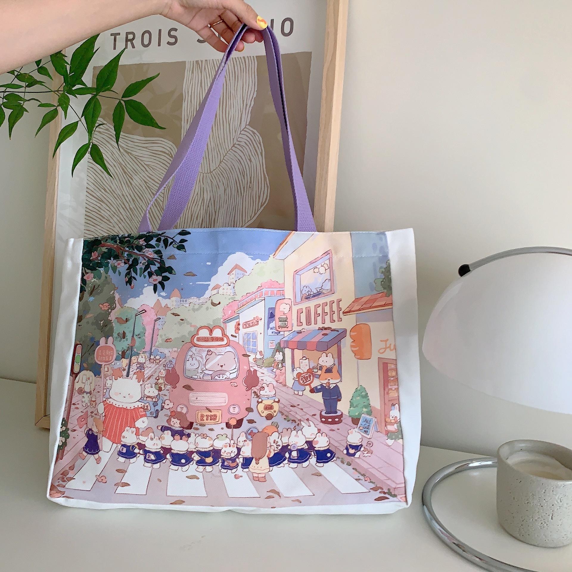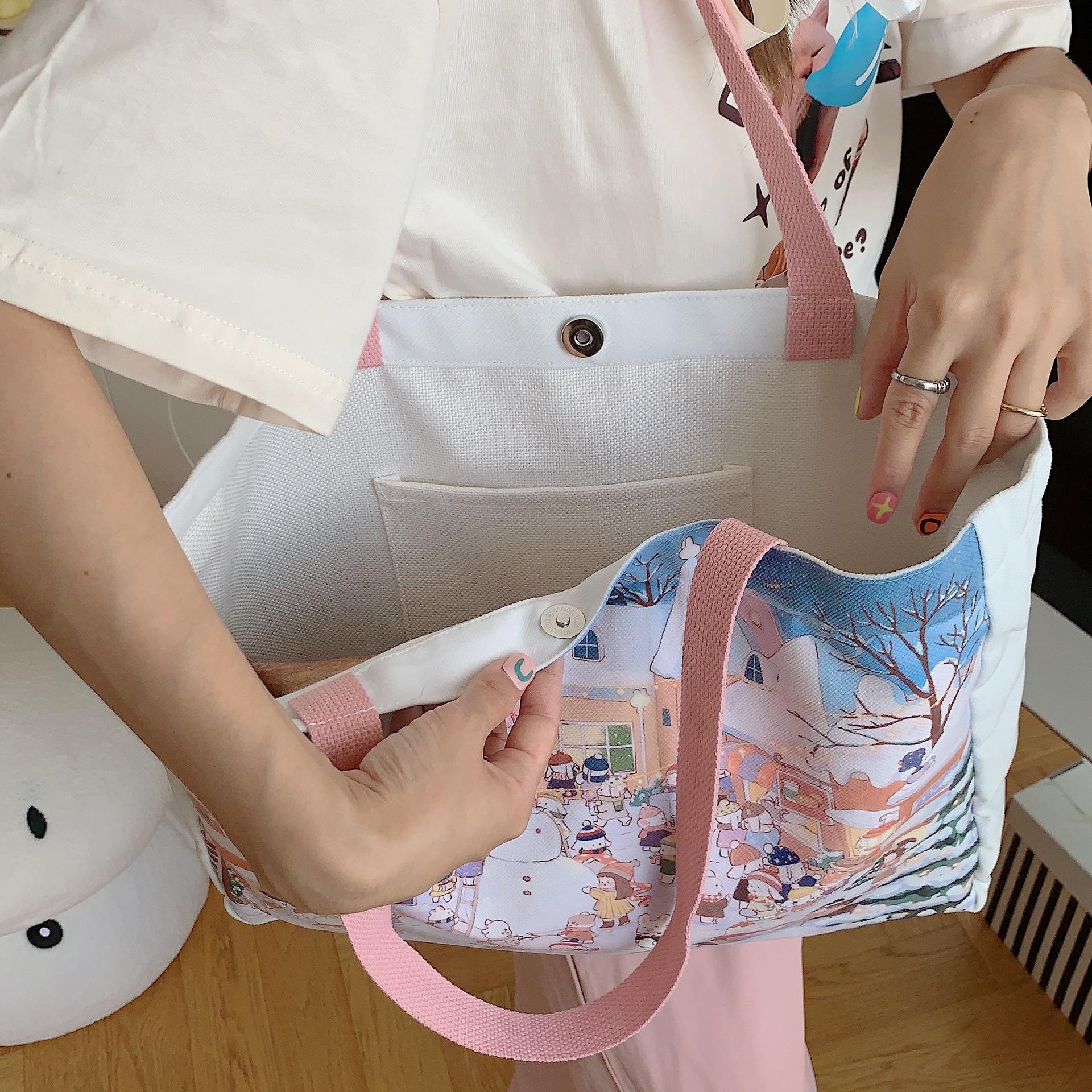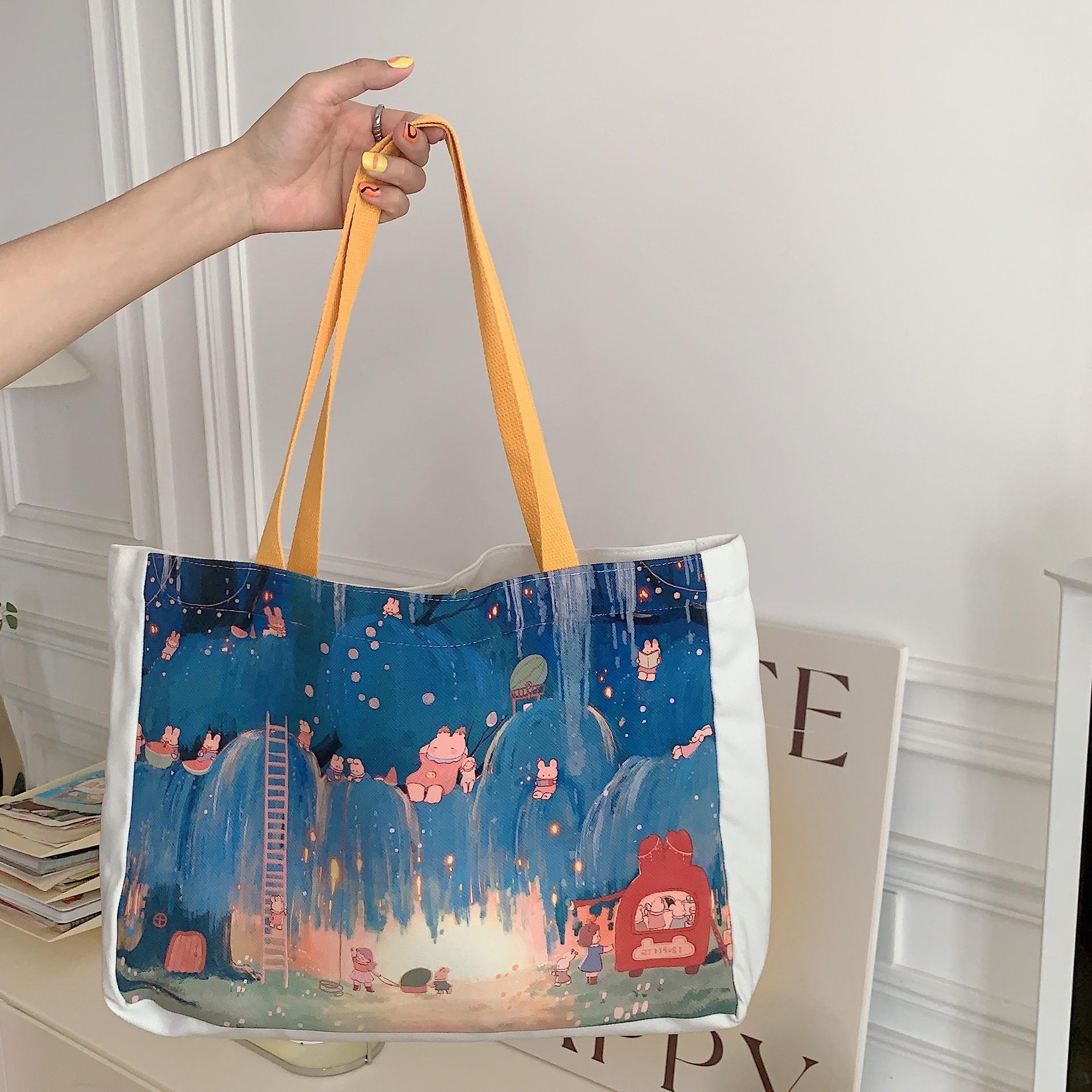 3852 Bolso de lona para mujer, de gran capacidad, con estampado de dibujos animados, combinable con todo, informal, sencillo