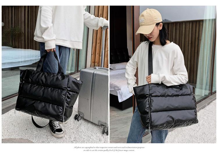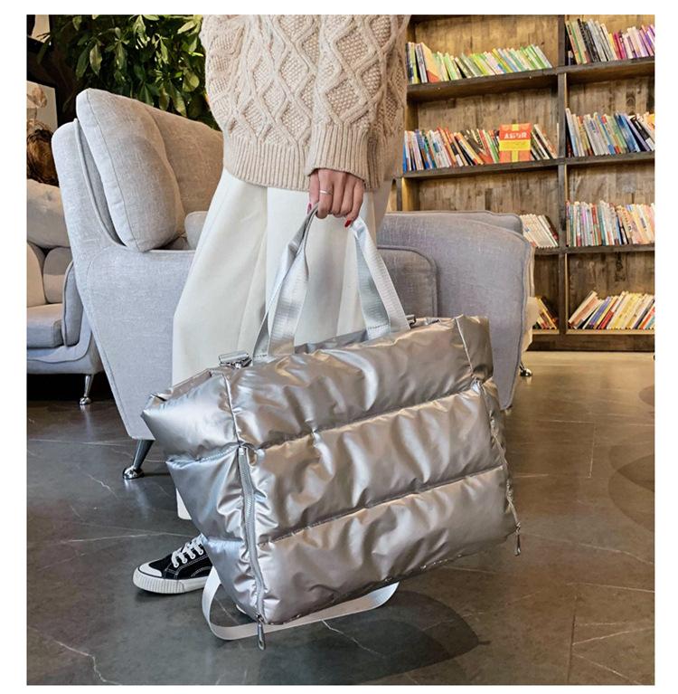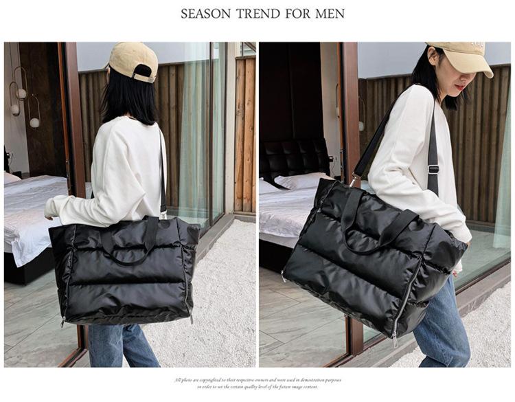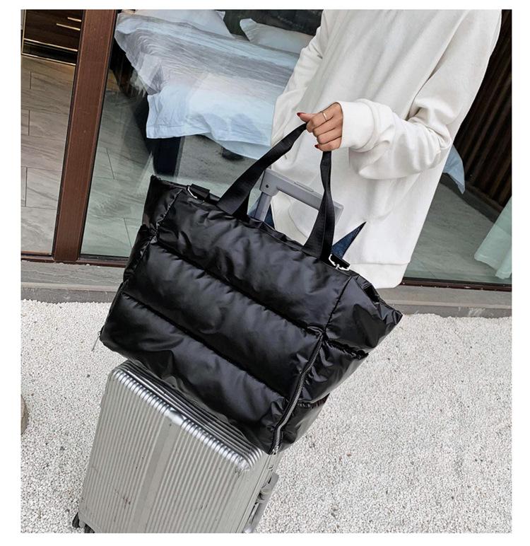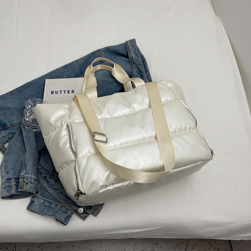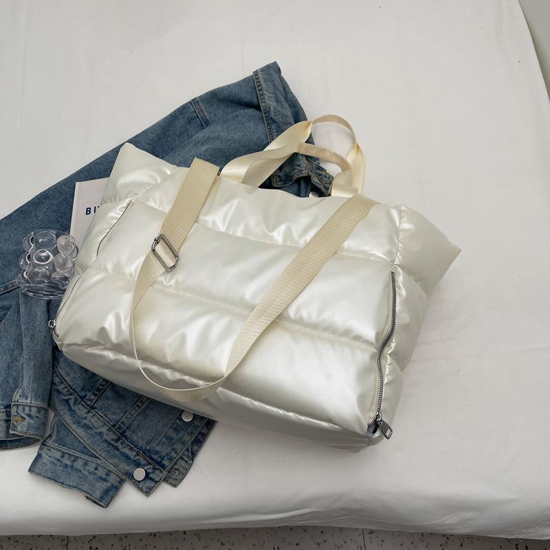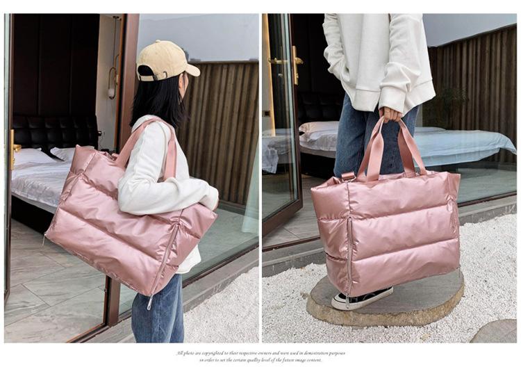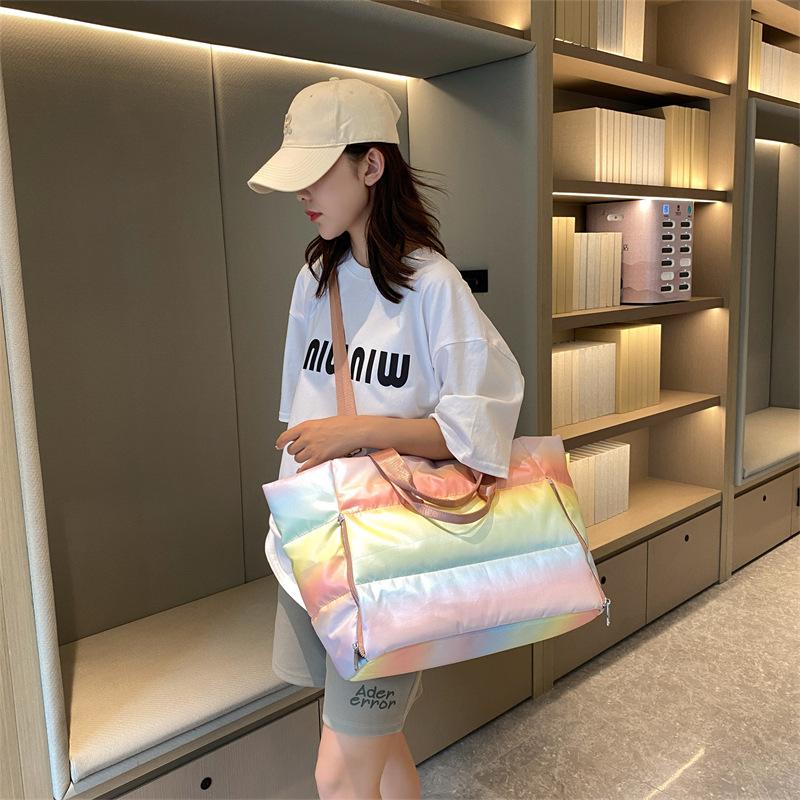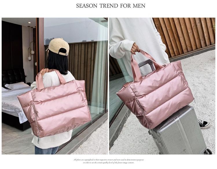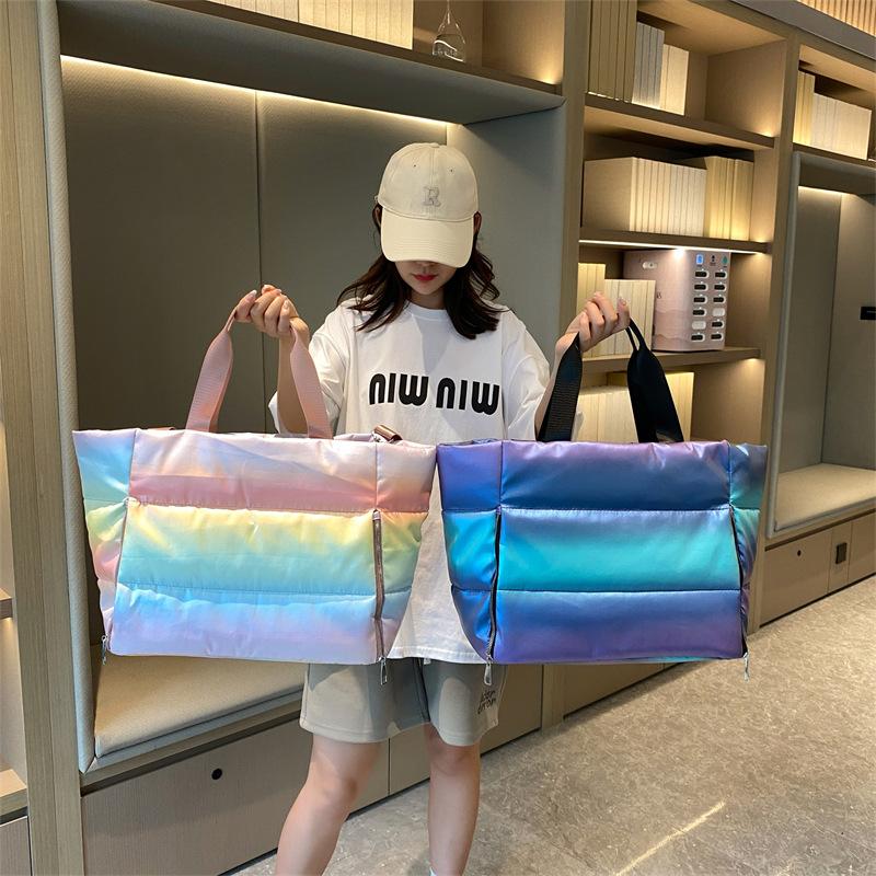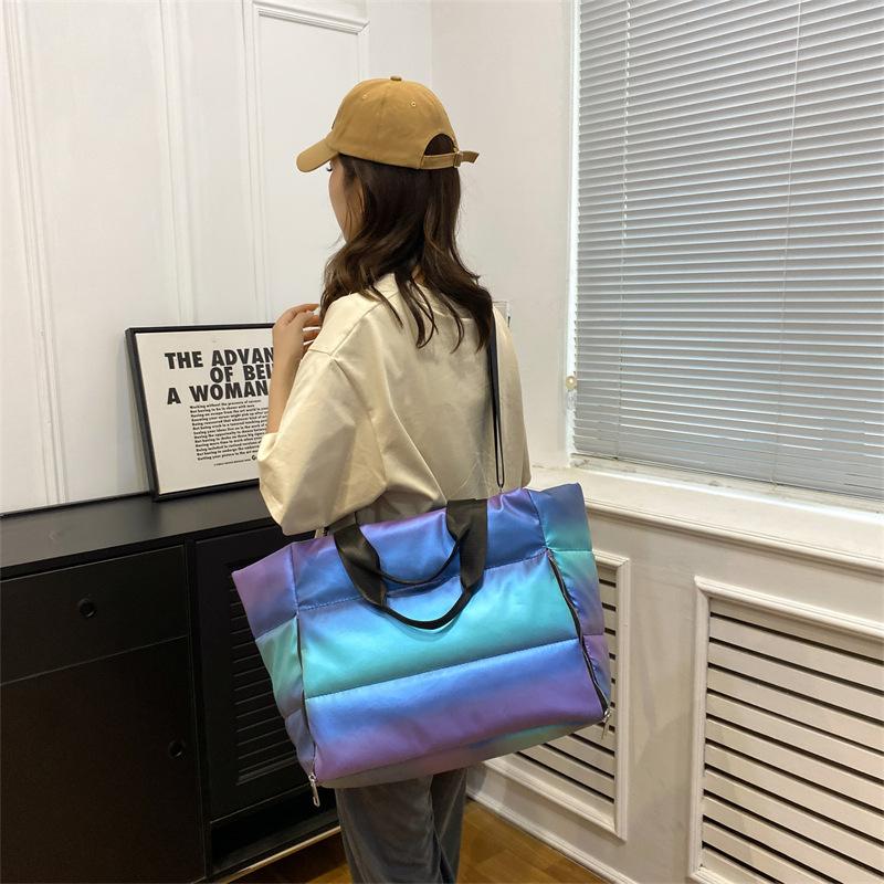 Travel bag large capacity lightweight yoga fitness space cotton bag satchel luggage pearlescent crossbody shoulder storage bag