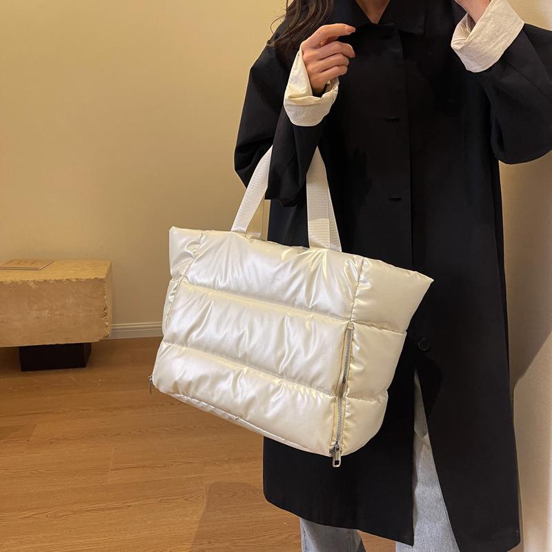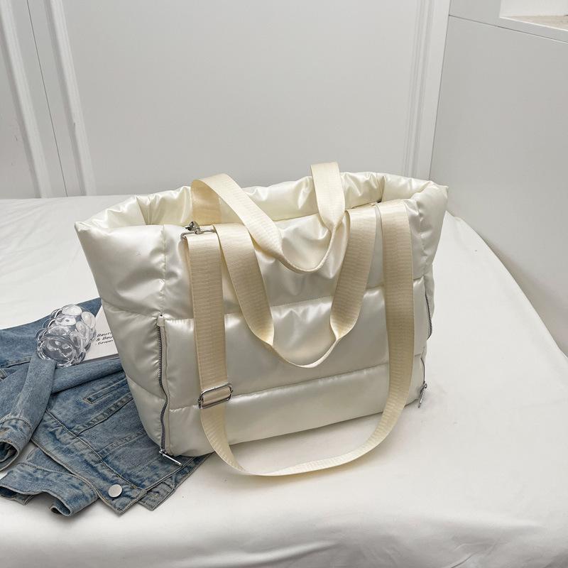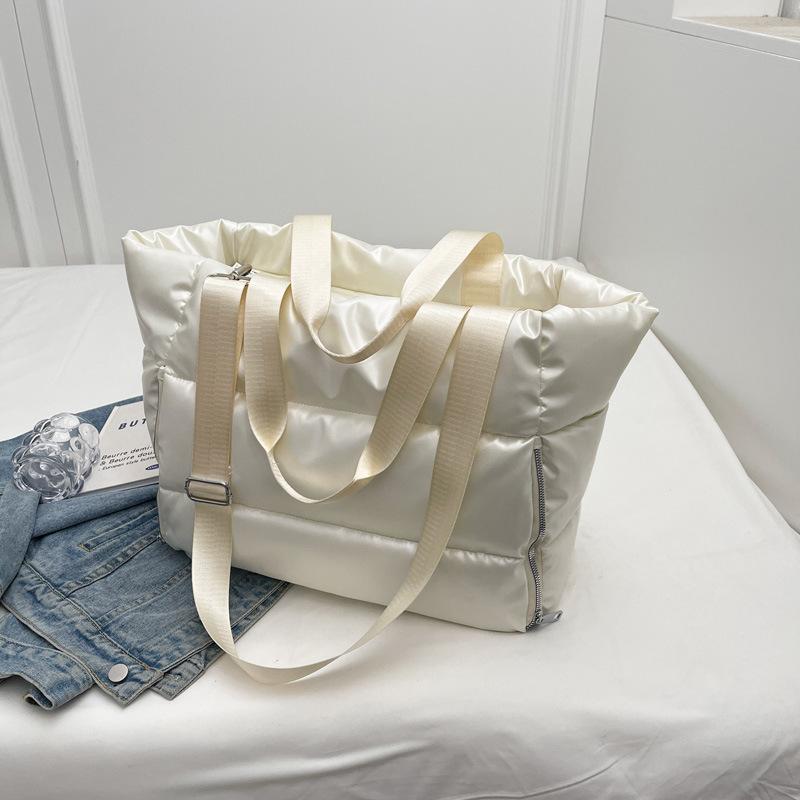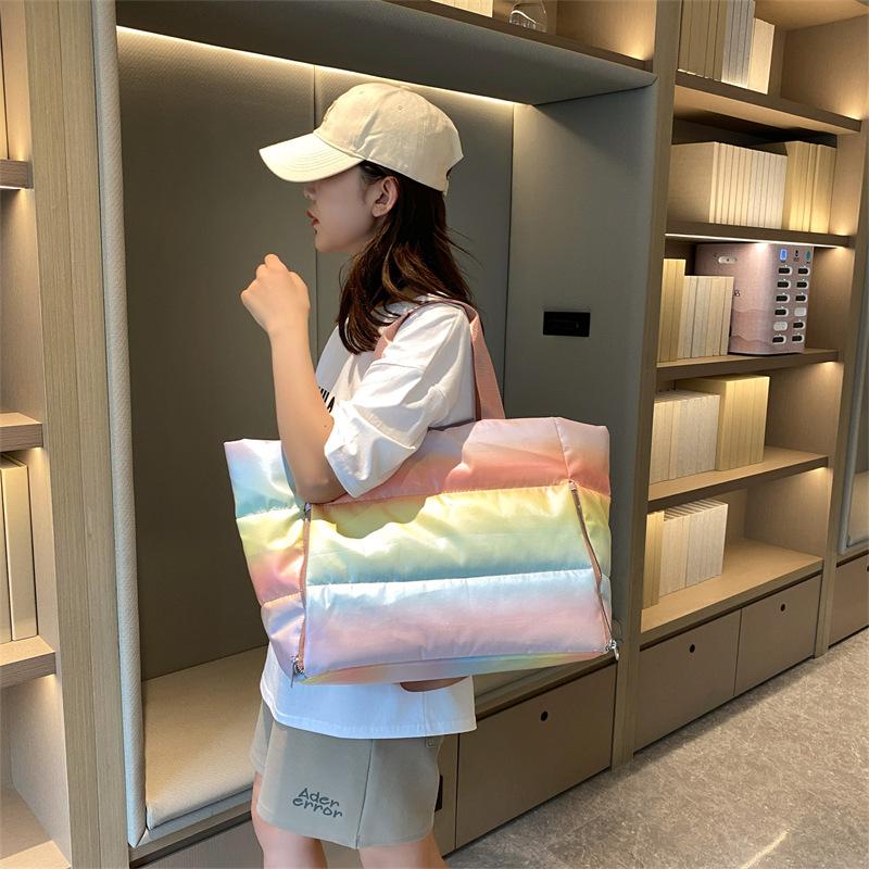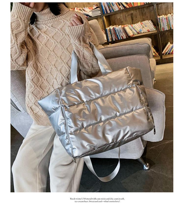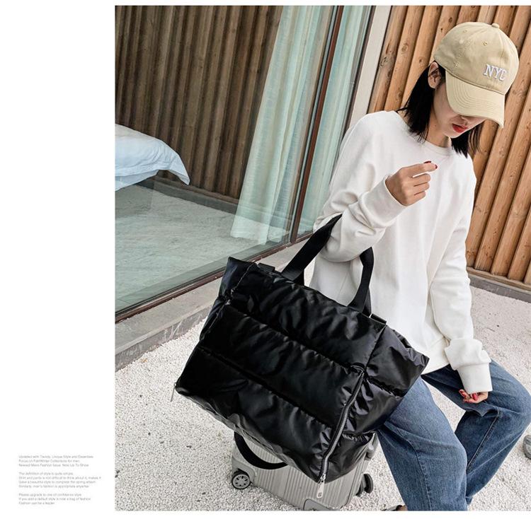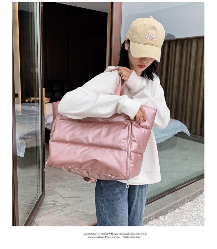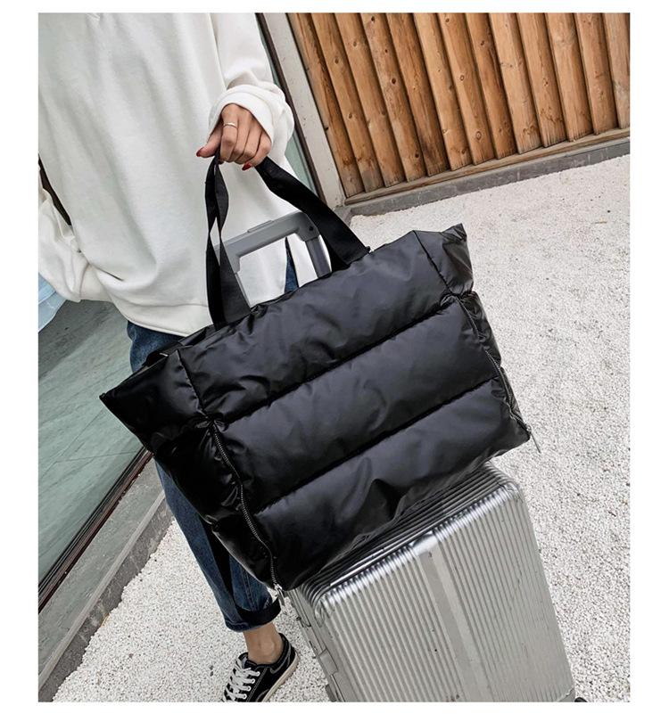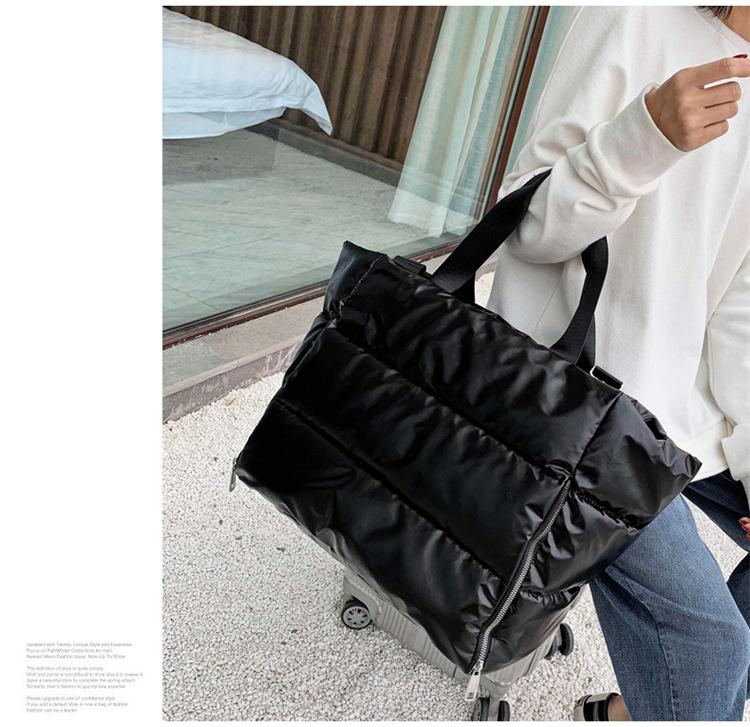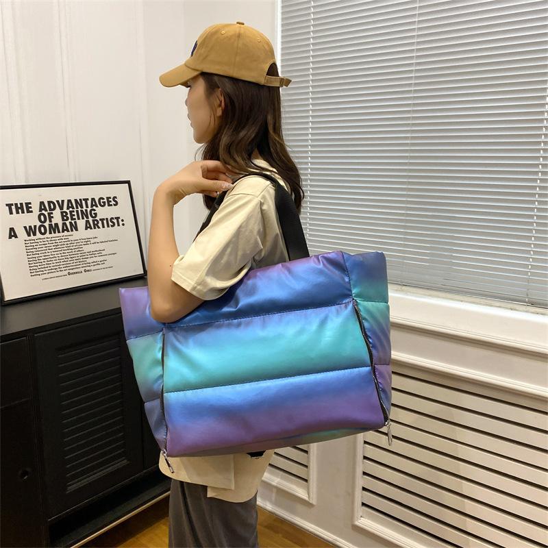 Travel bag large capacity lightweight yoga fitness space cotton bag satchel luggage pearlescent crossbody shoulder storage bag