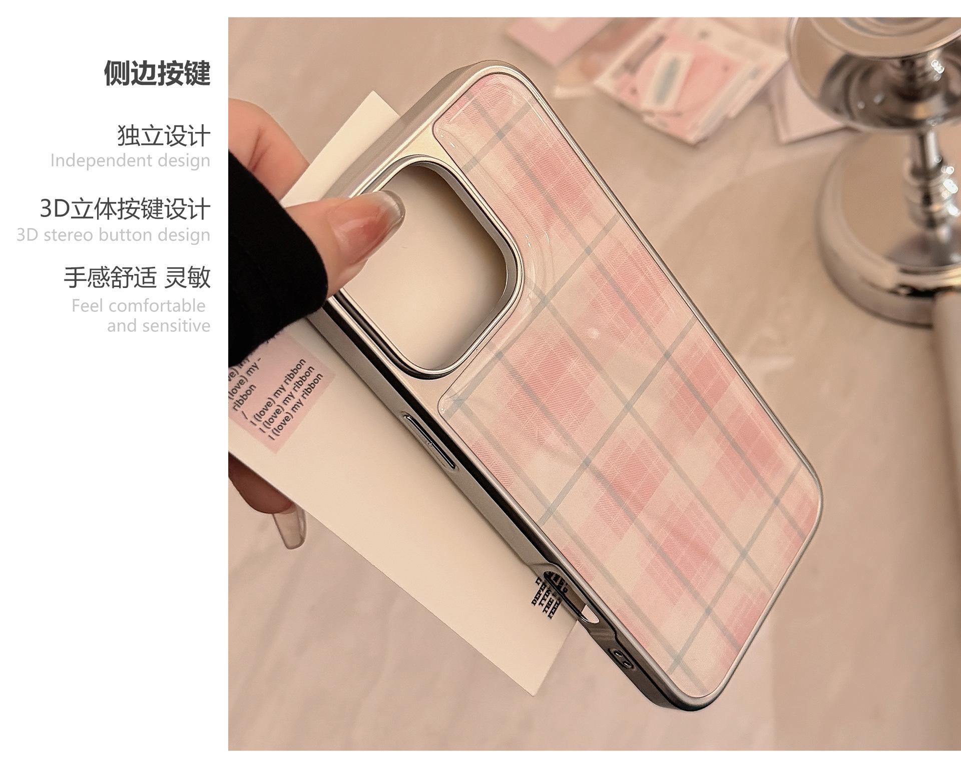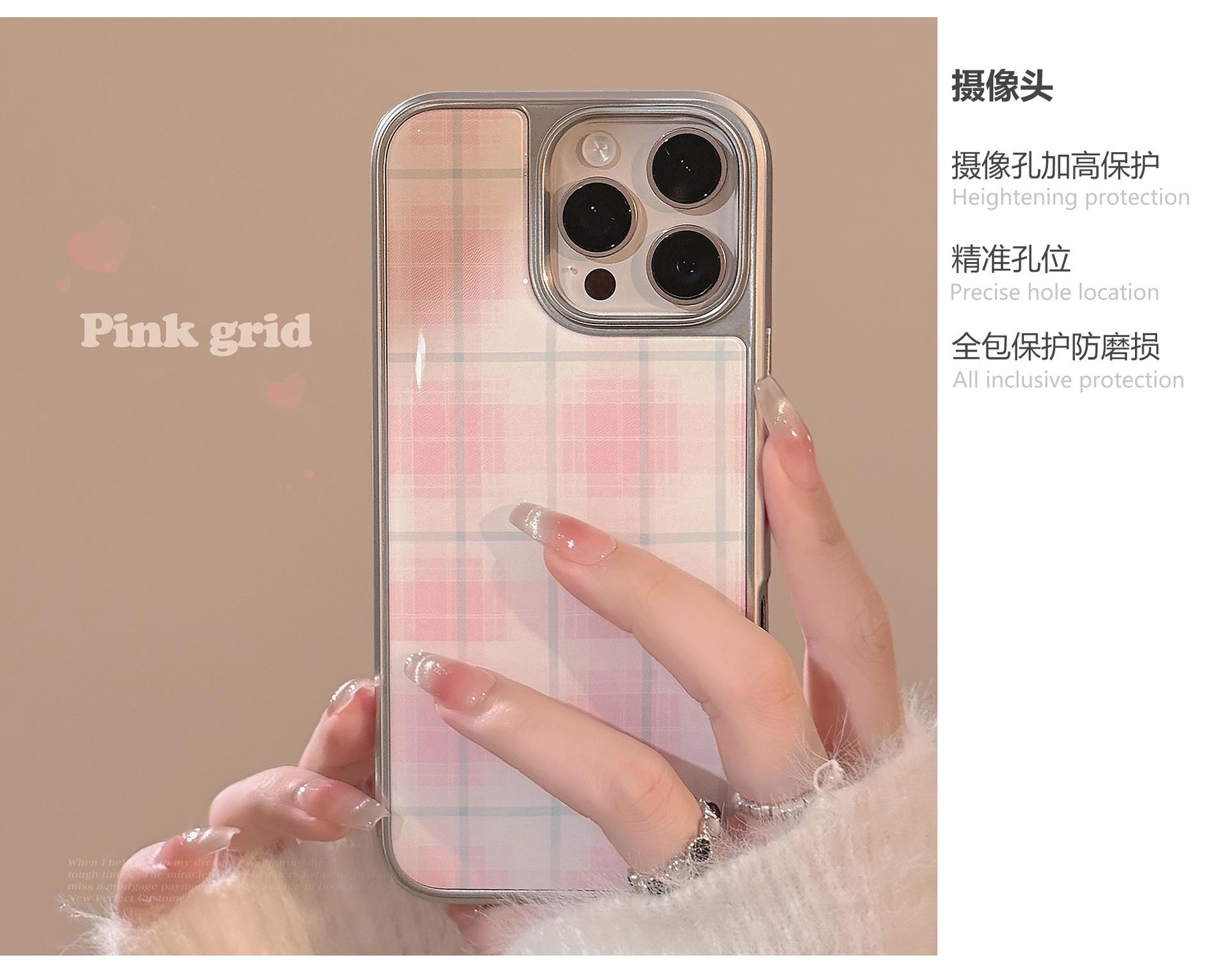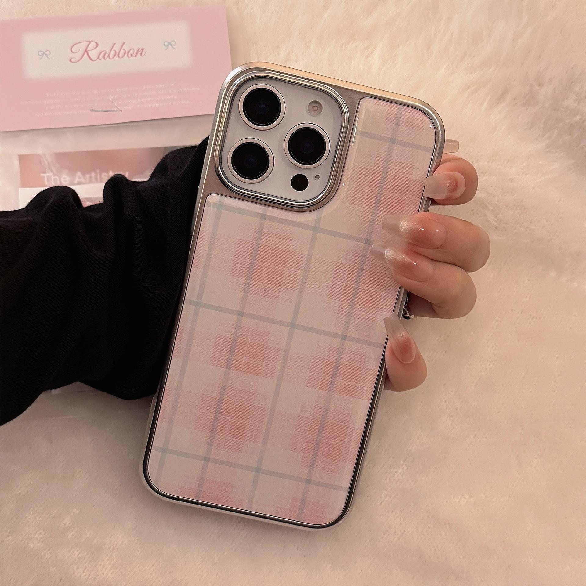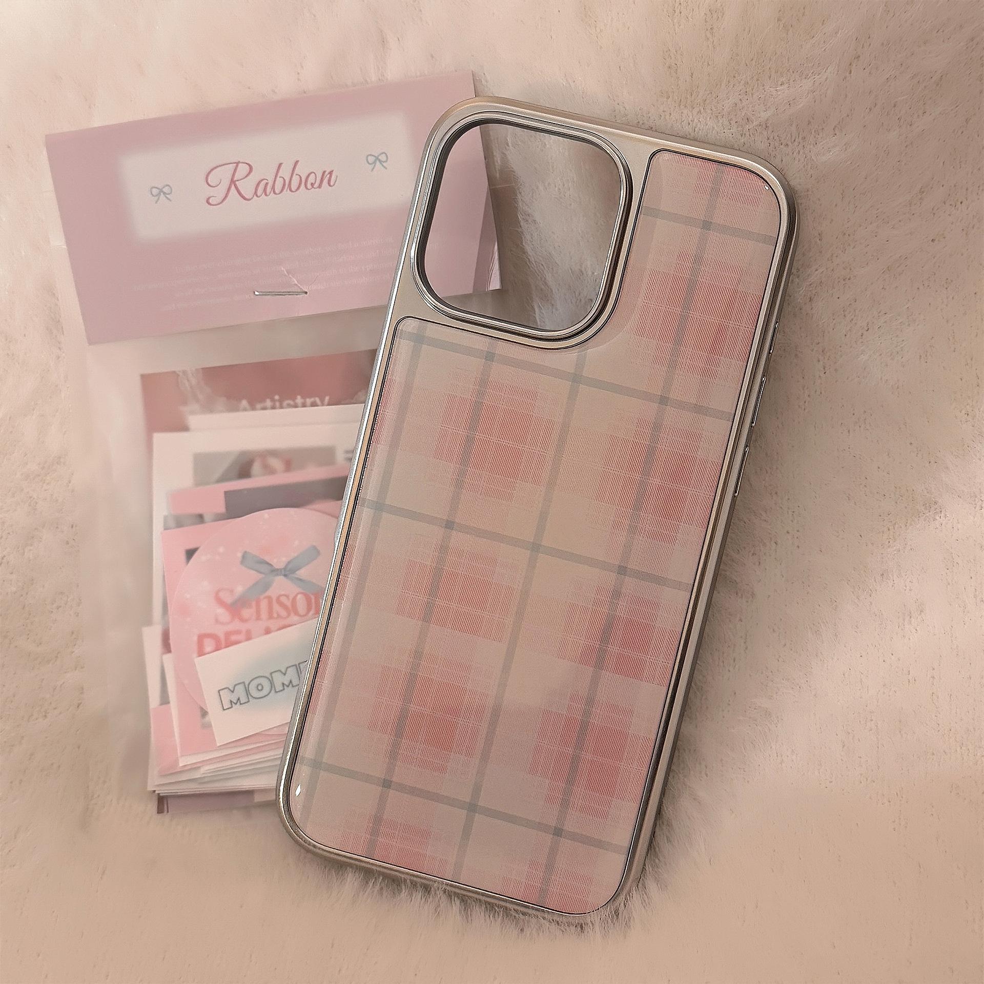 Para funda de teléfono móvil Apple 15promax iphone14 cuadros rosas 16 pegamento electrochapado 13 dulce coreano 15