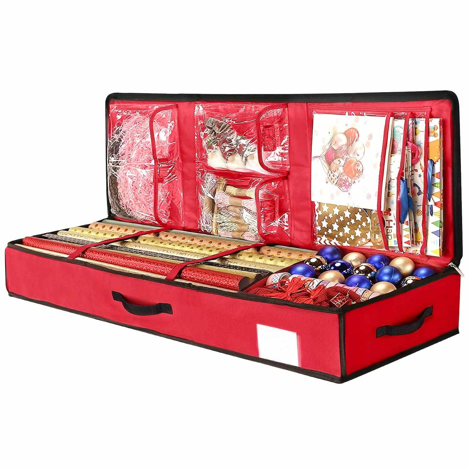 Bolsa de Almacenamiento para Papel de Envoltura de Listón Transfronterizo Gran Capacidad Caja de Almacenamiento para Papel Decorativo de Color Tela Oxford Caja de Almacenamiento para Regalos de Navidad
